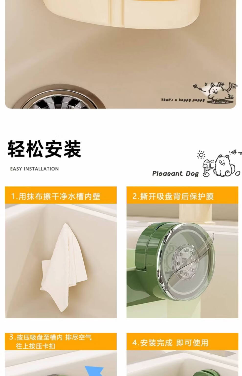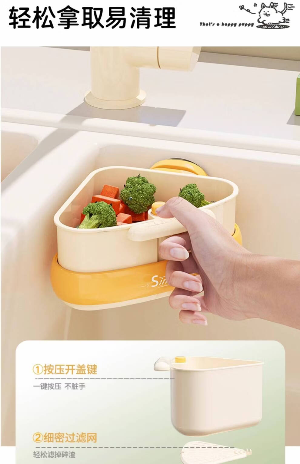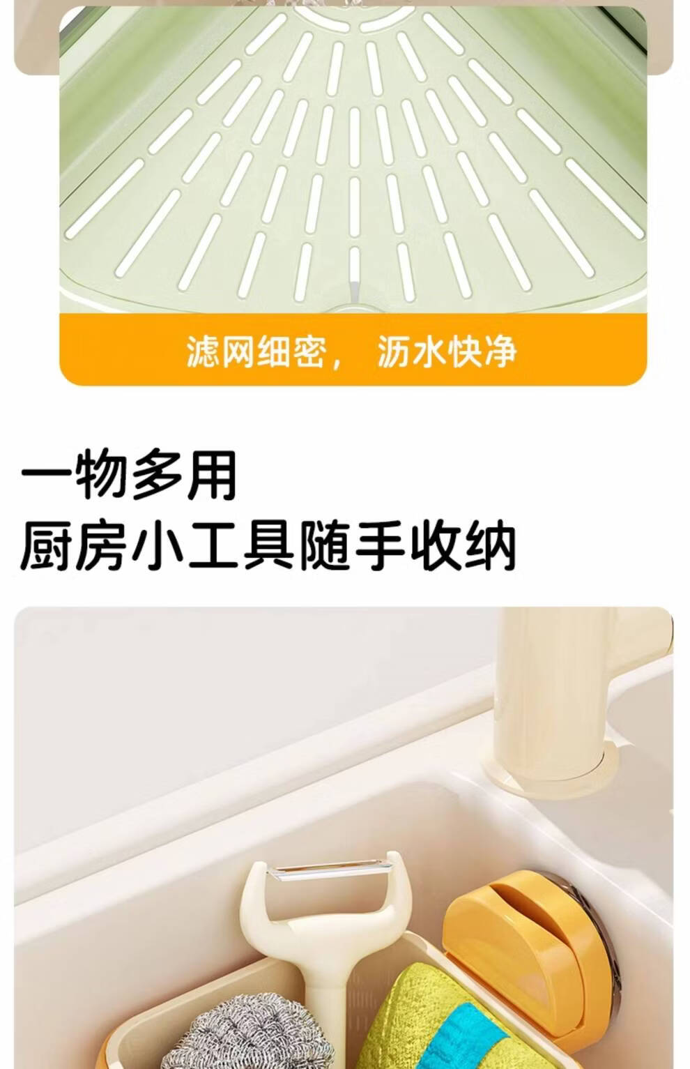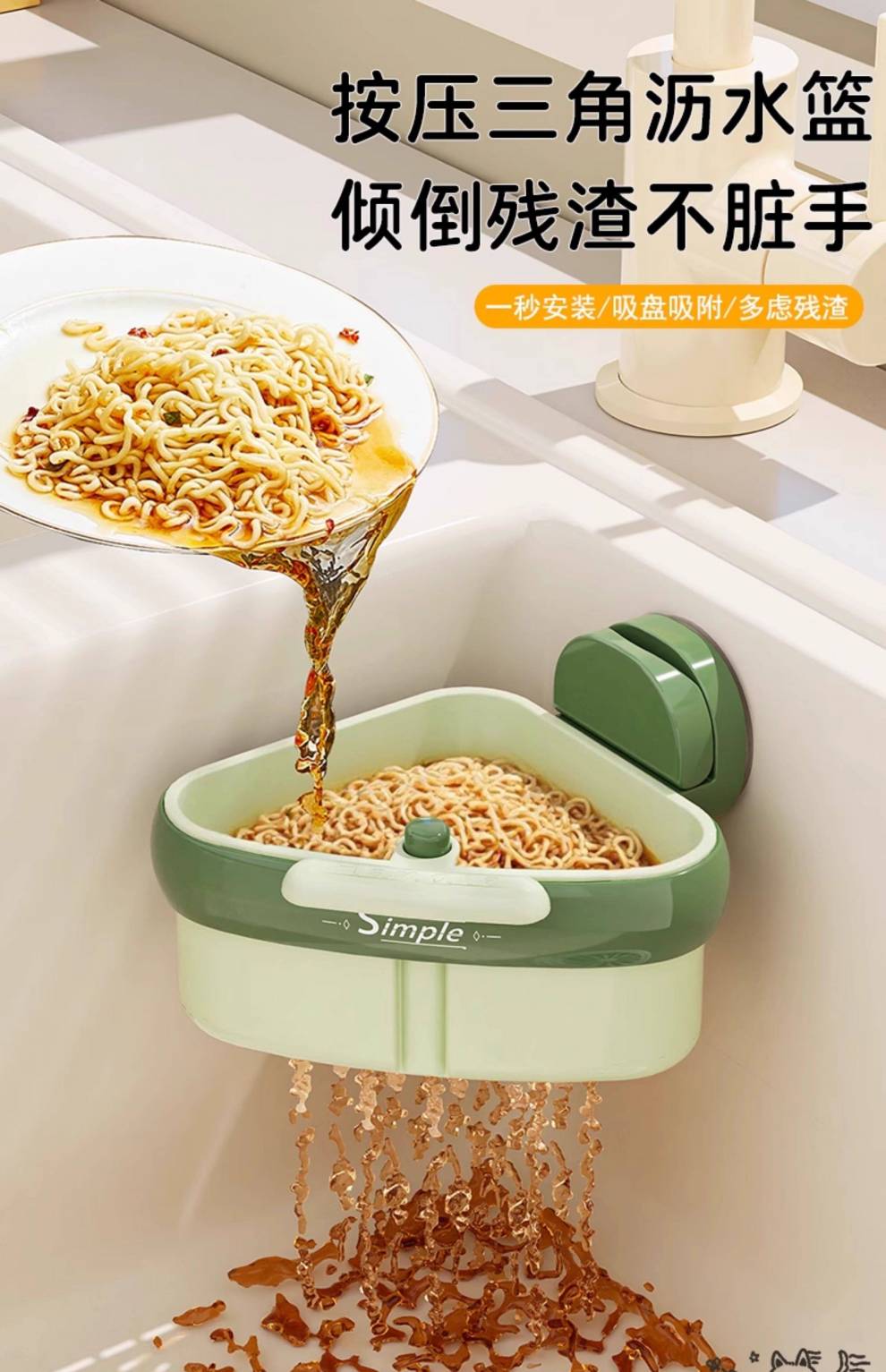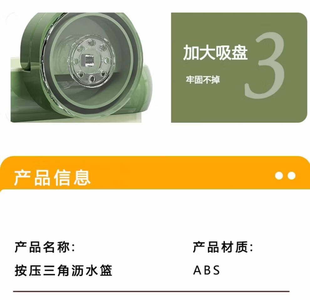 Junmo Suction Cup Sink Drain Basket Household Triangular Hanging Kitchen Filter Leftover Residue Faucet Storage Rack Suction Cup Orange_1 Pack Installed in One Second