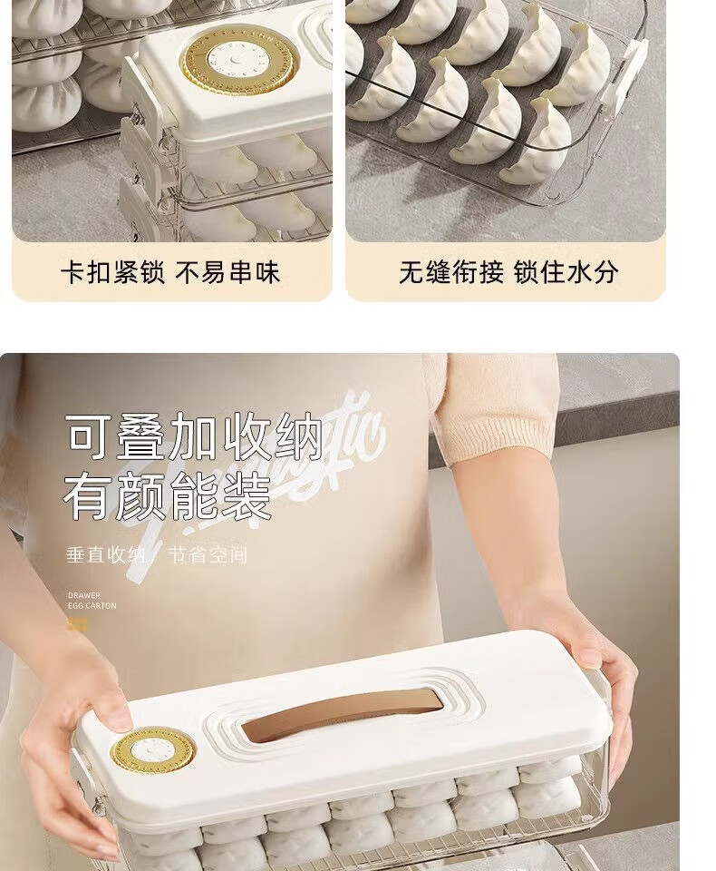 Sungsa refrigerator storage box dumpling box household food-grade kitchen side door dumplings and wonton box fresh-keeping quick-frozen special large size food-grade material cream white 2 layers