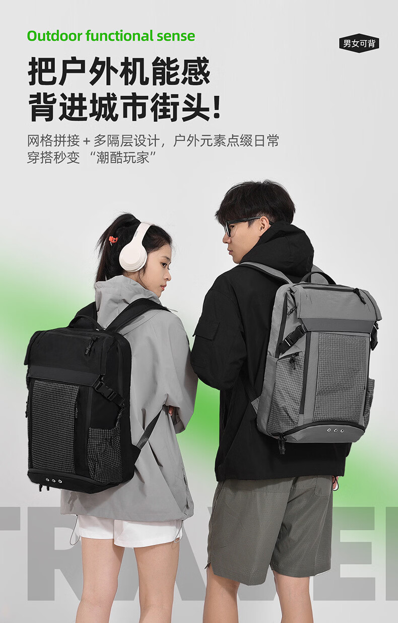 CinzKrtm Multifunctional Travel Bag Water-Repellent Oxford Cloth Backpack Student School Bag Male and Female Couple Same Style College Student Backpack Gray
