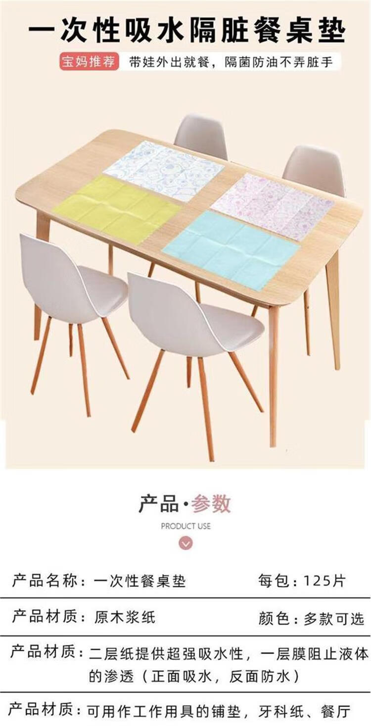 Shantou Lincun lunch table mat primary school disposable placemat 125 pieces children's mat isolation mat paper cartoon solid color waterproof and oil-proof table pink 3 bags