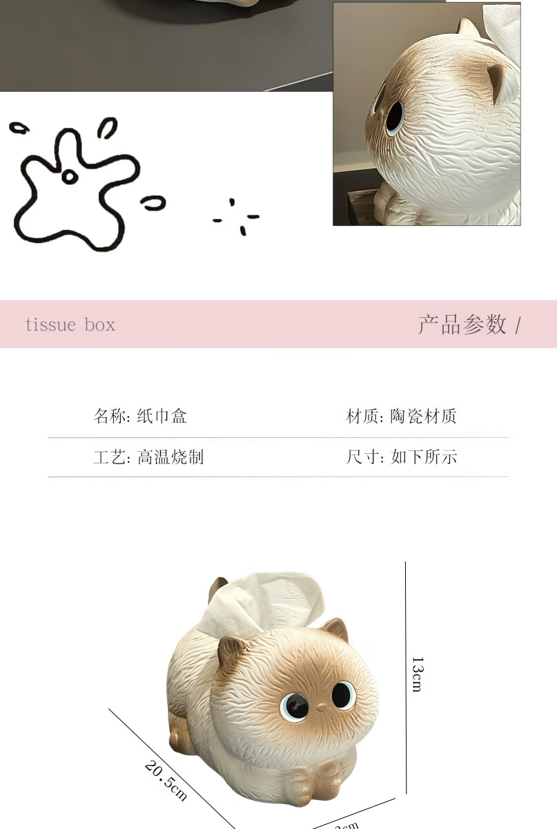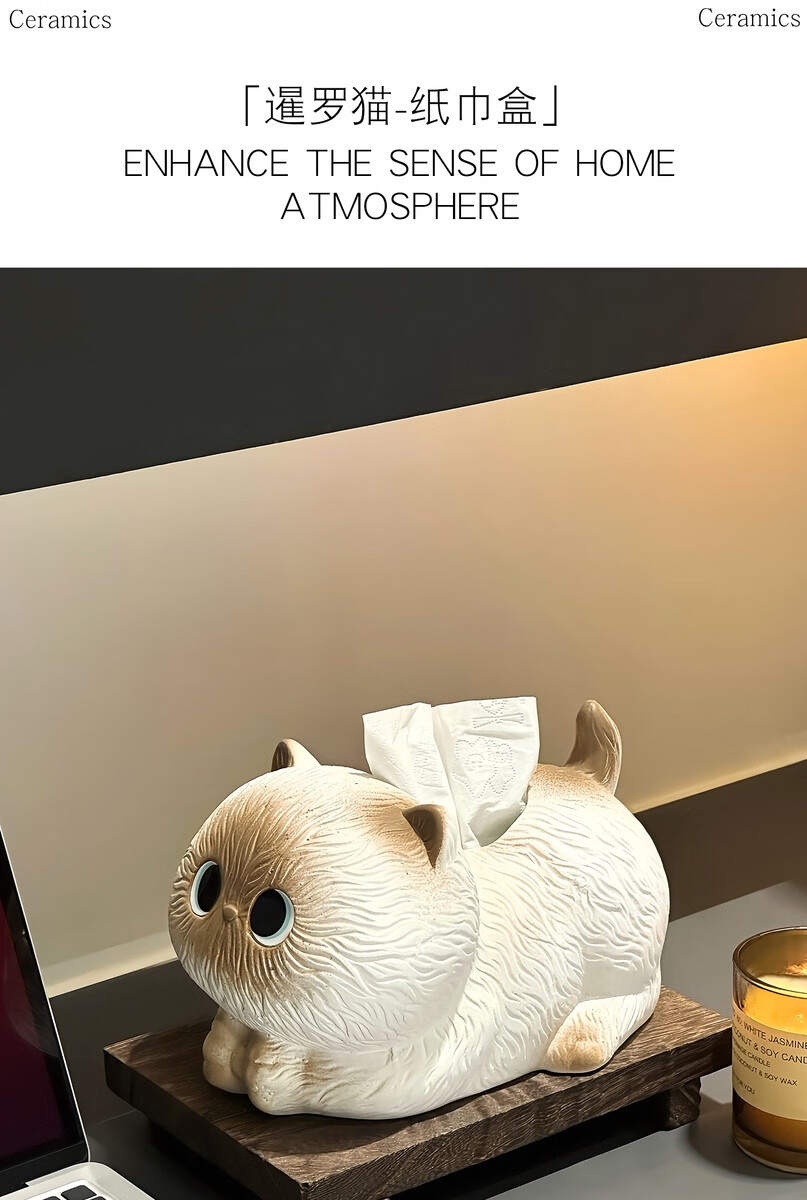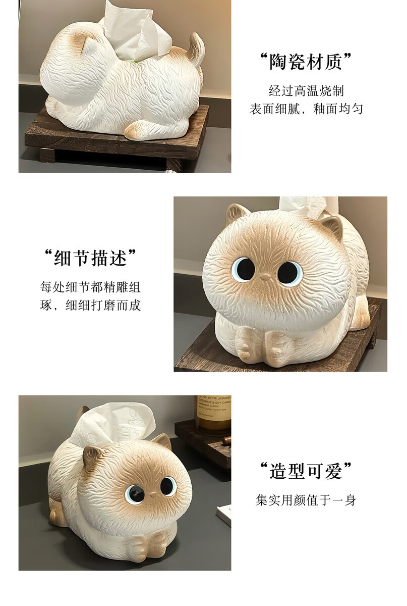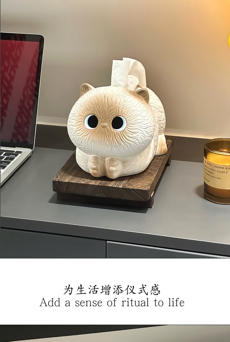 Fantasy and Cute Siamese Cat Tissue Box Living Room Paper Box Ceramic Tissue Box Home Coffee Table Ornaments Creative Napkin Box Briquette Cat Tissue Box