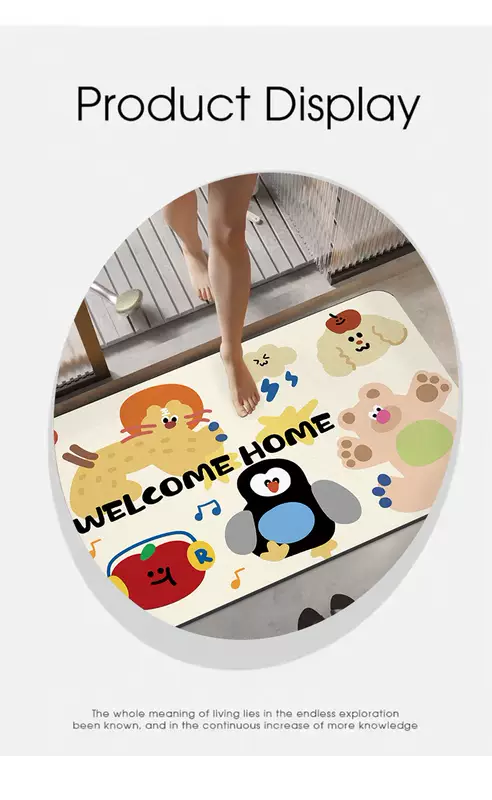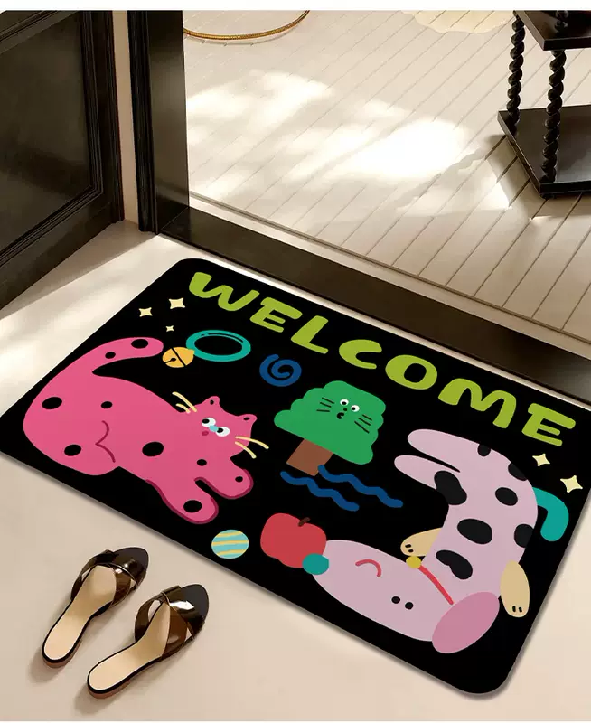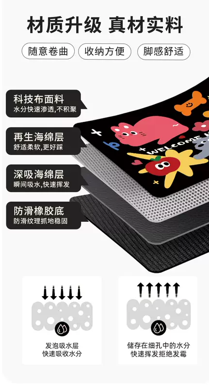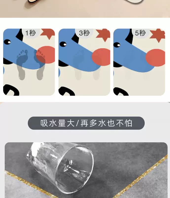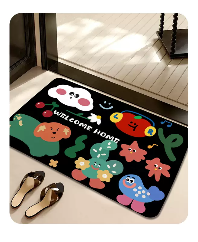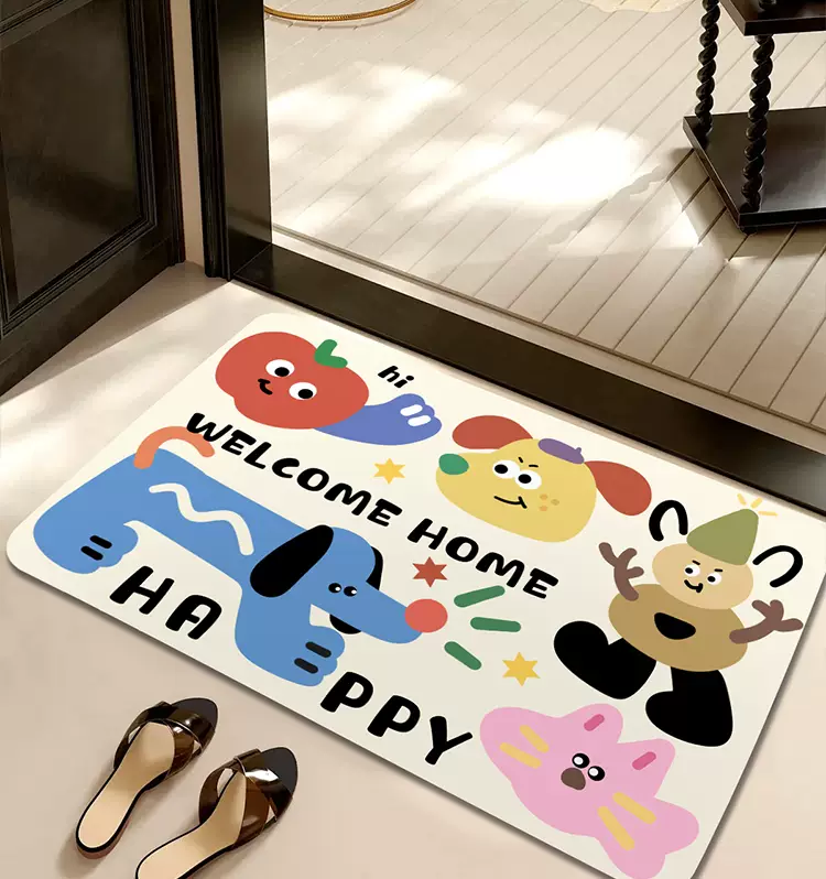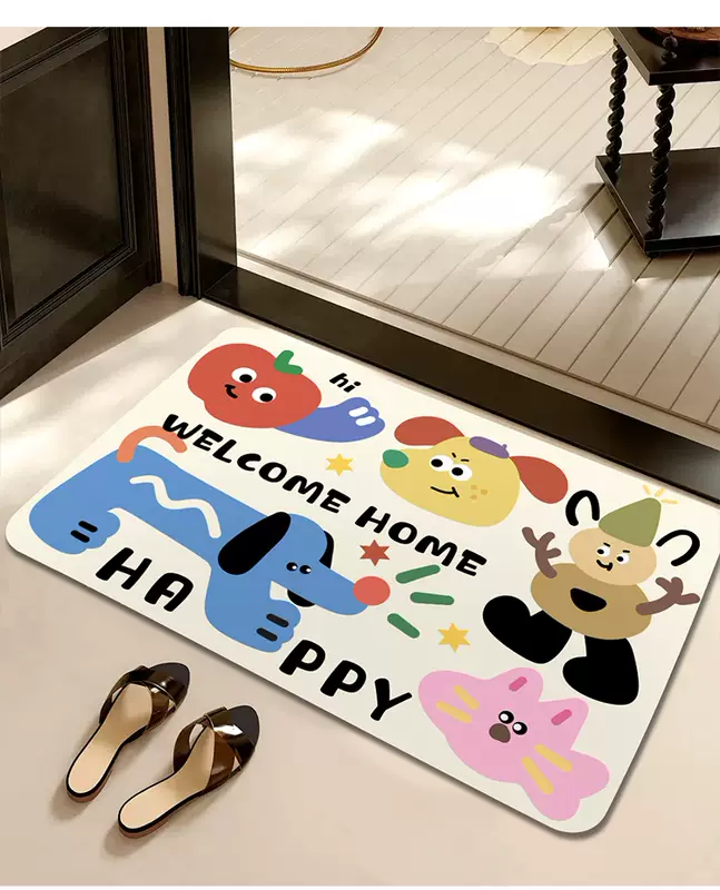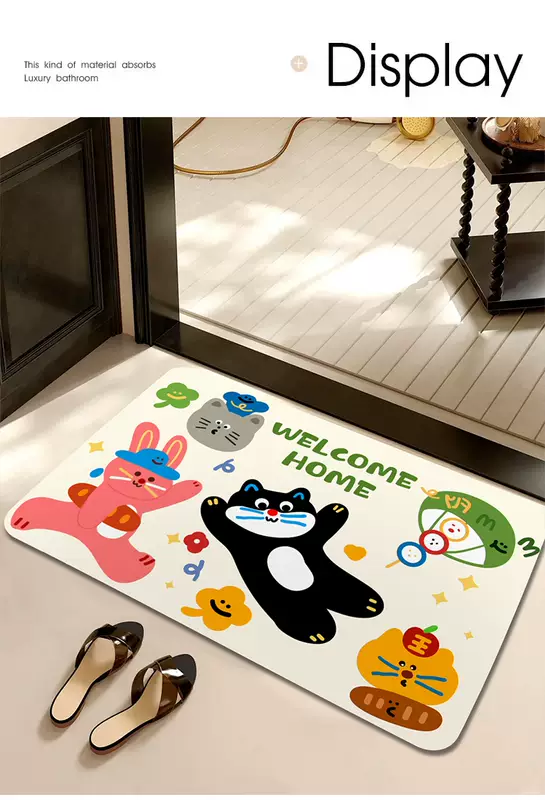 Yusenyi cartoon diatom mud bathroom floor mat powder room water-absorbent non-slip carpet cute special-shaped shower room quick-drying dry feet technology cloth rabbit graffiti white 40x60cm thickened strong water absorption