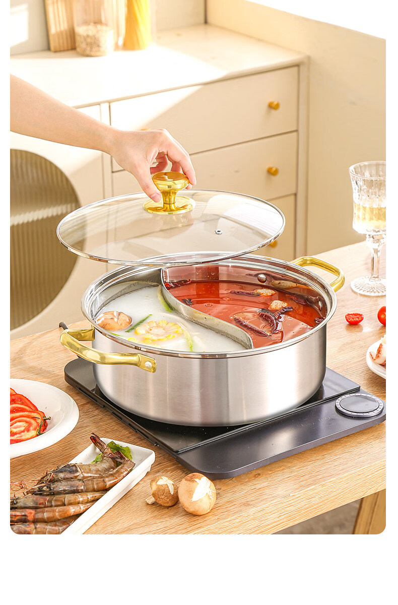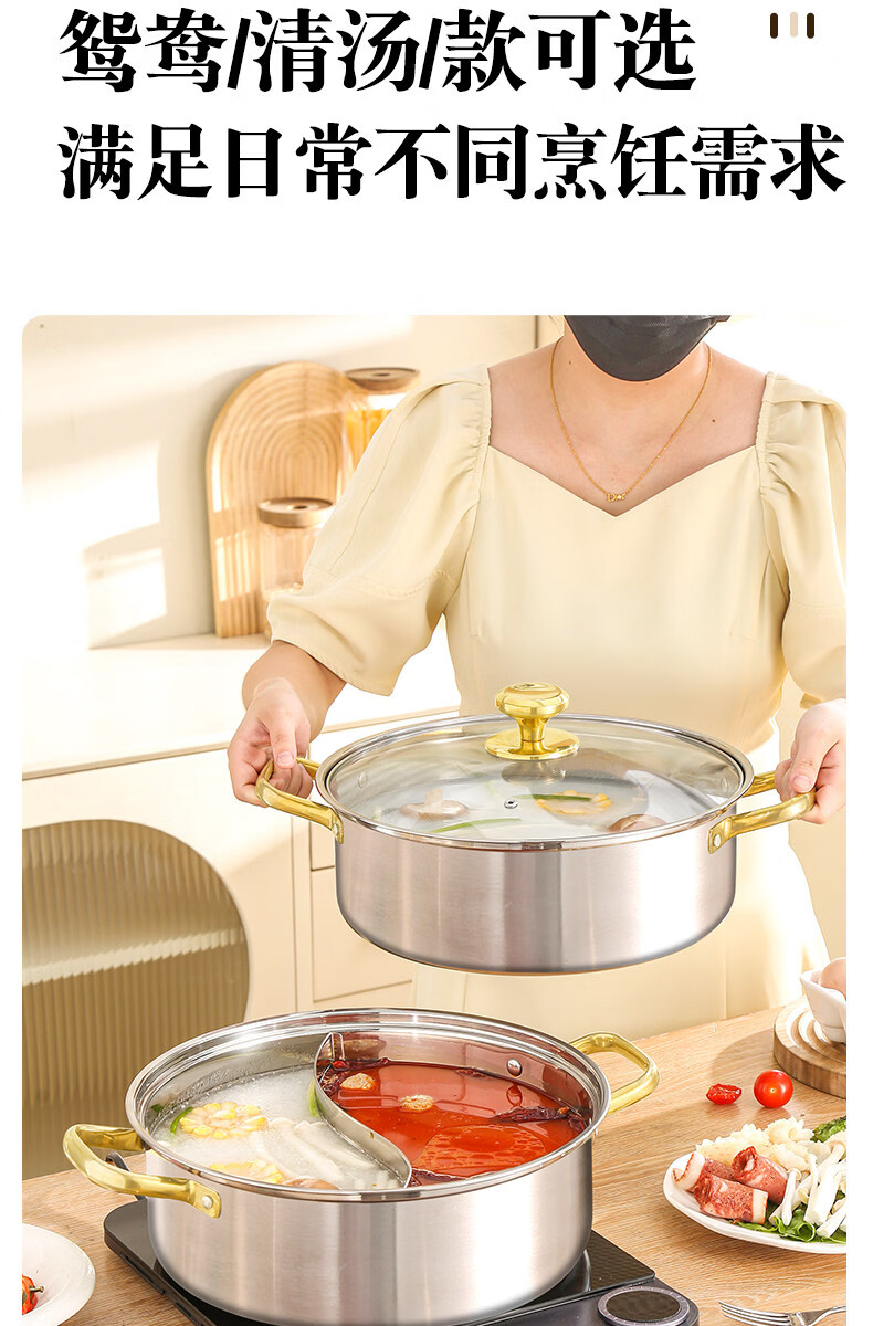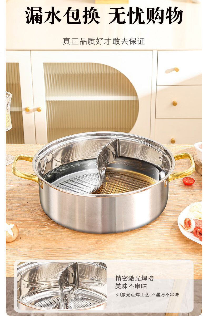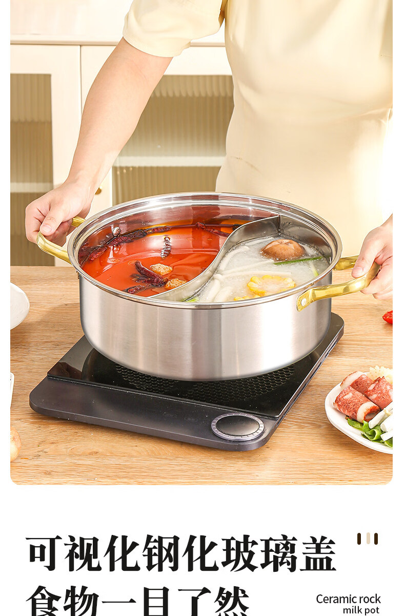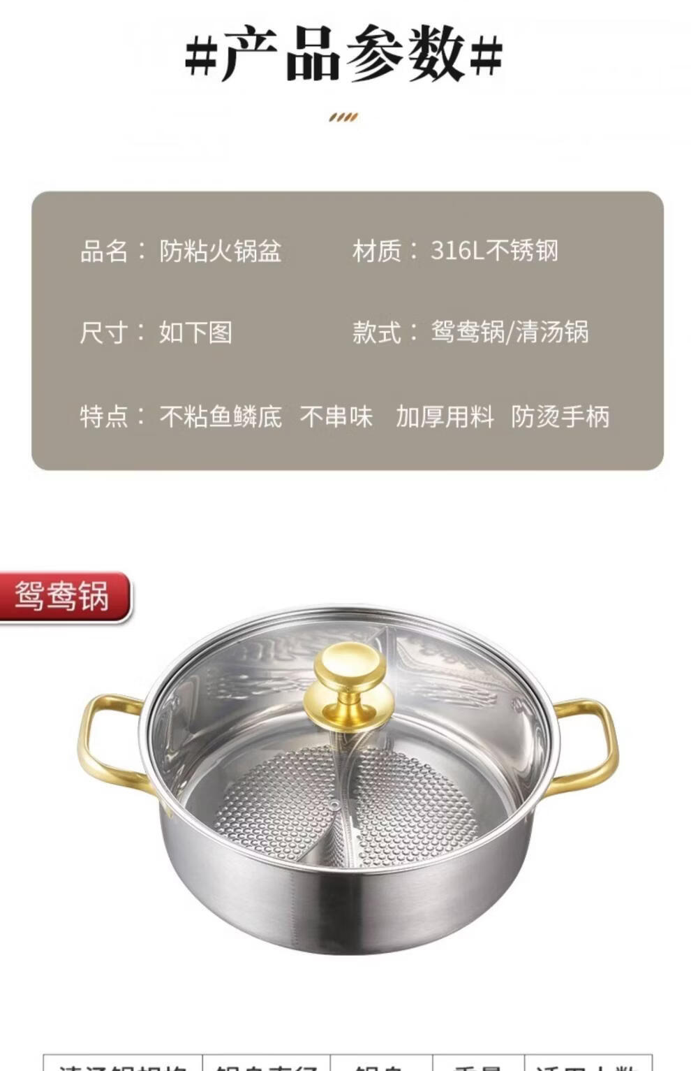 Tuojin German imported quality 316 stainless steel mandarin duck pot hot pot pot for household induction cooker special large capacity thickened 304 thickened anti-stick 316 clear soup pot suitable for 6-10 people_None 32cm