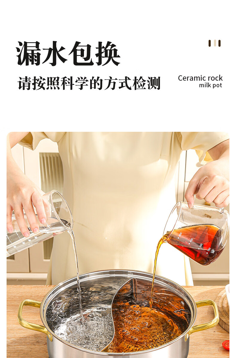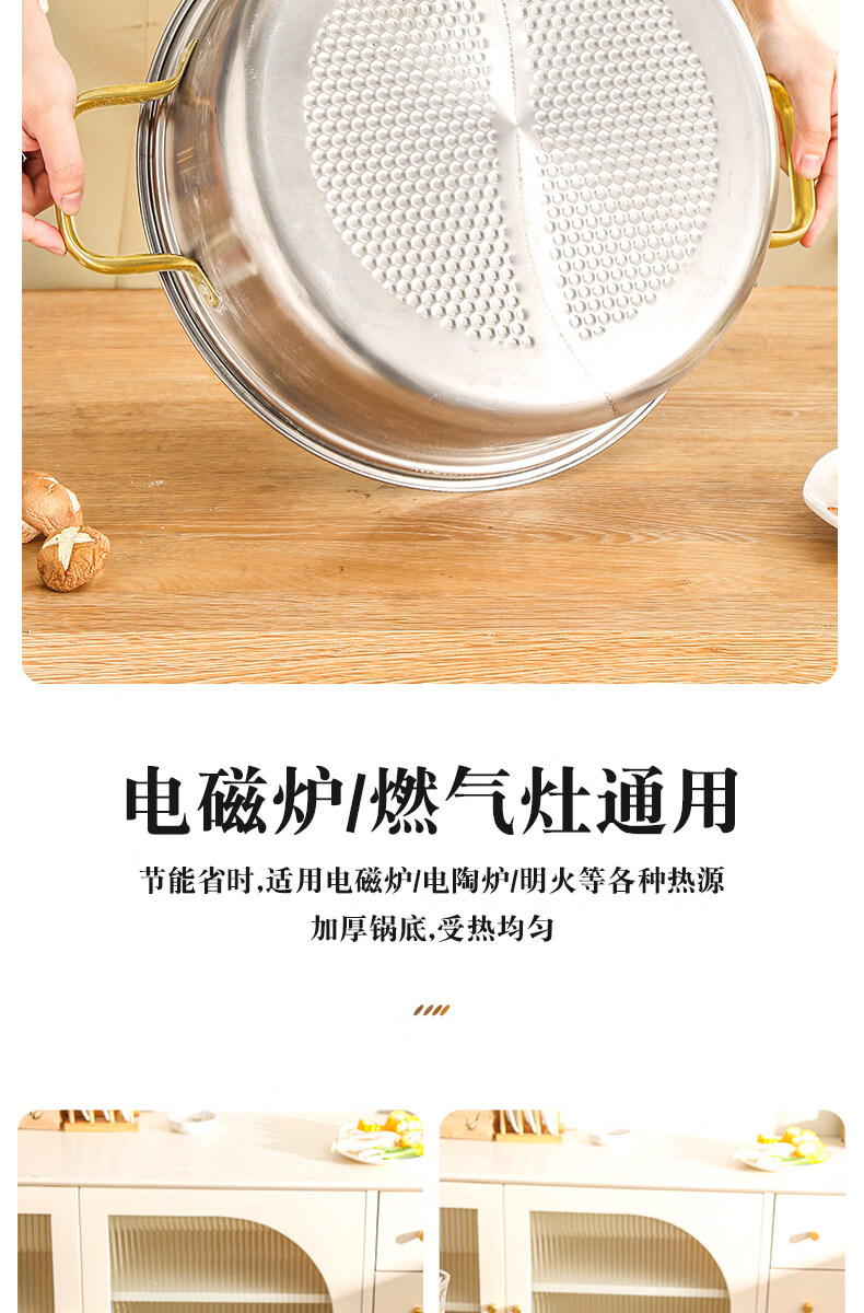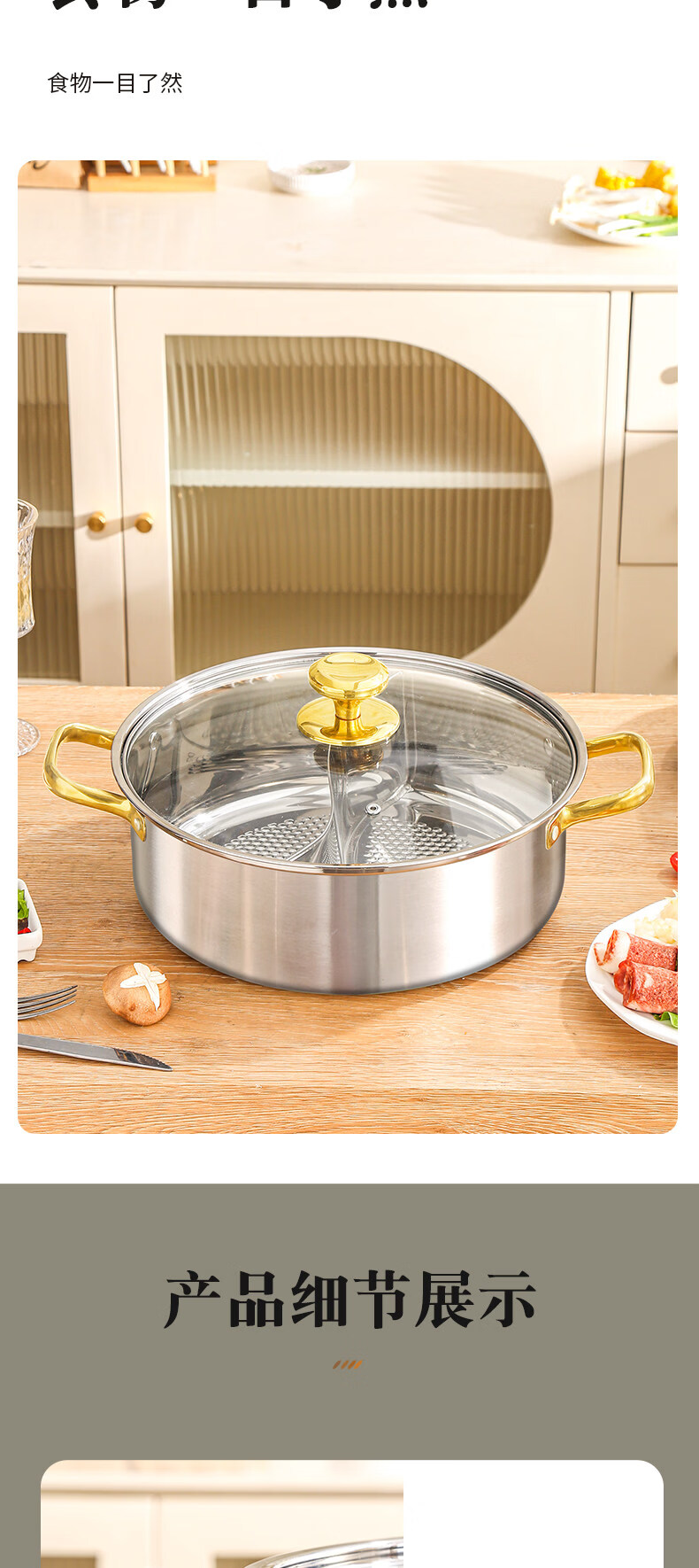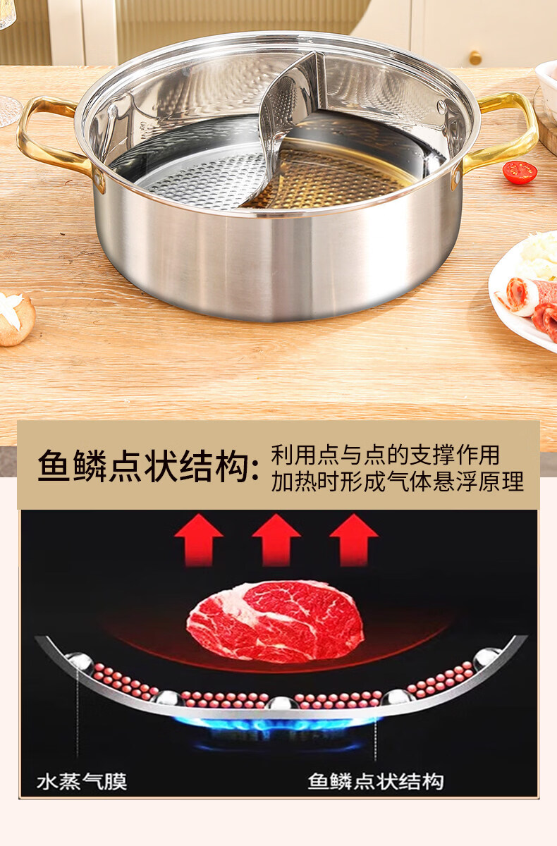 Tuojin German imported quality 316 stainless steel mandarin duck pot hot pot pot for household induction cooker special large capacity thickened 304 thickened anti-stick 316 clear soup pot suitable for 6-10 people_None 32cm