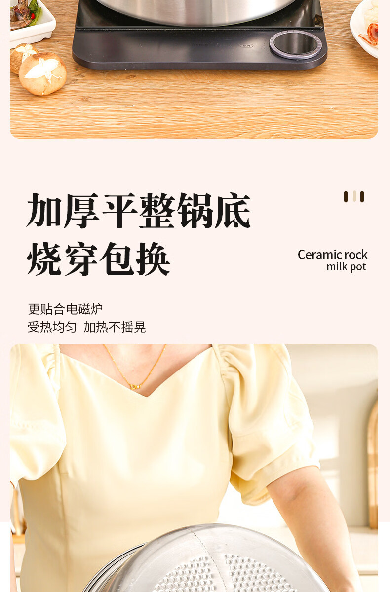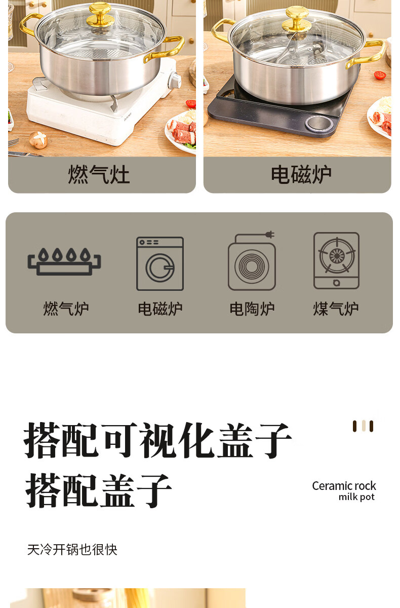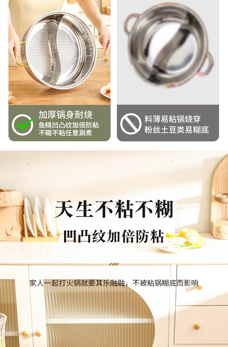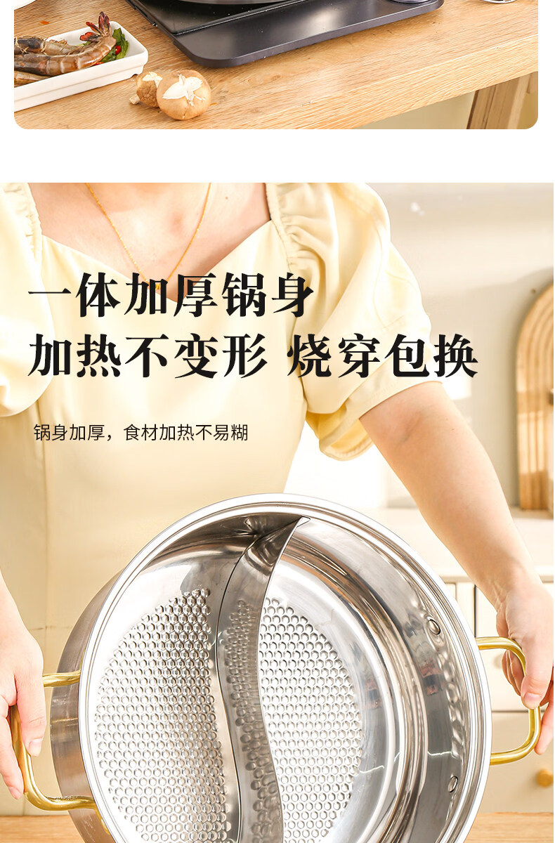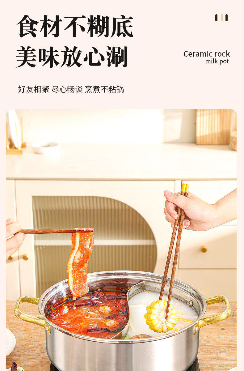 Tuojin German imported quality 316 stainless steel mandarin duck pot hot pot pot for household induction cooker special large capacity thickened 304 thickened anti-stick 316 clear soup pot suitable for 6-10 people_None 32cm