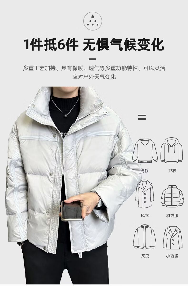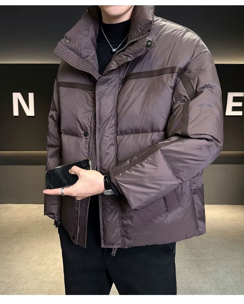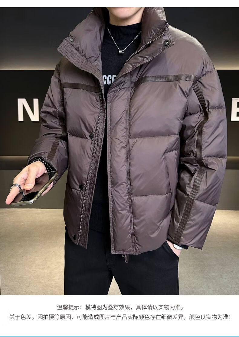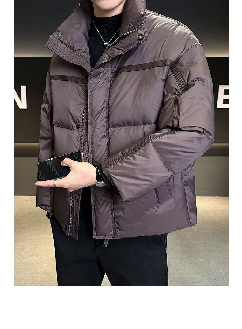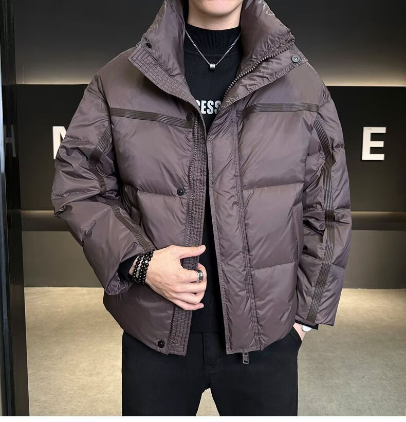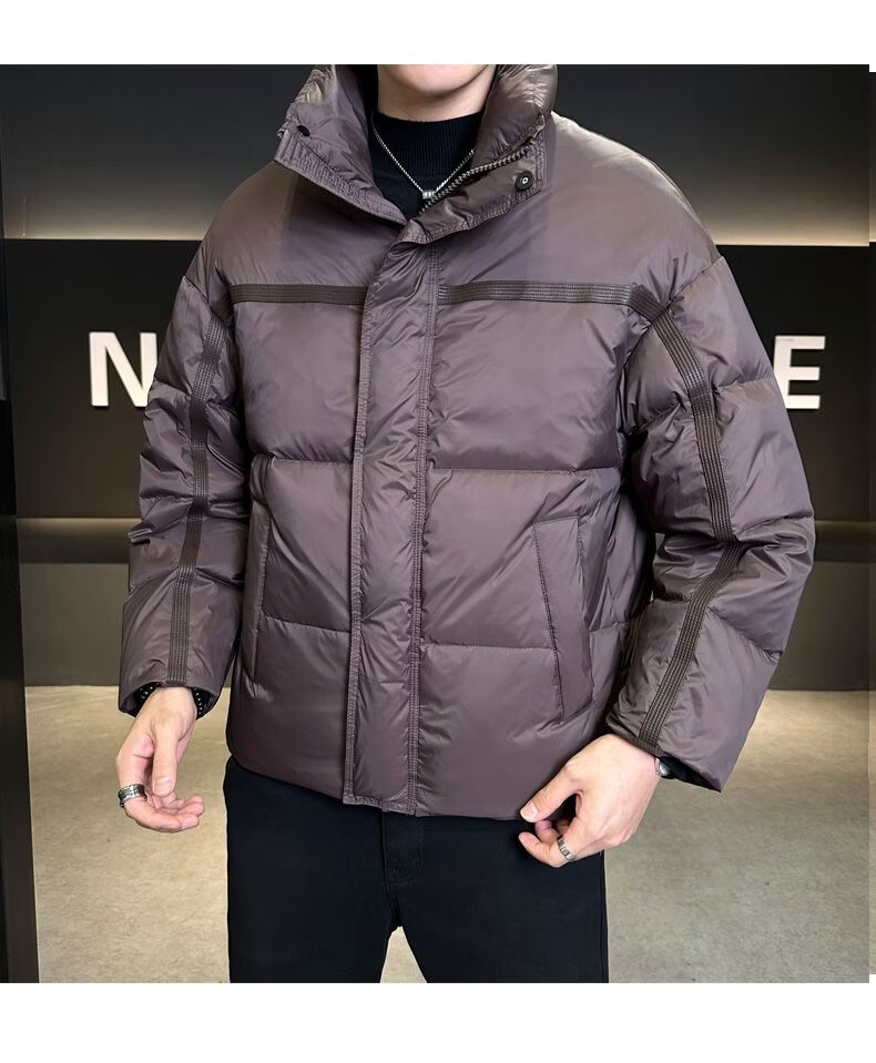 Hengyuanxiang Puff Thickened Down Jacket Men's Winter Stand Collar 2026 New Warm and Coldproof Casual Jacket Bread Jacket Brown M 100-120 Jin