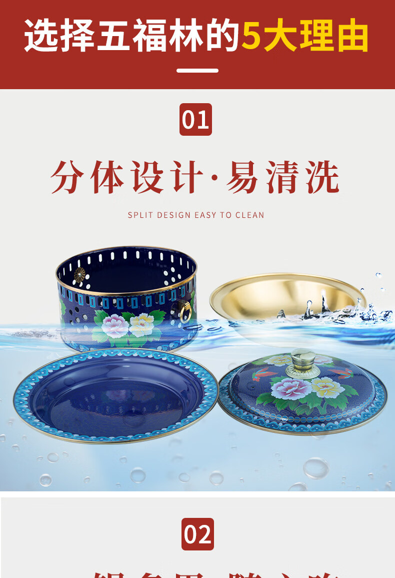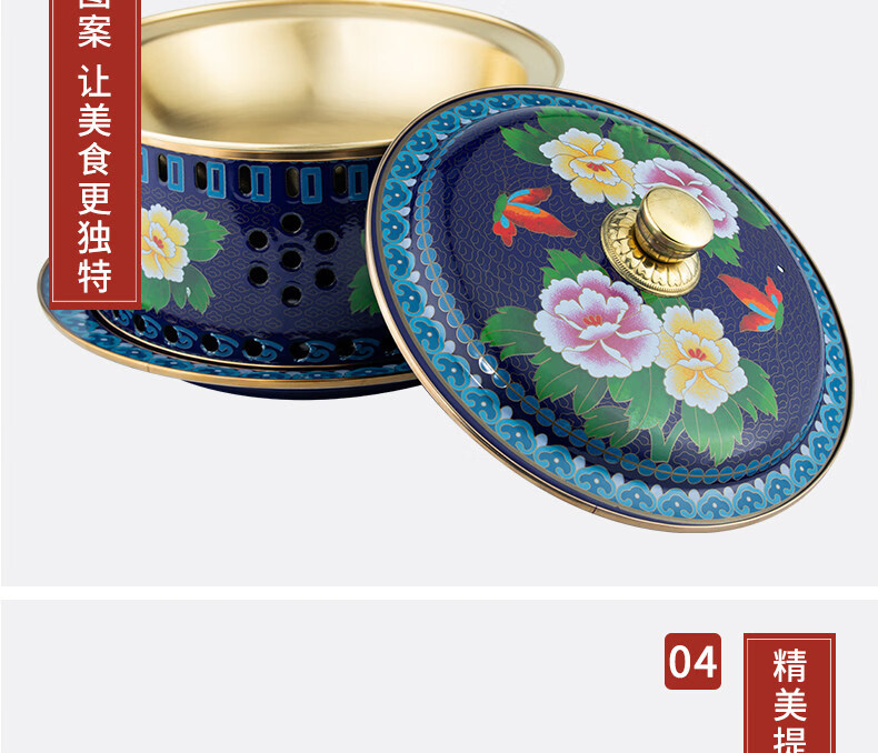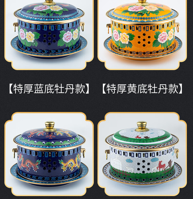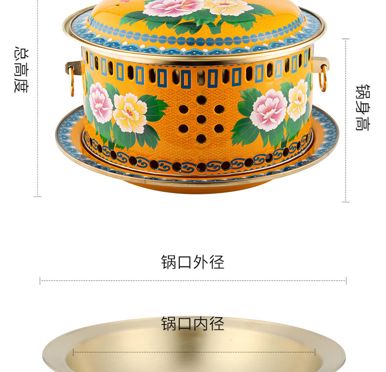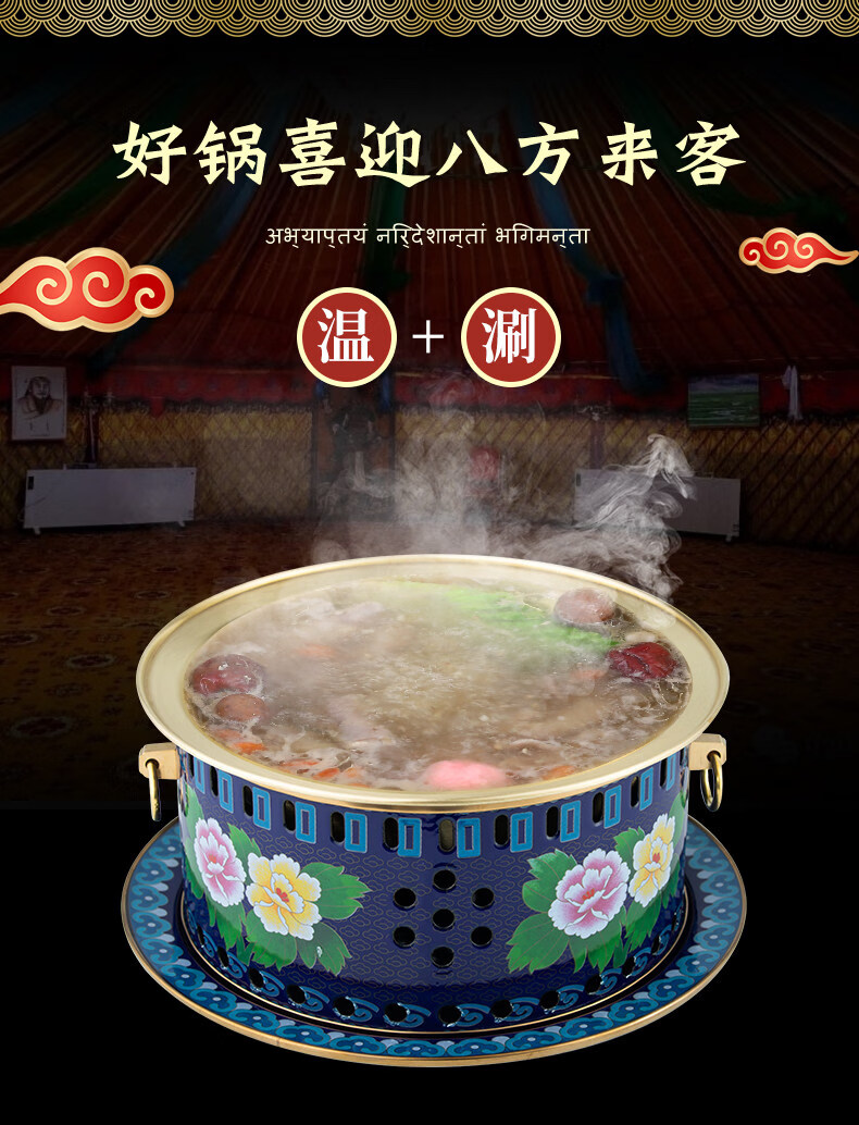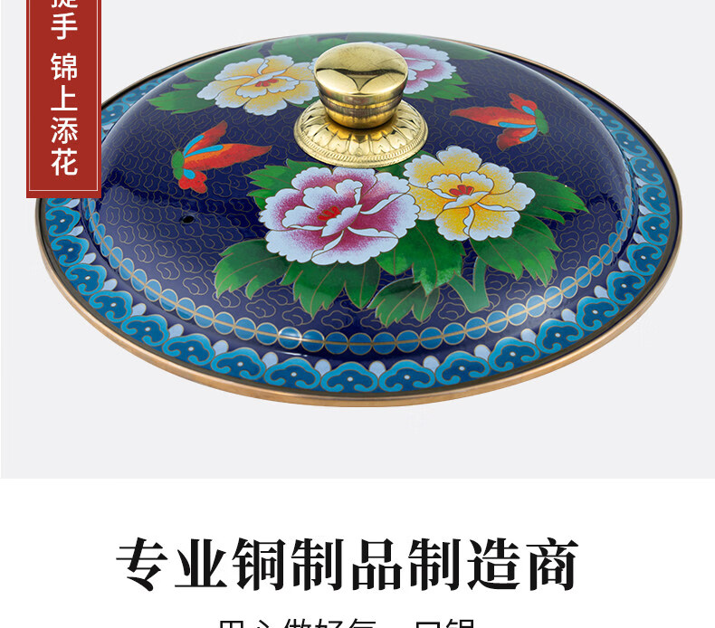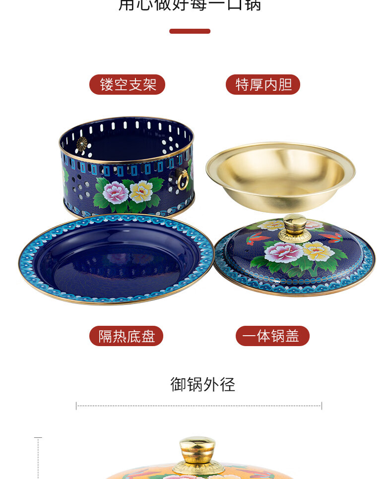 Tuojin imported quality cloisonné copper hot pot from Germany, royal pot, thickened pure copper alcohol fat cattle single-person alcohol stove, upgraded 8-core fuel tank + pot body with pure copper pull ring 1 inch