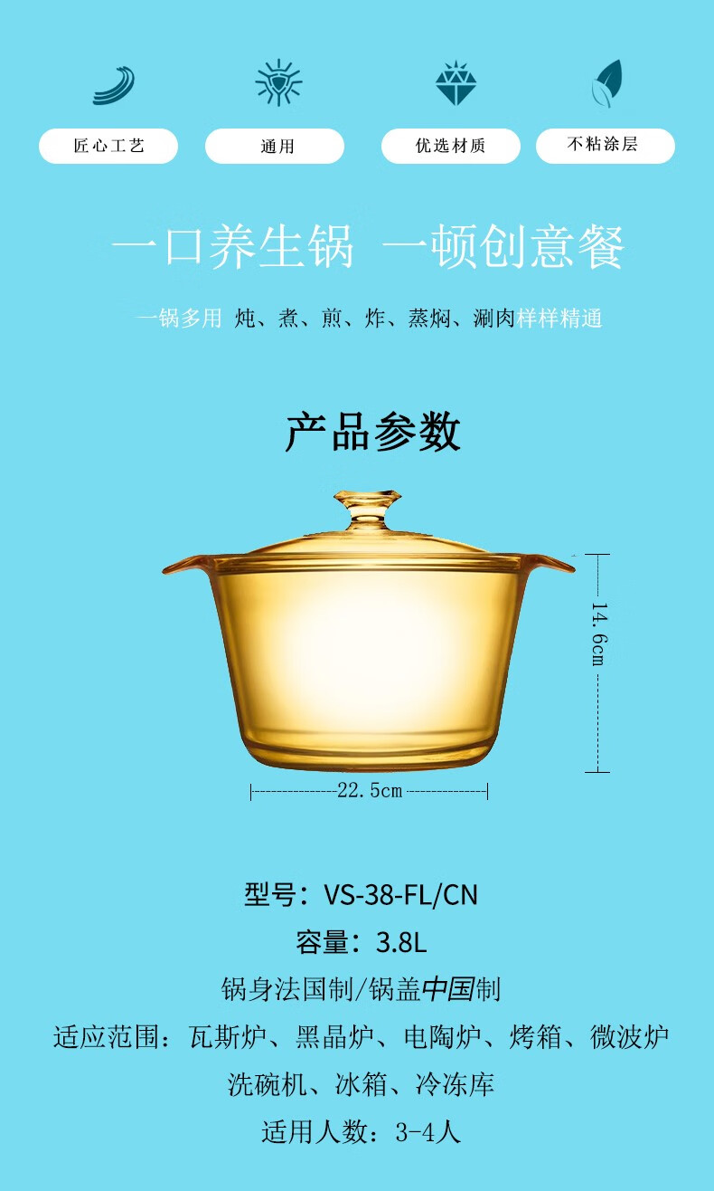 Health pot 12L28L38LFlair55L series glass pot water-proof stew pot Health pot 3 points 8L Health pot 3 points 8L