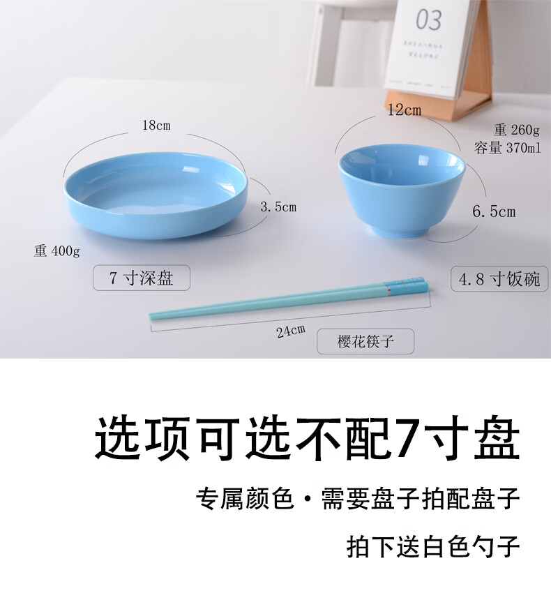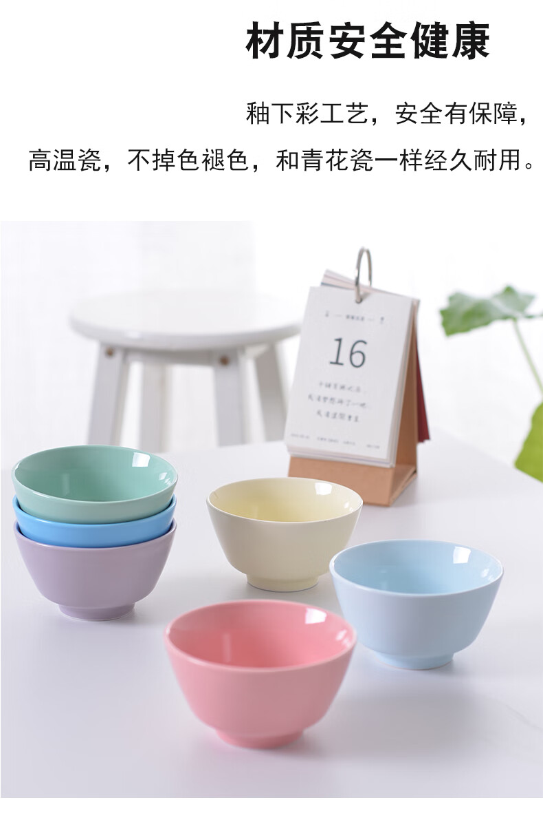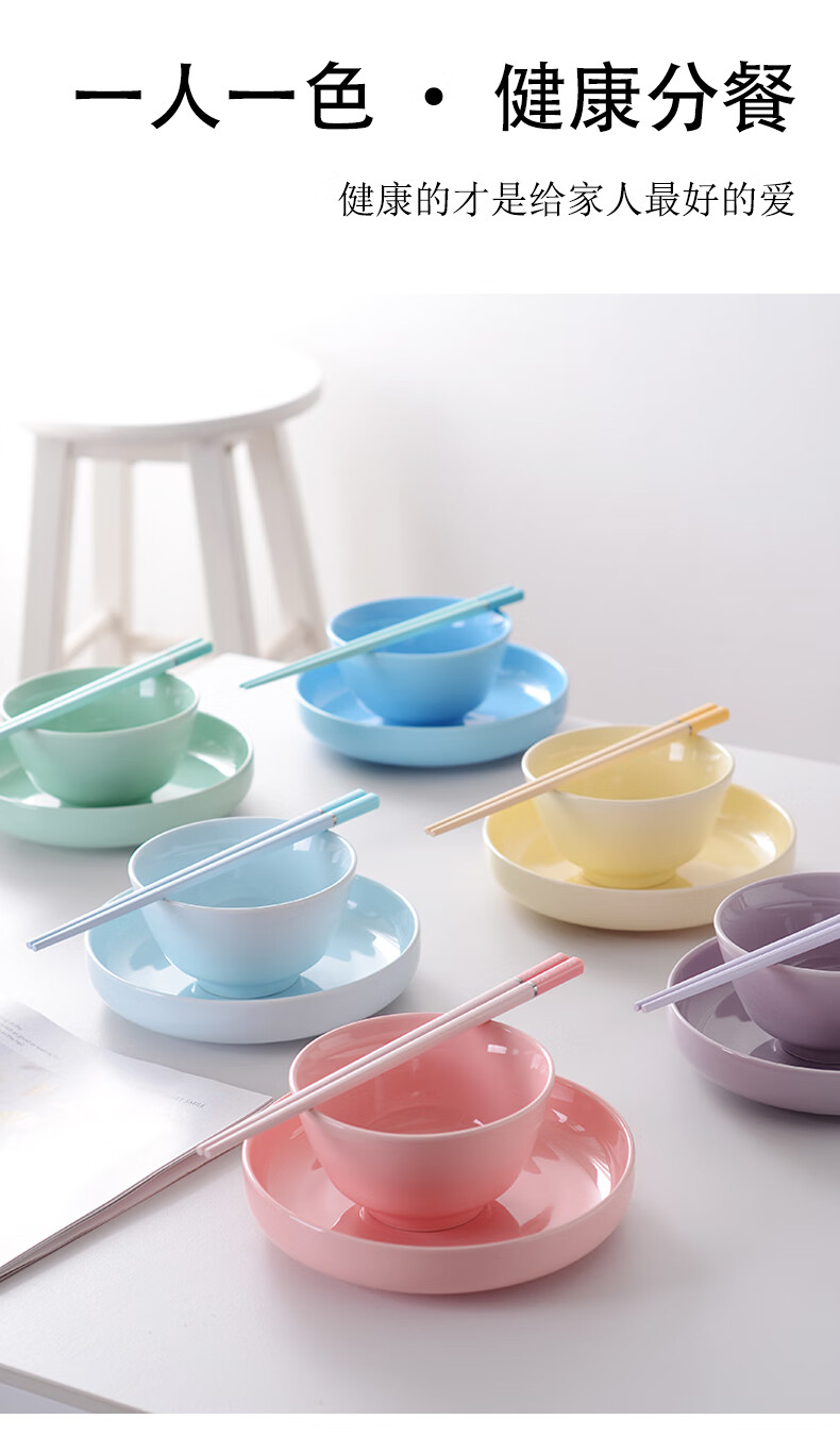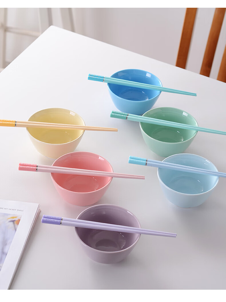 Meal-sharing bowls and plates, household one-person, one-color utensil set, chopsticks and spoons, courtyard area specializes in 64 ceramic rice, 6 colors, 1 set each, 4 points, 8-inch bowls, plates and chopsticks set