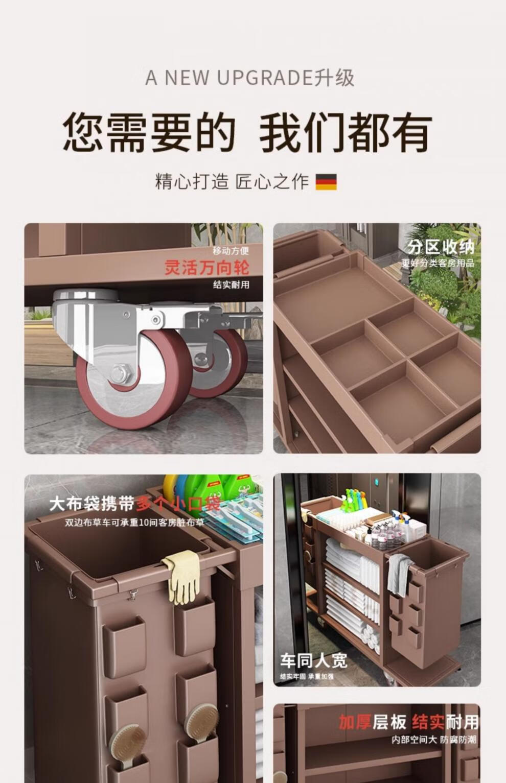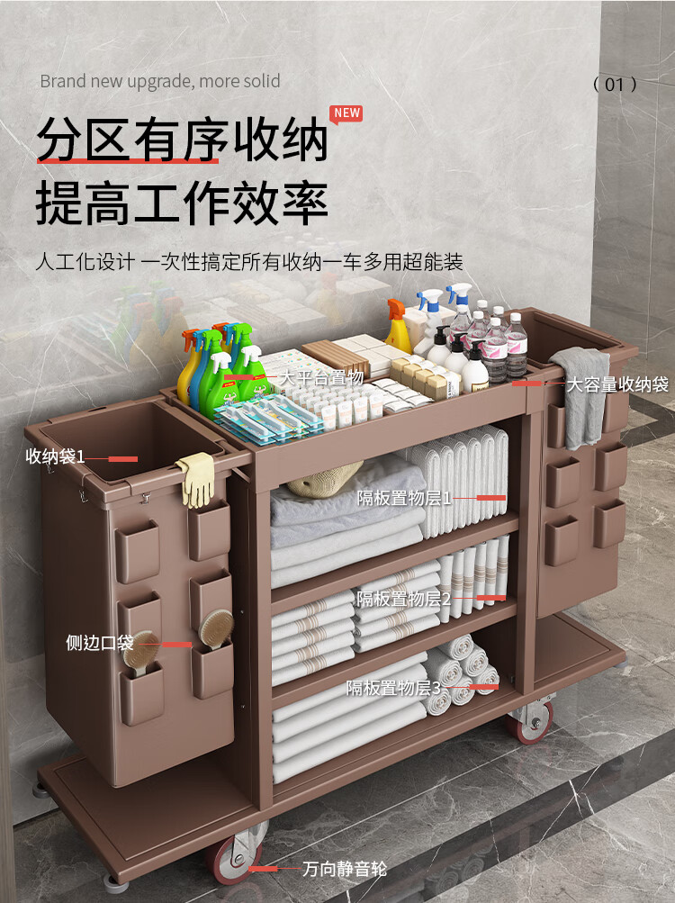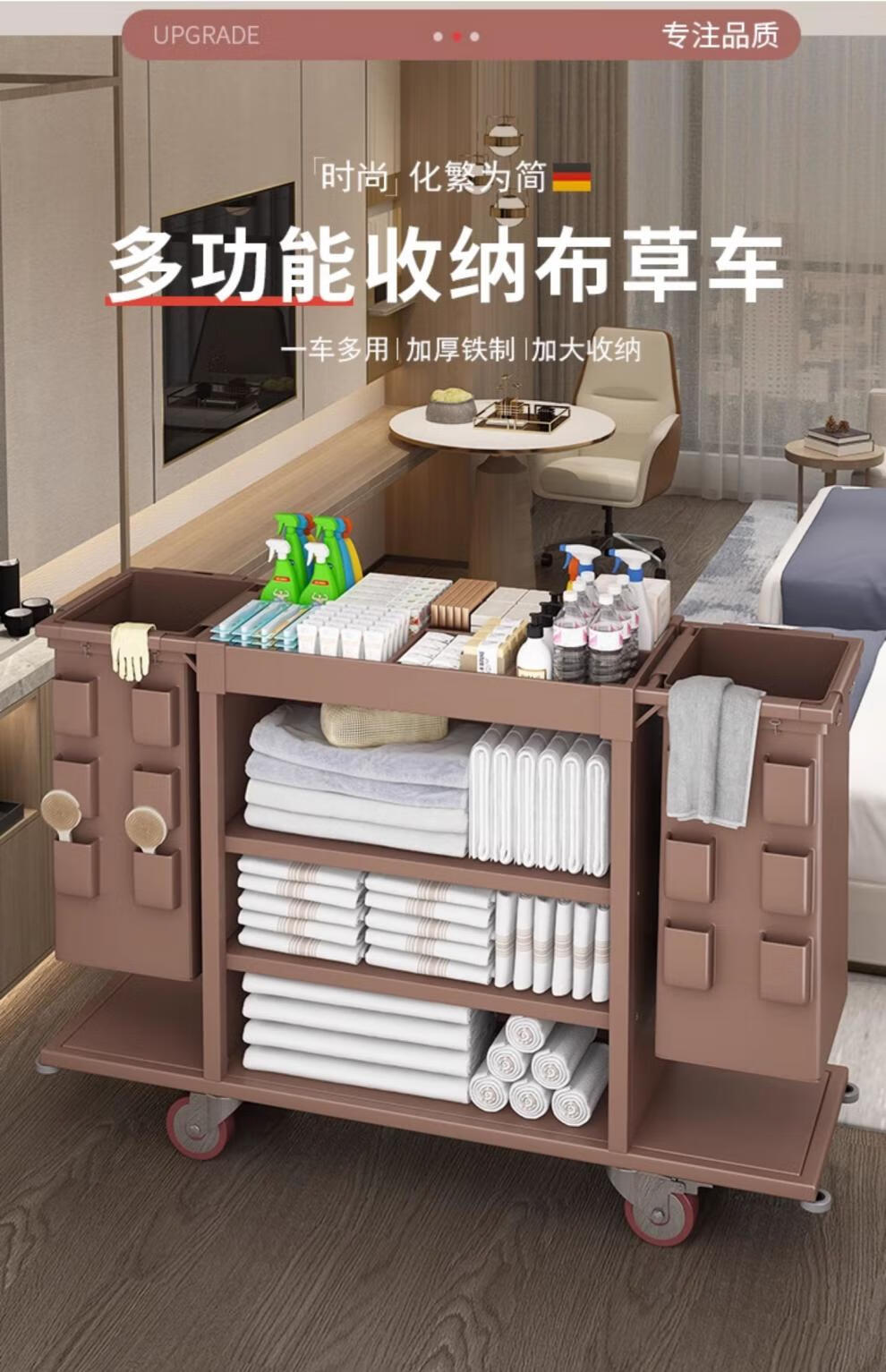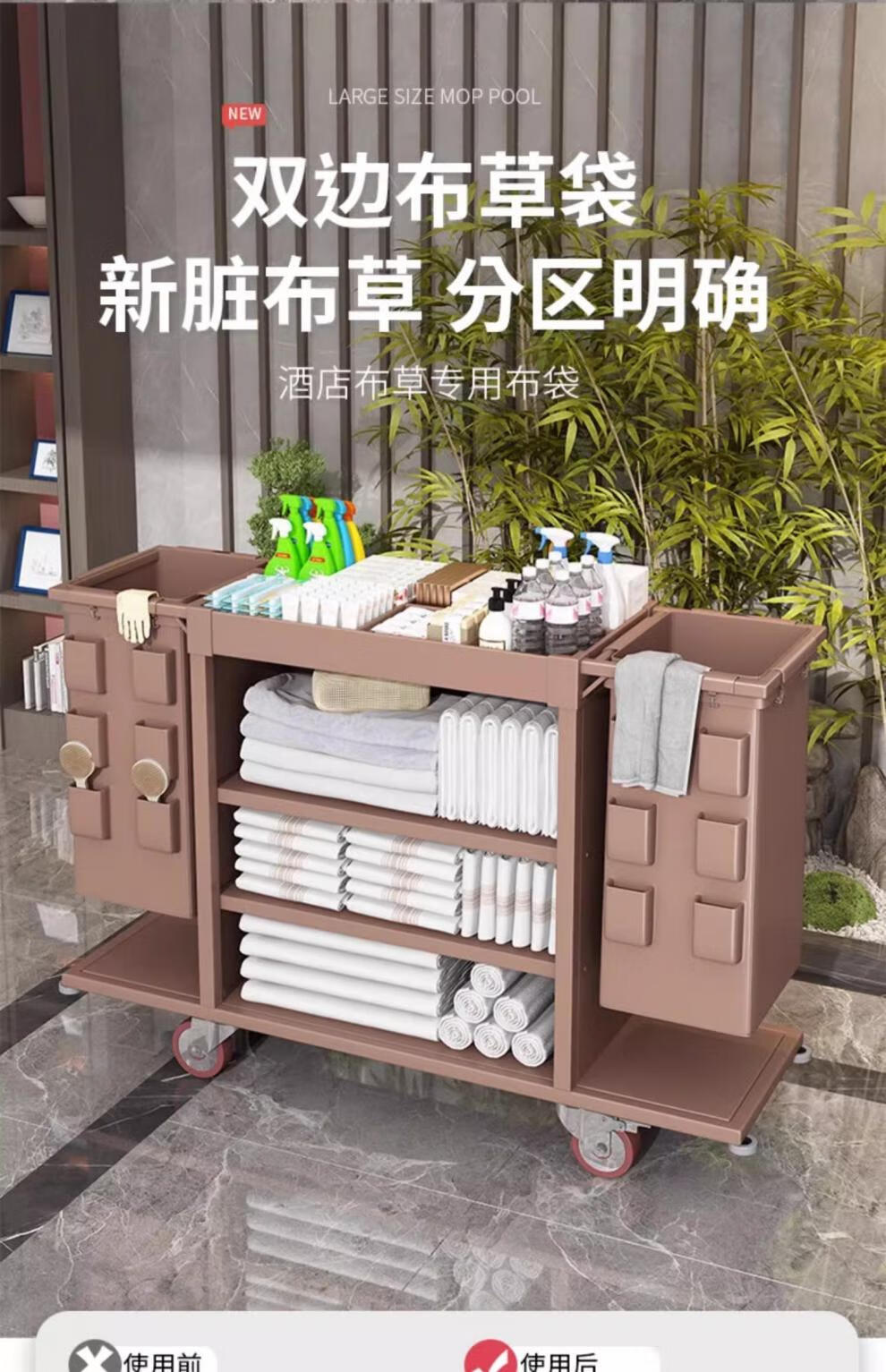 Pupan's new linen cart, hotel cart, storage, multi-functional hotel room special sanitary cleaning cart, luxury upgraded extra thick 4-inch silent wheel carpet tile dual-use labor-saving silent