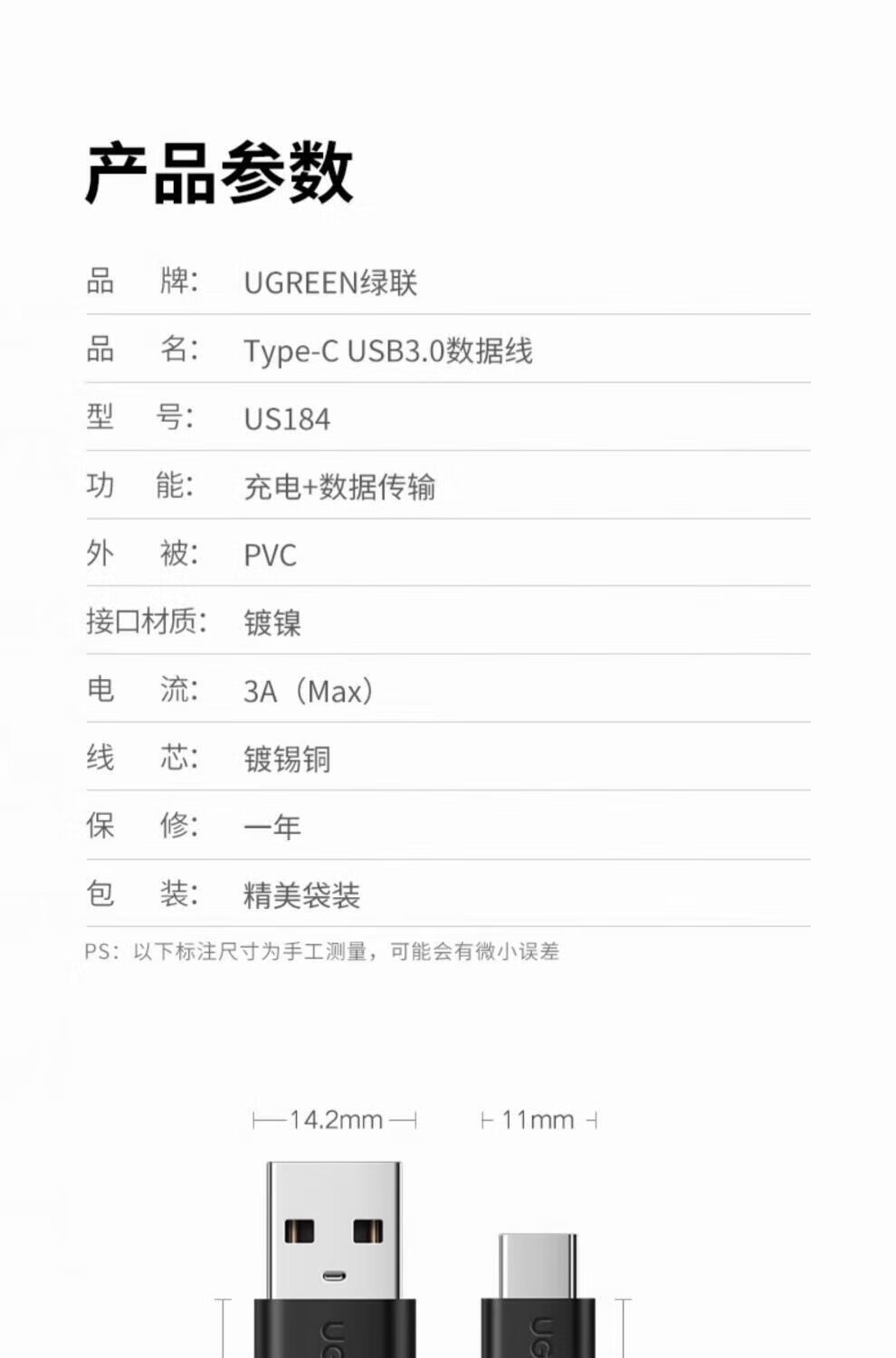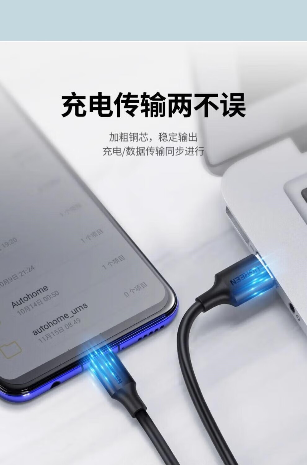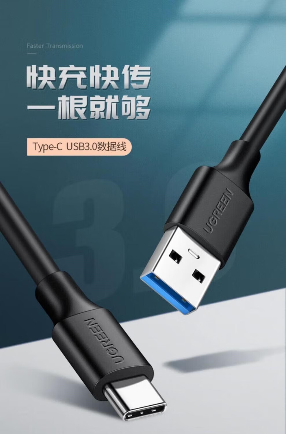 UGREEN typec data cable usb3.0 to typec high speed 3a fast charger cable thunderbolt 3 shift aluminum shell upgrade USB3.0-fast charge and transfer 400 0.25M