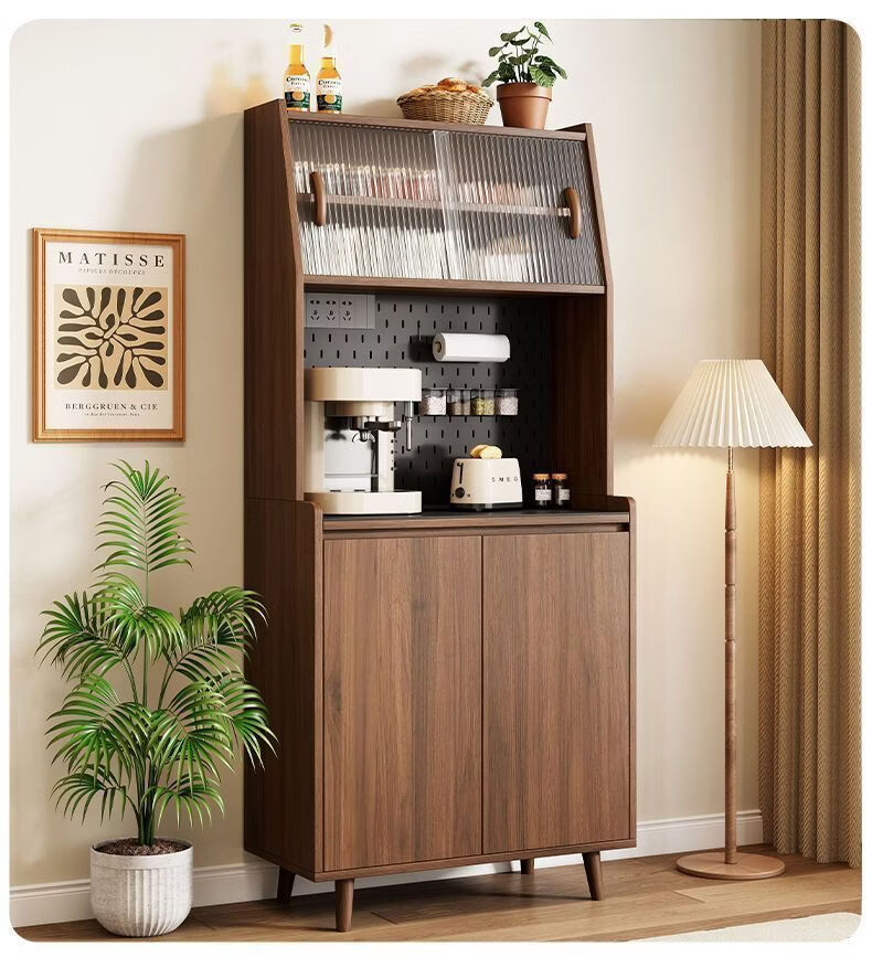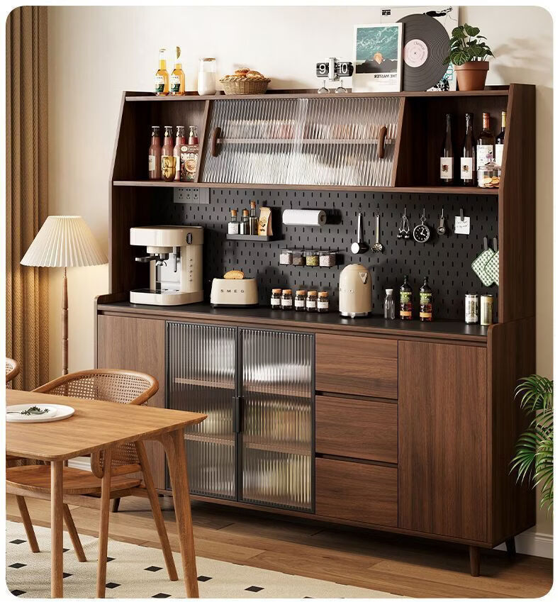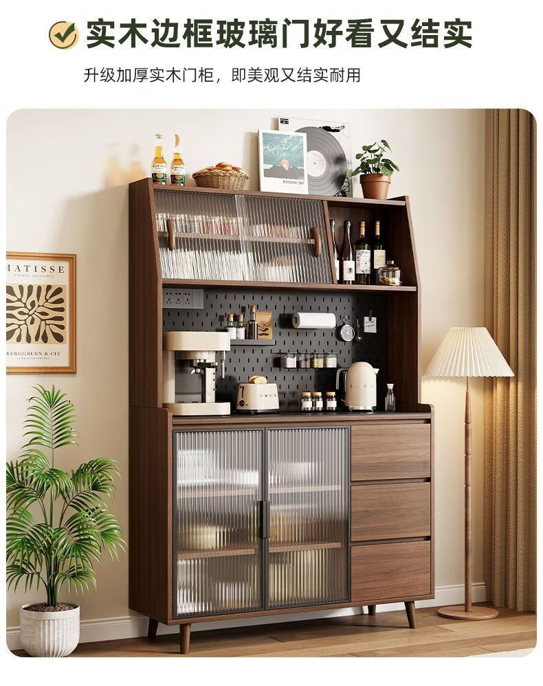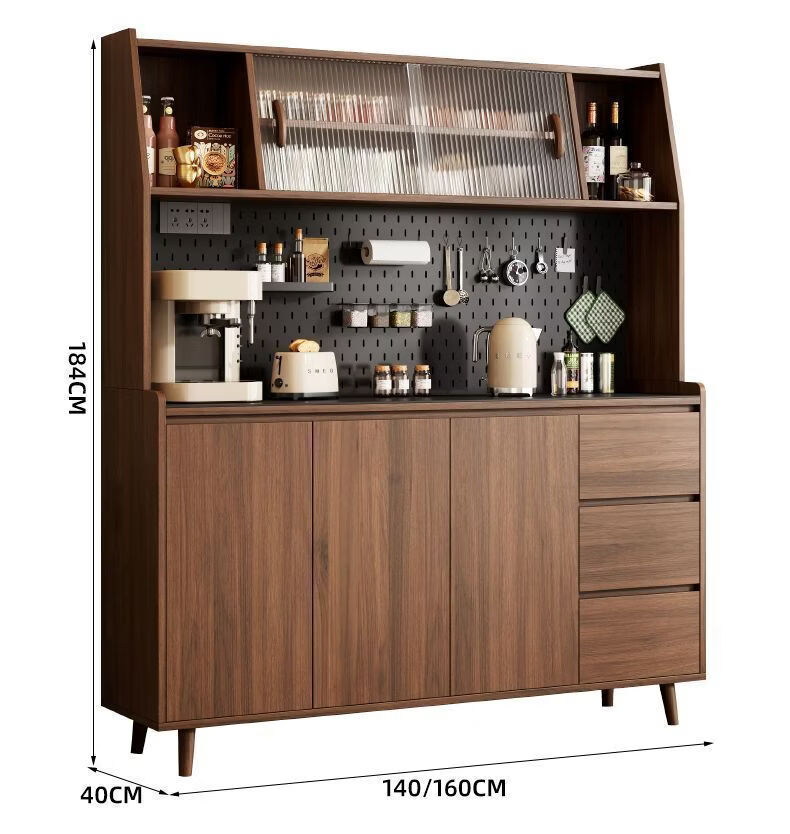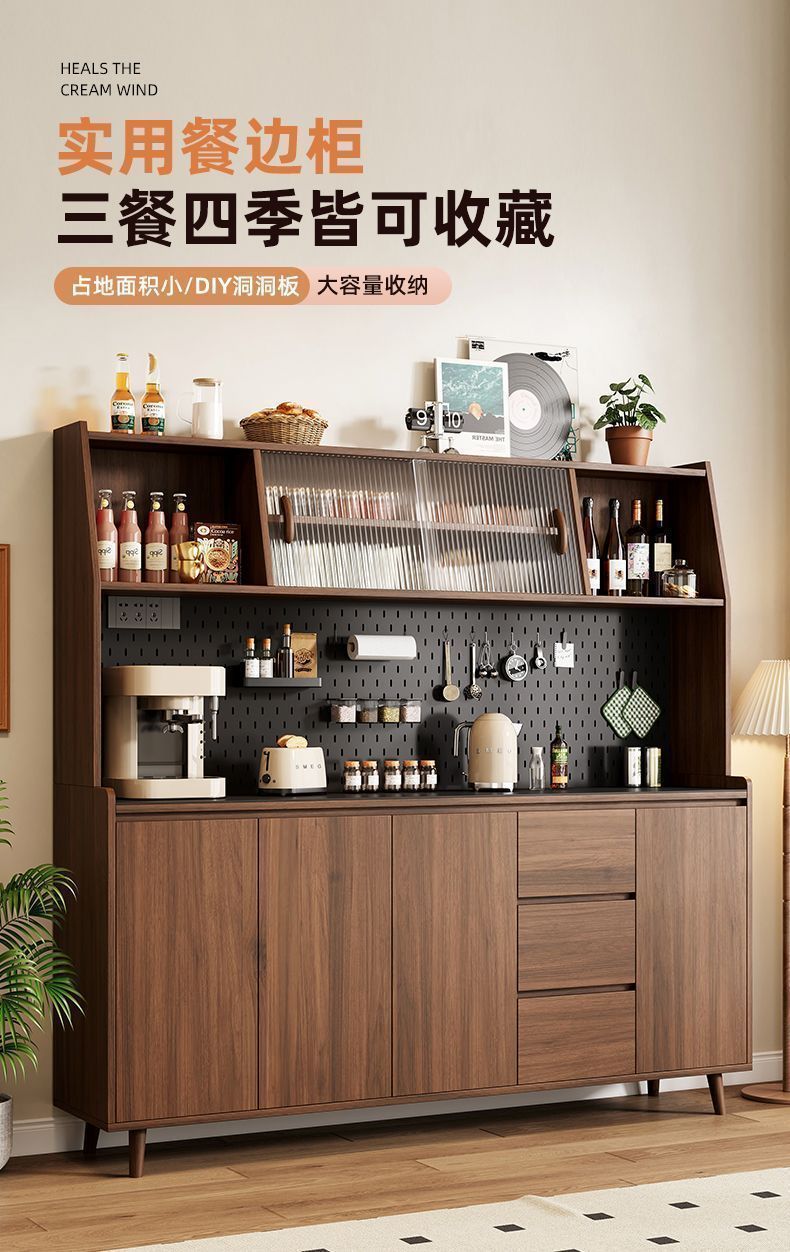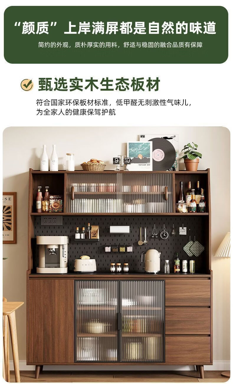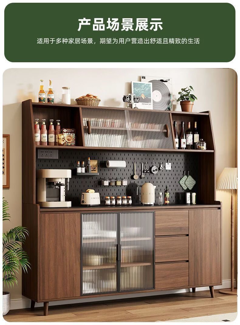 XINKONGSHENG solid wood sideboard against the wall integrated storage cabinet mid-century style coffee cabinet cabinet living room wine cabinet multi-functional tea cabinet National Day/Big Sale -180*184*40 Self-installation/Big Sale/All solid wood door (glass door required, contact customer service)