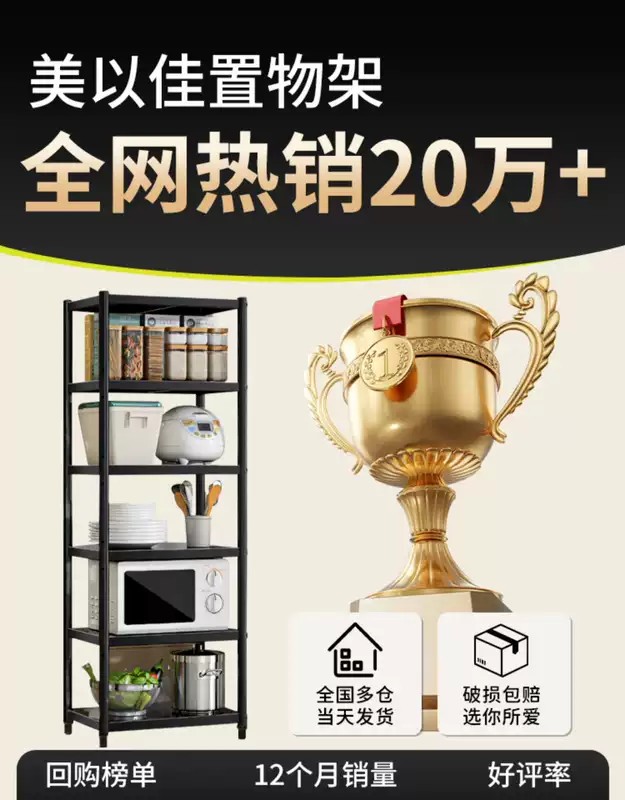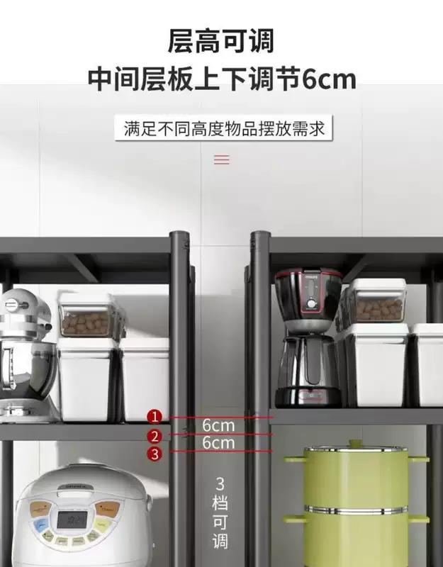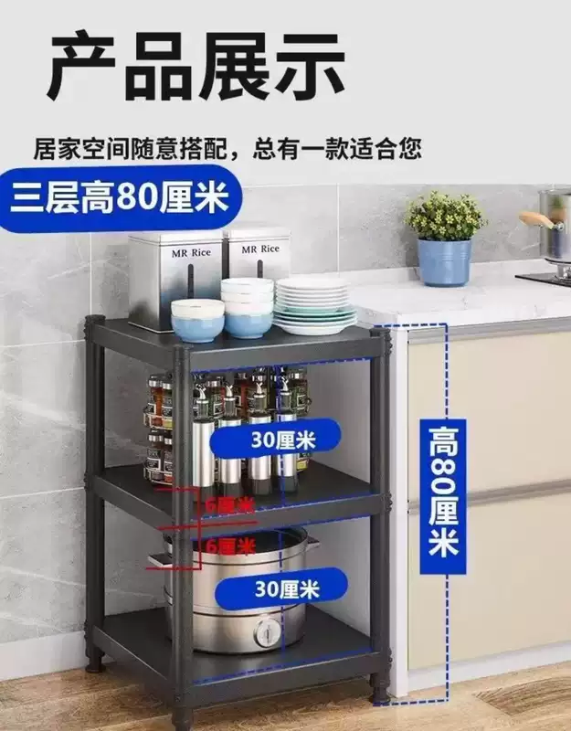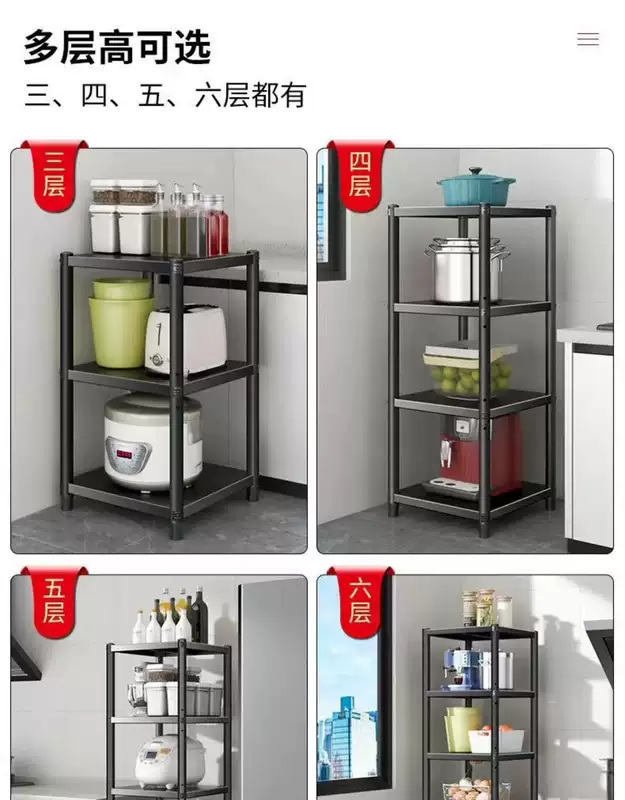 Yusenyi carbon steel kitchen rack floor-standing multi-layer microwave oven storage sandwich shelf household storage goods 20 wide 45 long 70cm high 3 layers (carbon steel)