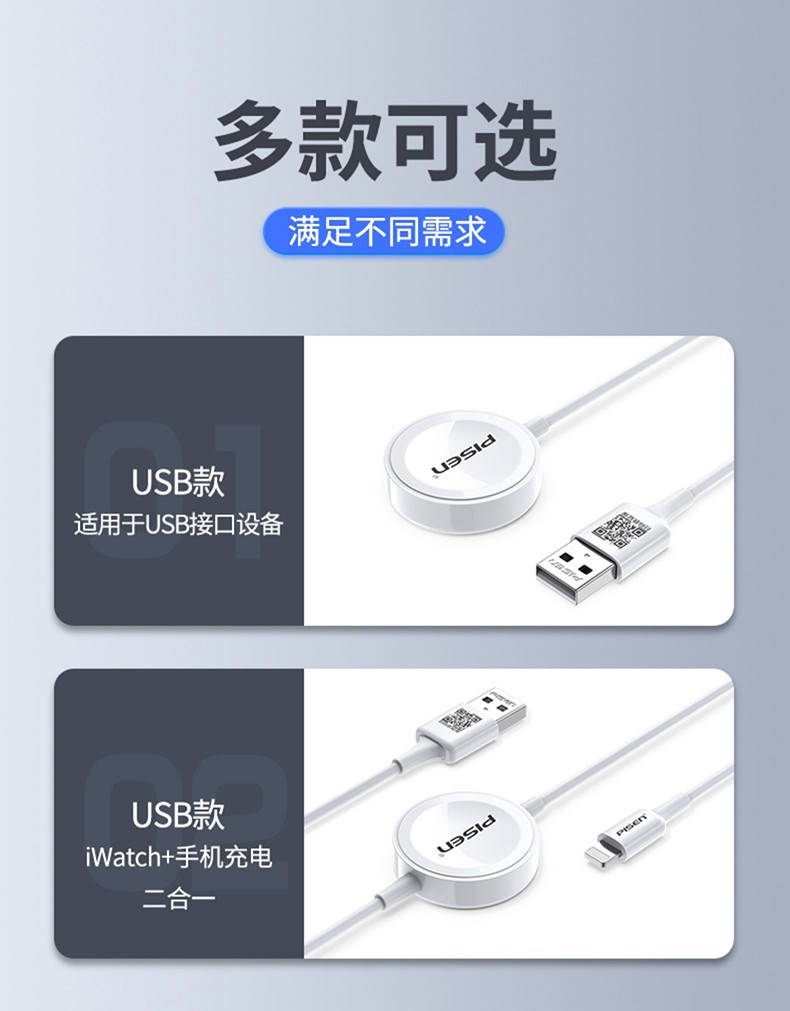 PISEN Apple Watch Charger Apple Watch S10/9/8/7/6/5/4/SE2/Ultra2 Generation iWatch Wireless Magnetic Mobile Phone Charging Cable Fast Charging Data Cable Apple Watch Wireless Charging + Mobile Phone Data Cable Two-in-One 1.5 Meters