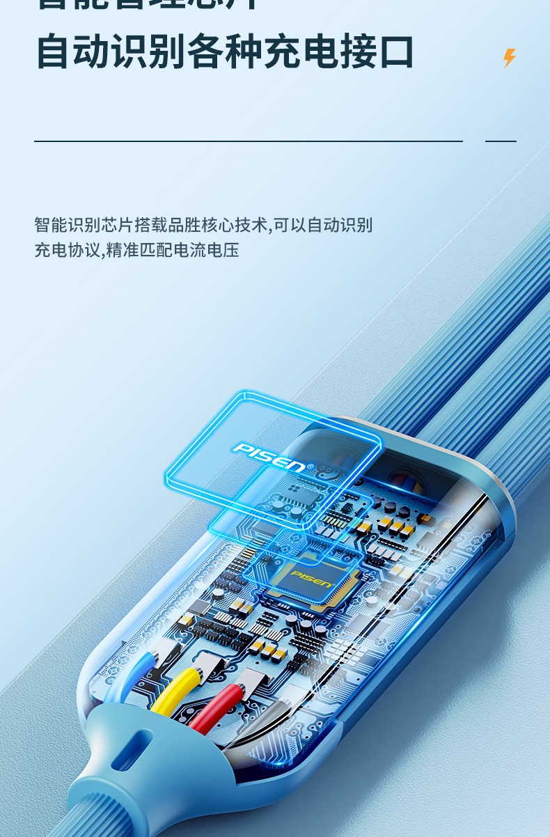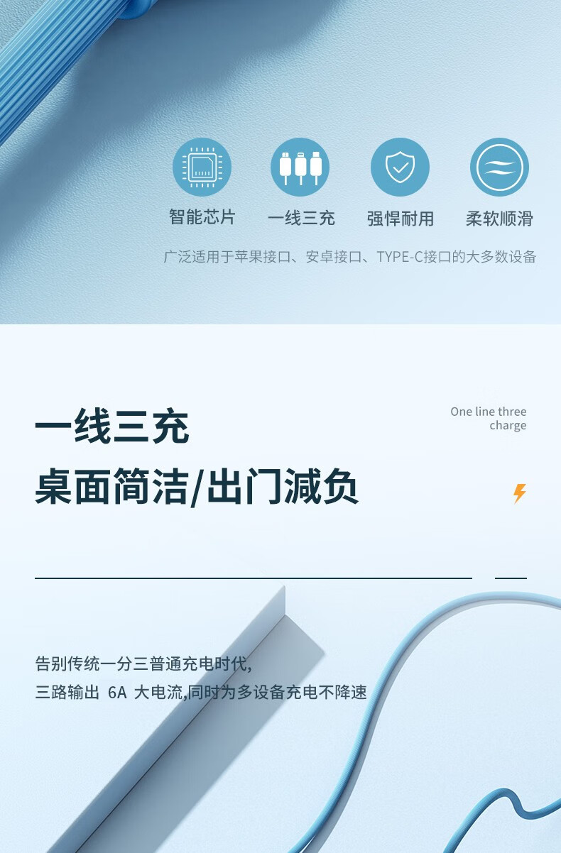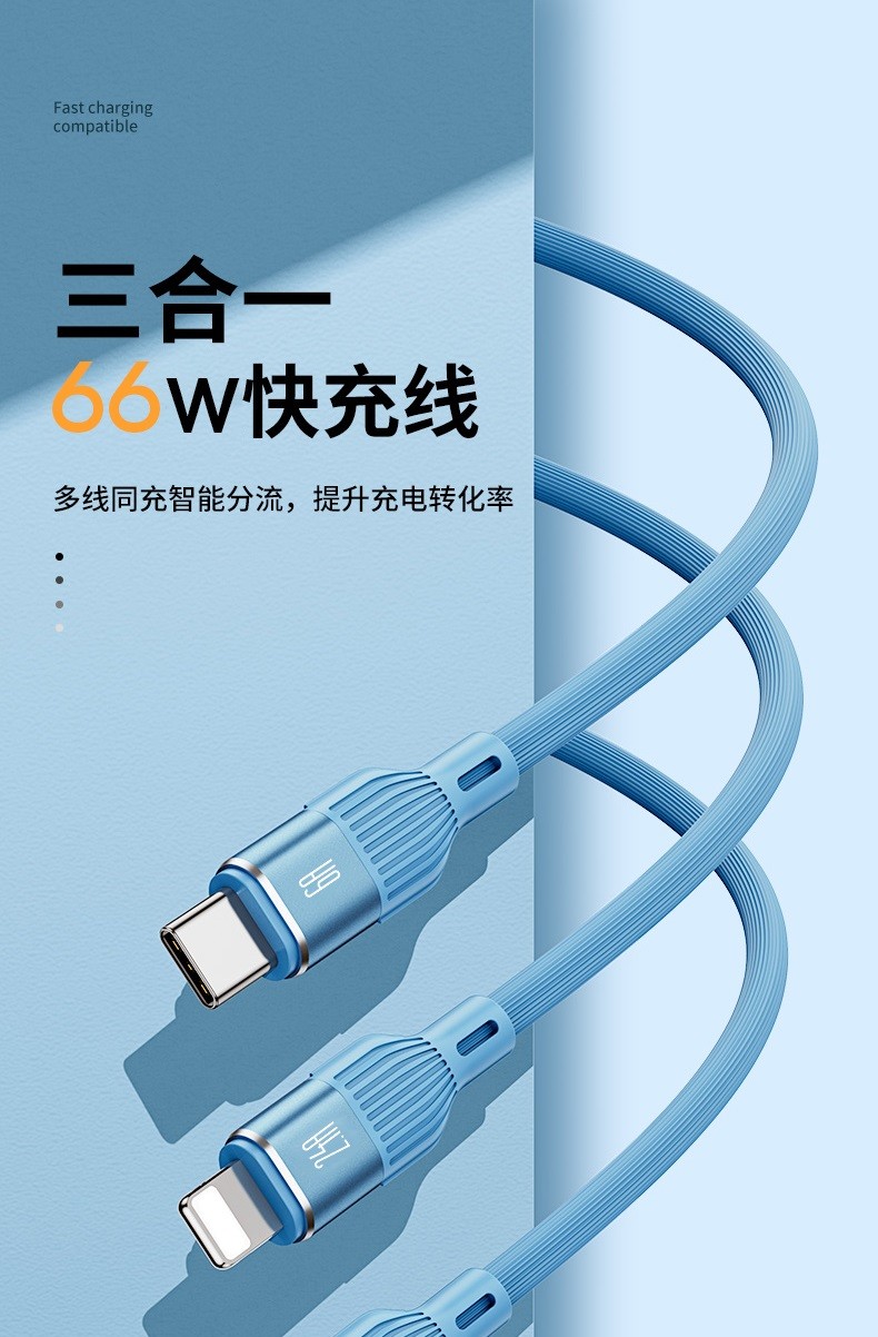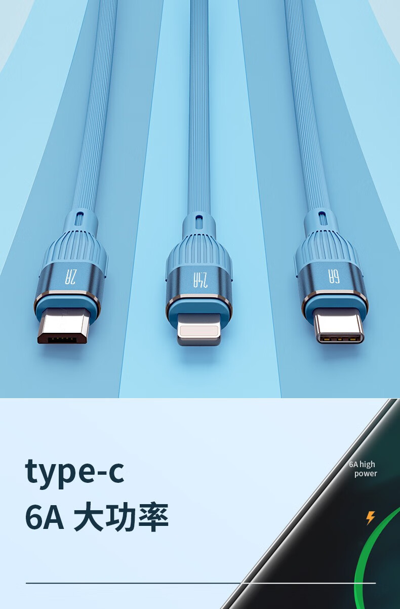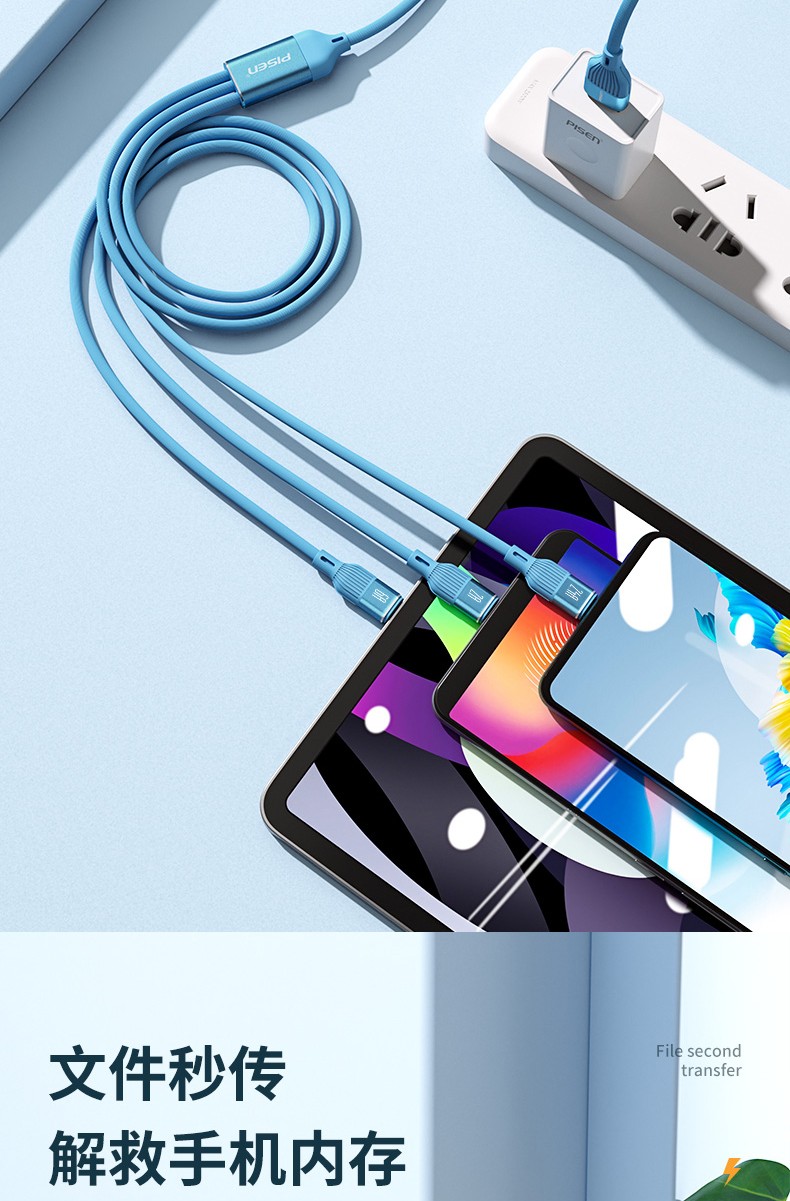 PISEN three-in-one data cable fast charging 66W Apple Type-C suitable for Huawei Android 6A multi-function mobile phone car one-to-three charging cable iPhone Xiaomi USB universal 66W super fast charging liquid silicone three-in-one data cable 1 meter blue
