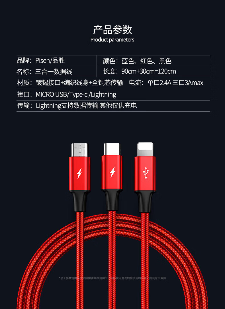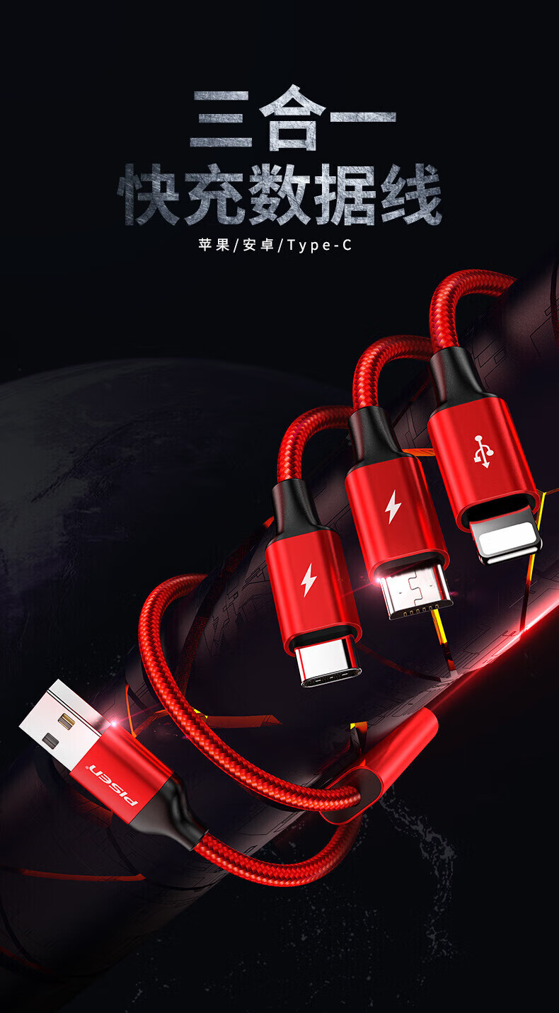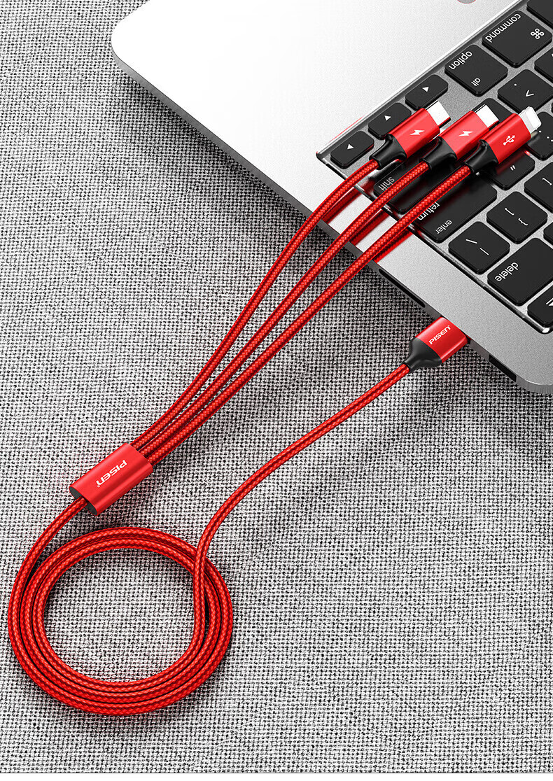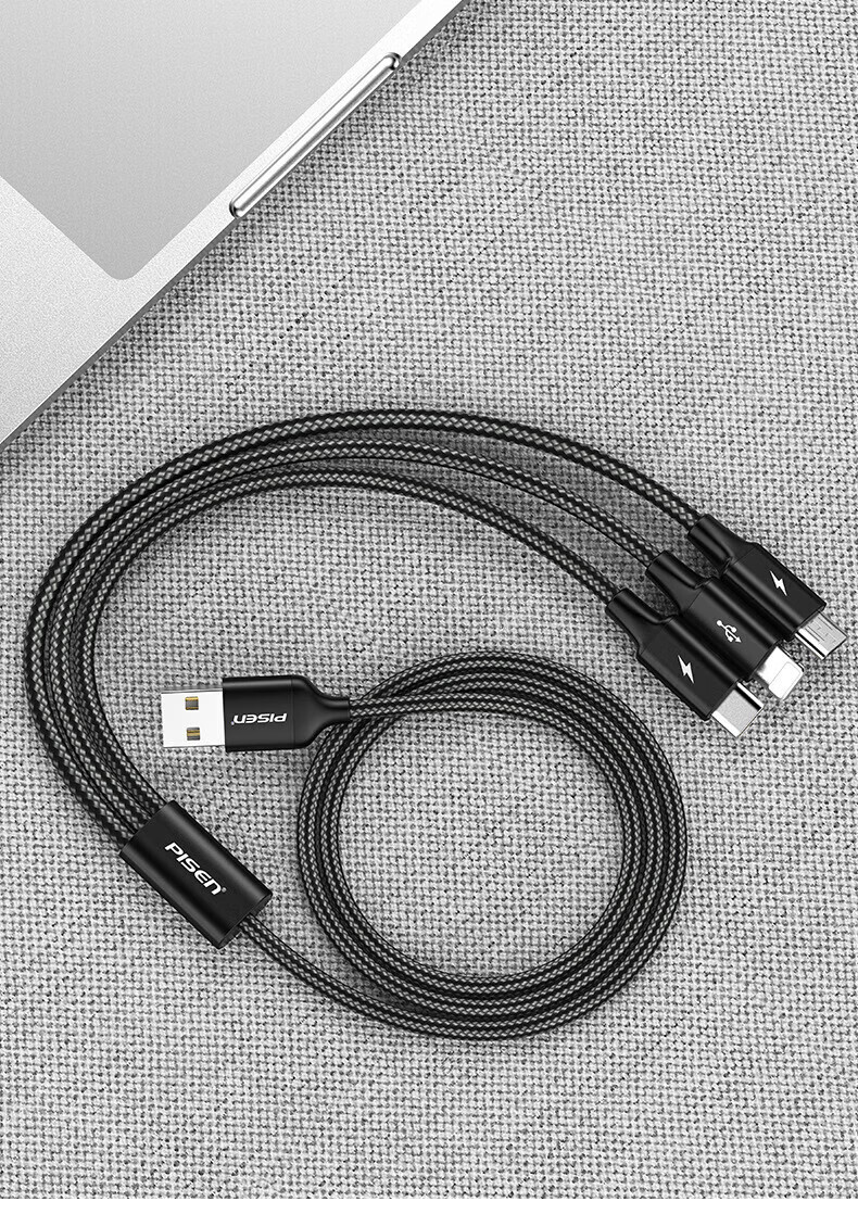 PISEN is suitable for 14 Android-c one-to-three multi-functional charging cable 13 2-in-1 black 1 meter +-c 3A fast