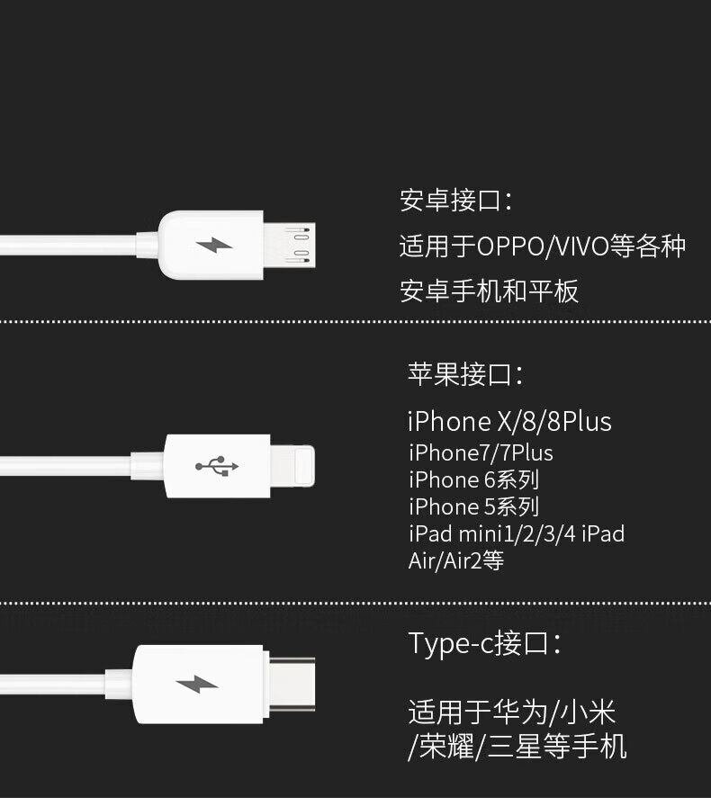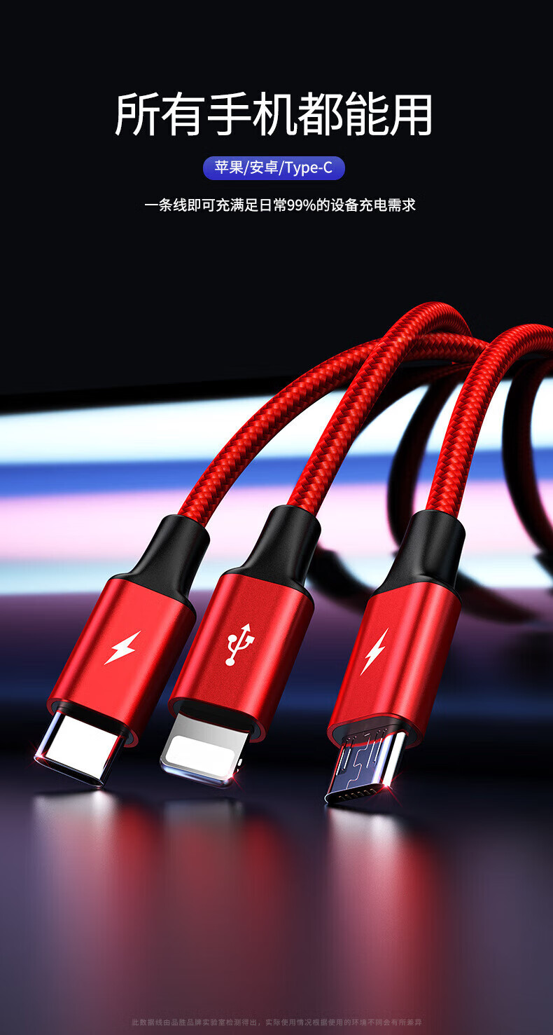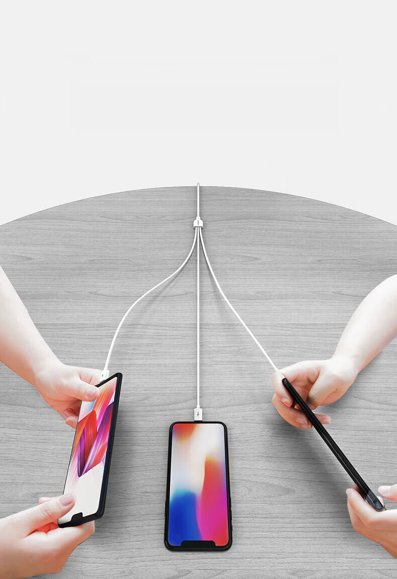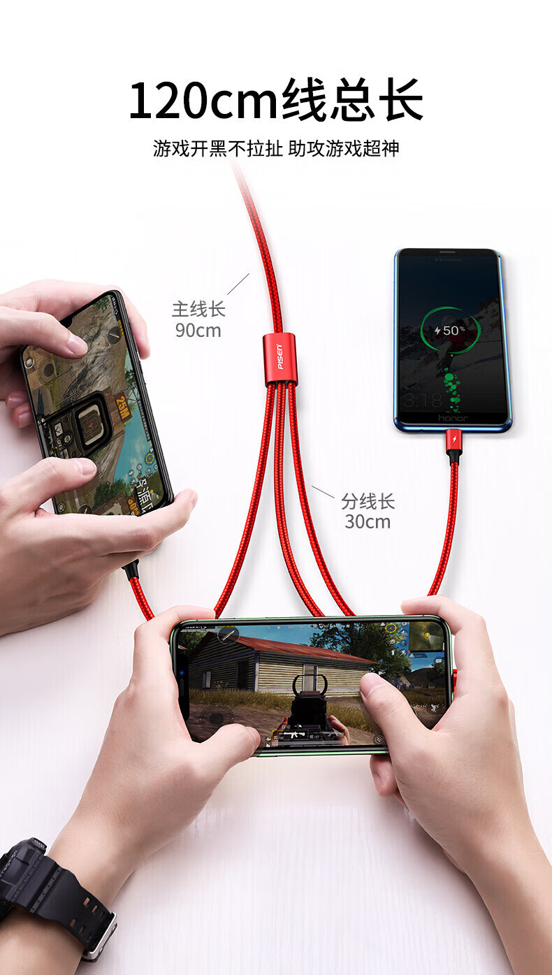 PISEN is suitable for 14 Android-c one-to-three multi-functional charging cable 13 2-in-1 black 1 meter +-c 3A fast