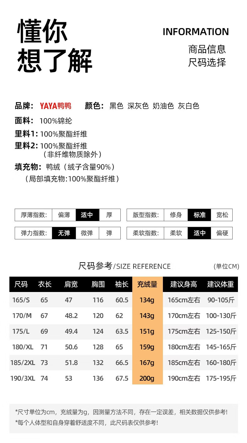 YAYA Walking Series Down Jacket 2026 New Winter Short Fashionable Versatile Casual Warm Duck Down Jacket Black 3XL /190