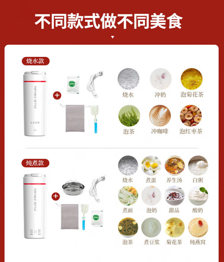 Xushansi German brand water cup portable kettle travel small electric hot water cup thermos cup white smart water boiler 316 500ml