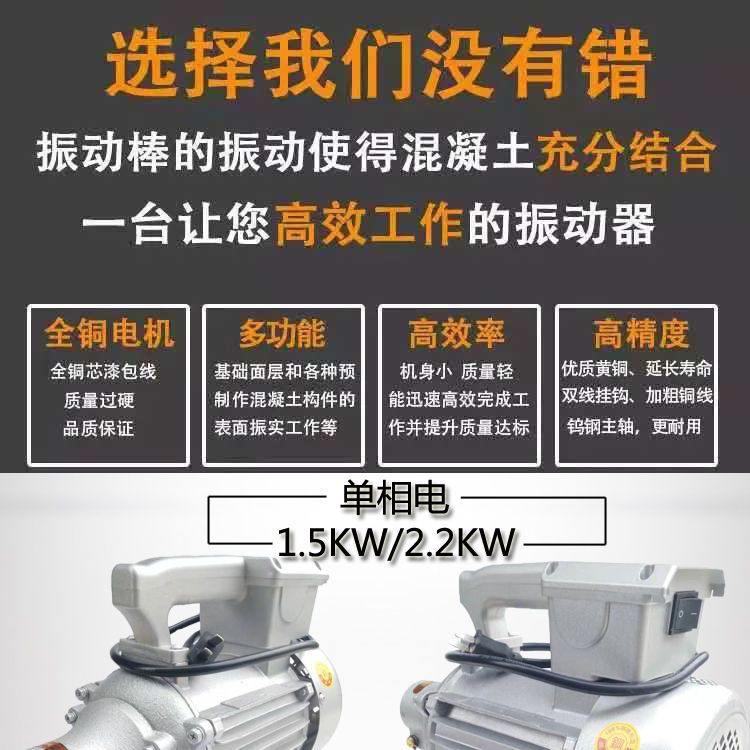 Kaooseen plug-in concrete vibrator single three-phase construction concrete vibrator vibrator 220380 round head single-phase motor 1.5 kilowatt + 50 type 4 meters