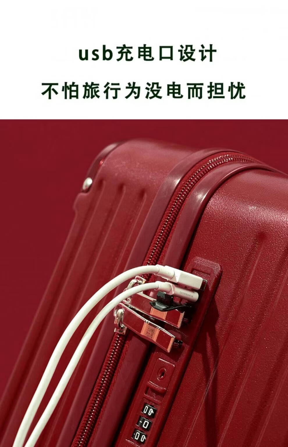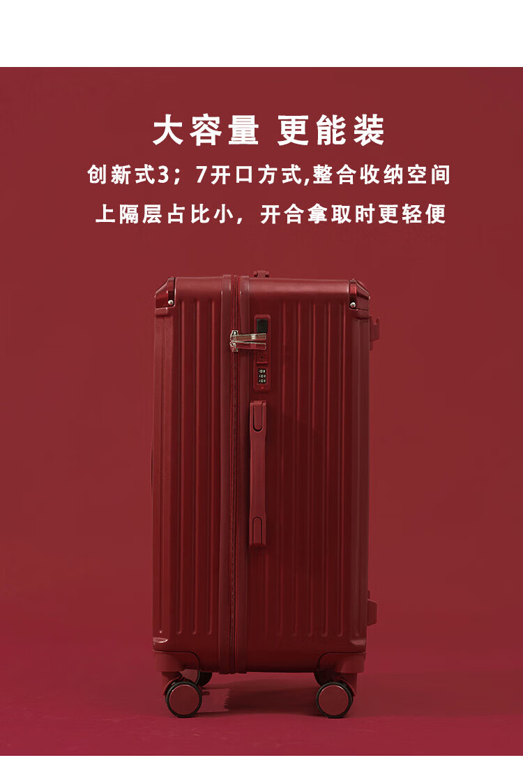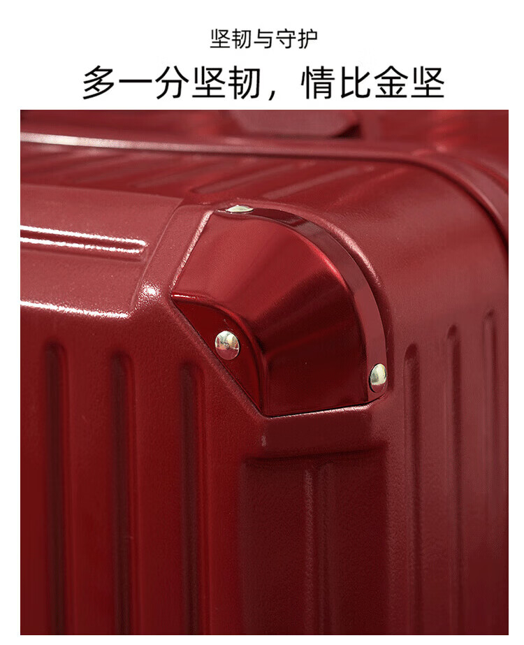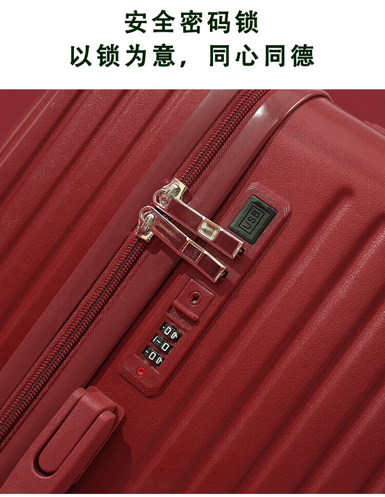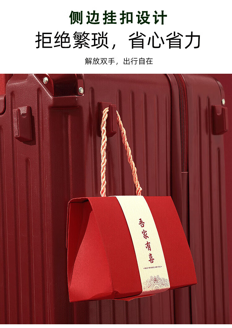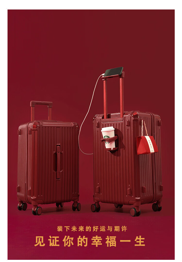 VENDOGERL wedding luggage 2025 new dowry box red leather box bridal trolley box female password dowry box pair Bordeaux red zipper without mobile phone holder 24 inches hidden cup holder + charging port + brake shock absorber wheel
