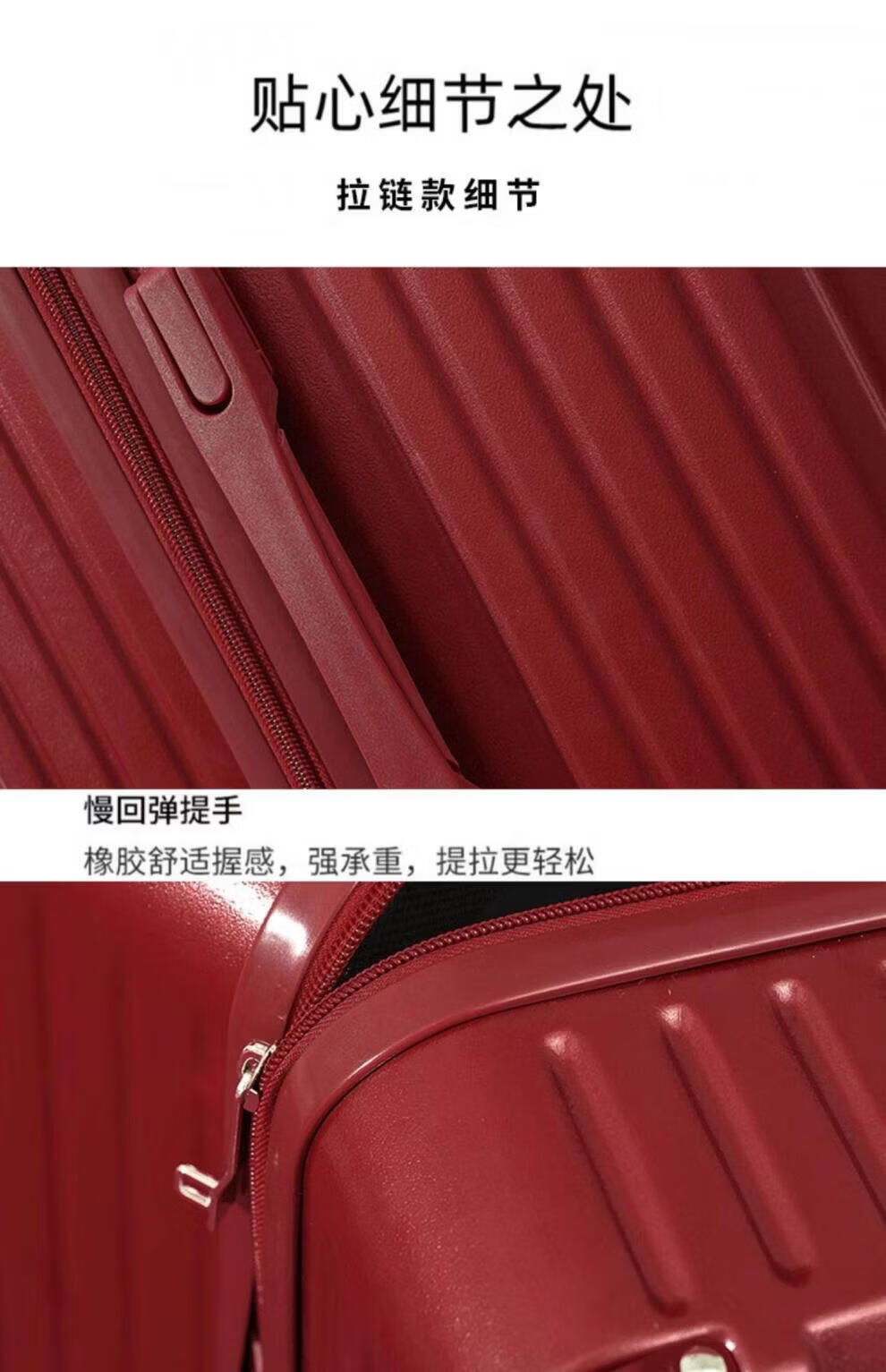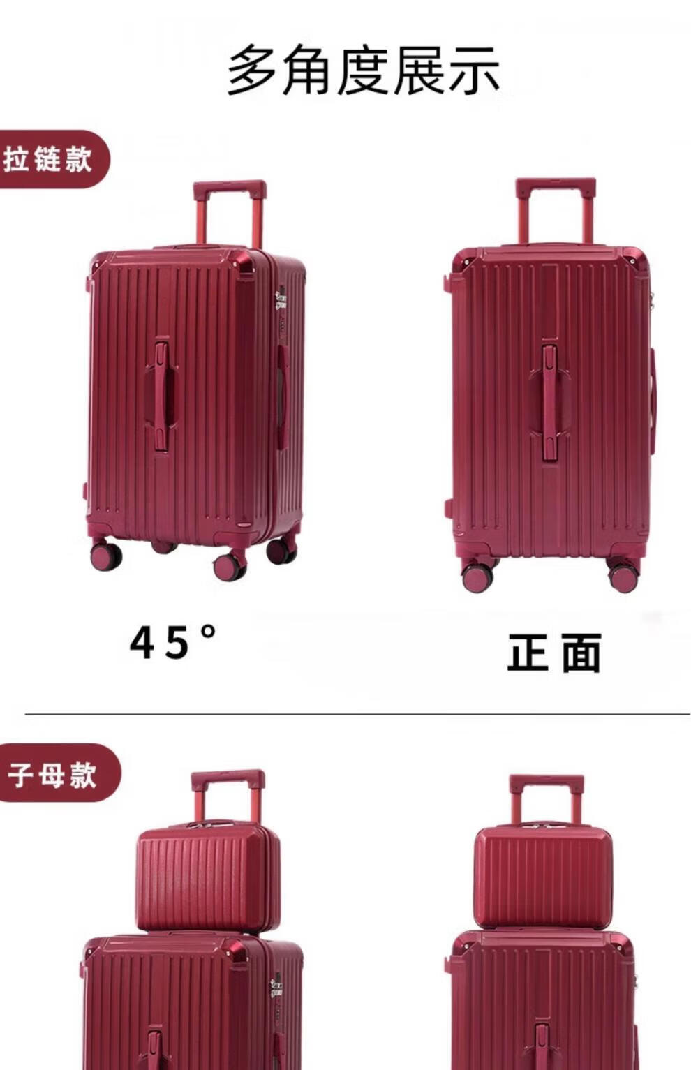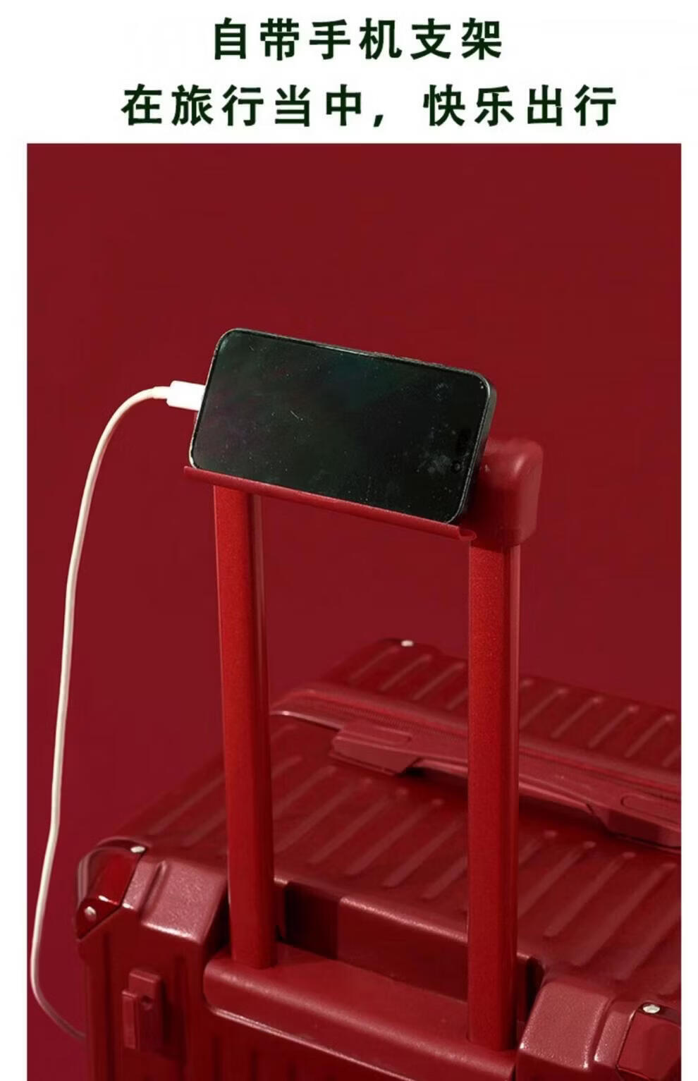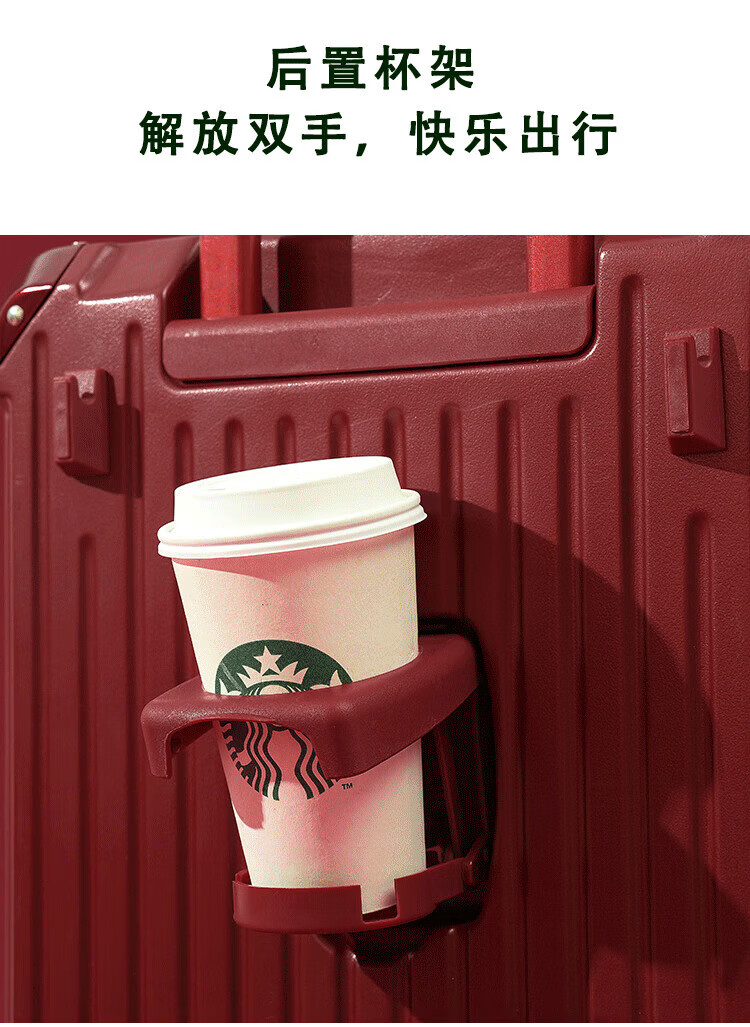 VENDOGERL wedding luggage 2025 new dowry box red leather box bridal trolley box female password dowry box pair Bordeaux red zipper without mobile phone holder 24 inches hidden cup holder + charging port + brake shock absorber wheel