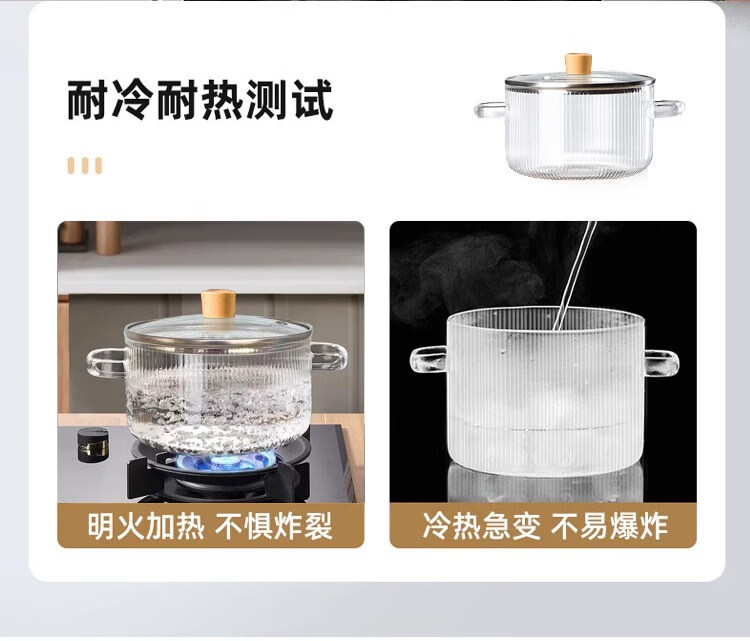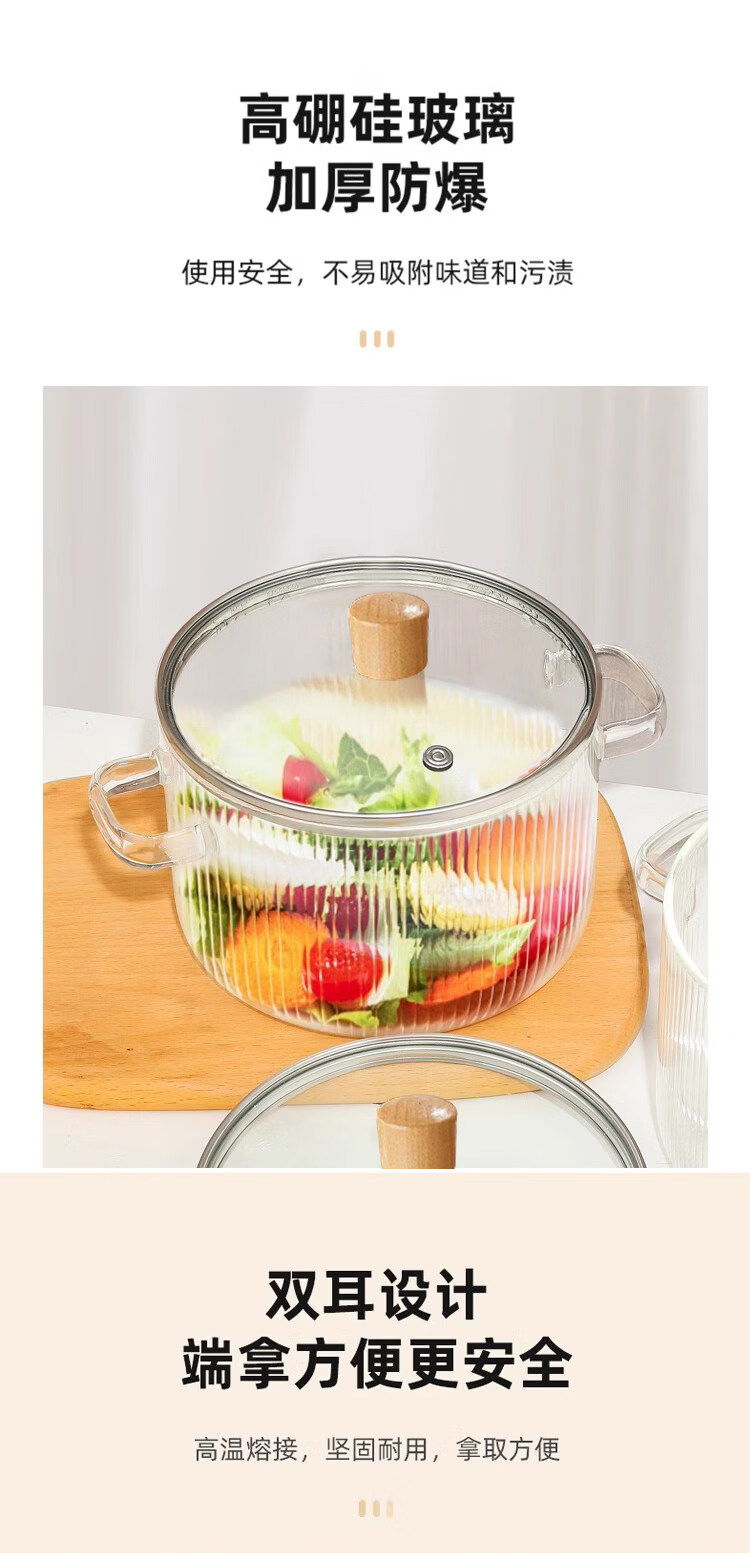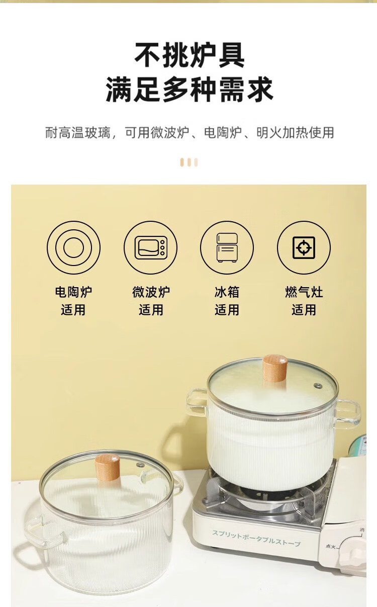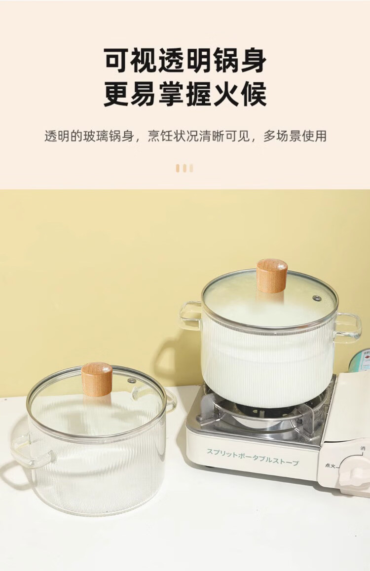 Tuojin imported high-quality borosilicate glass pot from Germany, open flame, heat-resistant small milk pot, transparent soup pot, electric ceramic stove, special cooking wood grain pot + yellow spoon -50 -170 1cm 1.7L