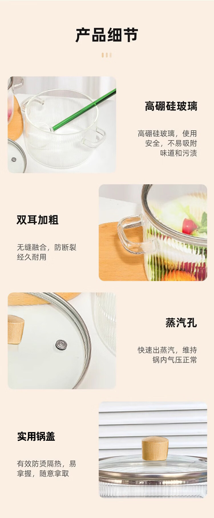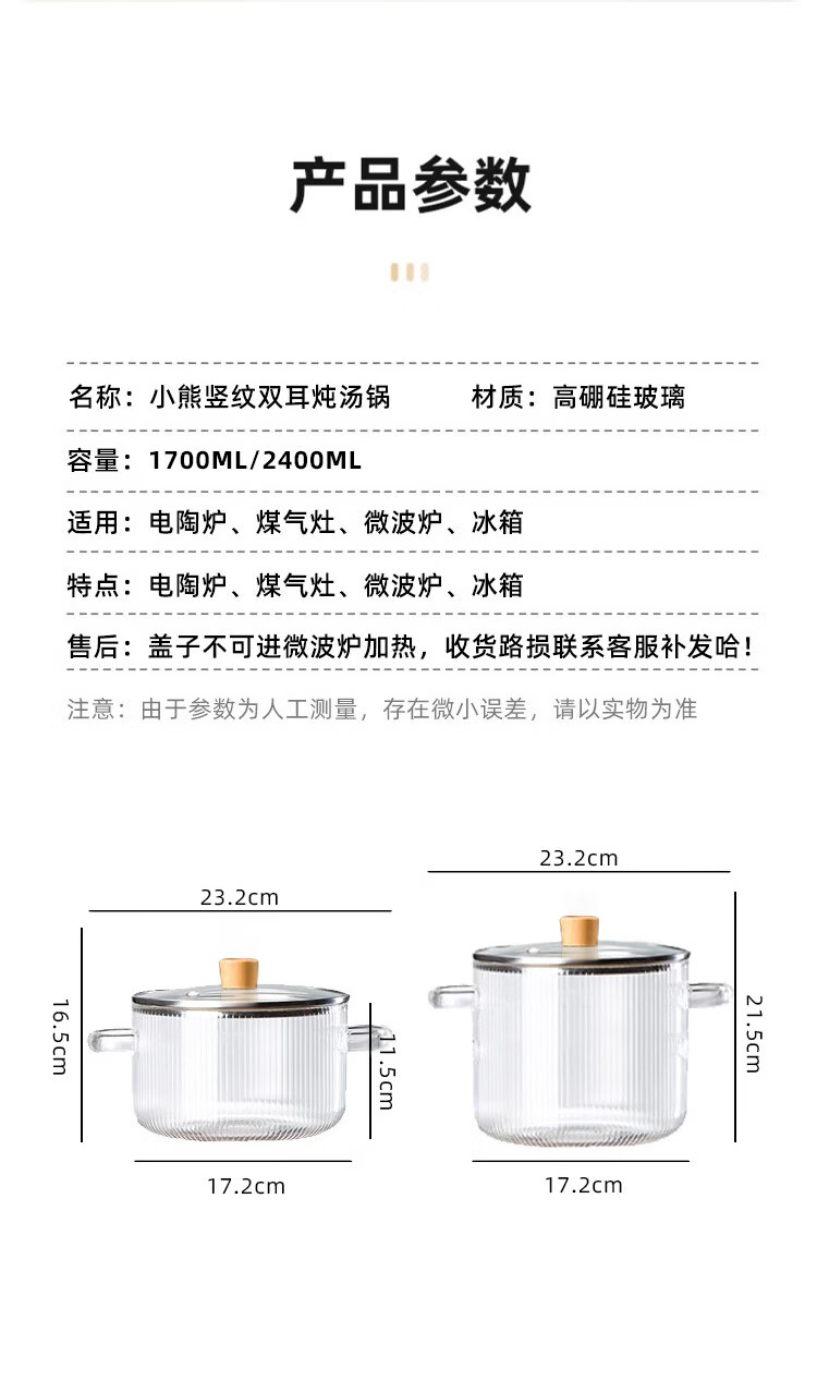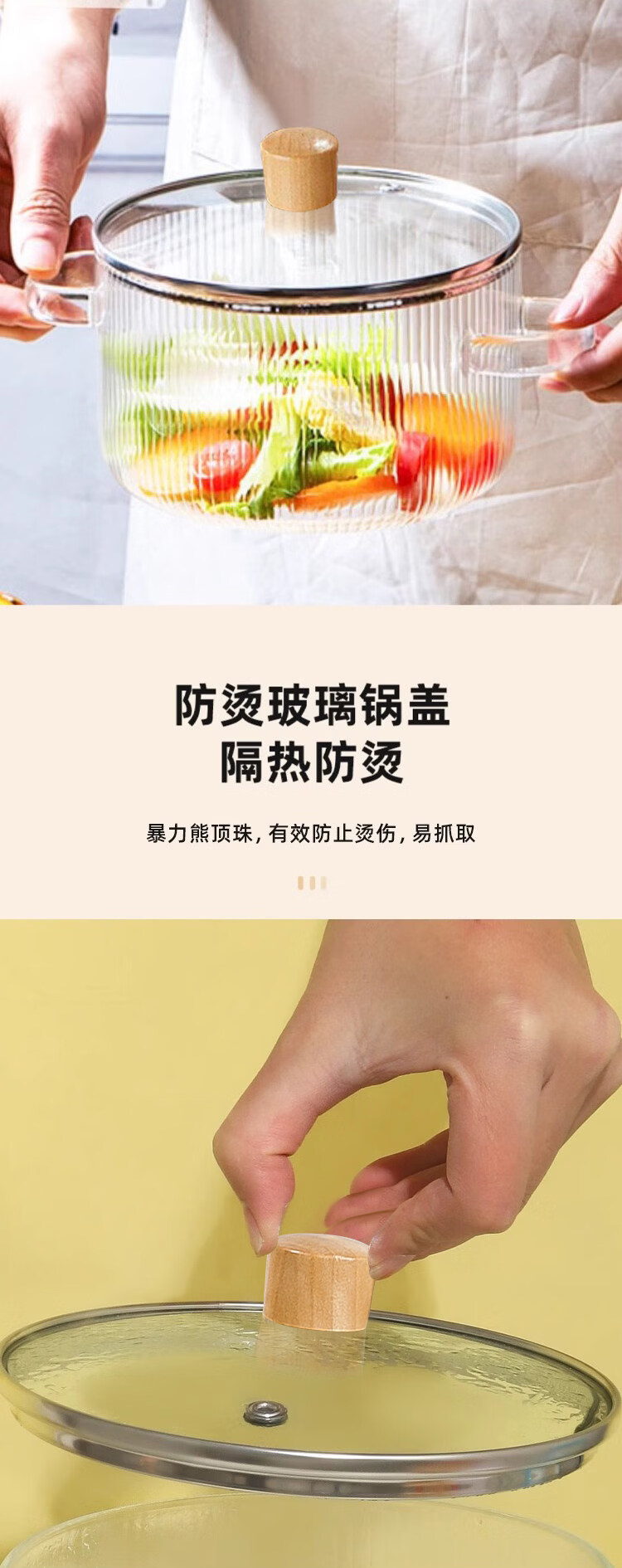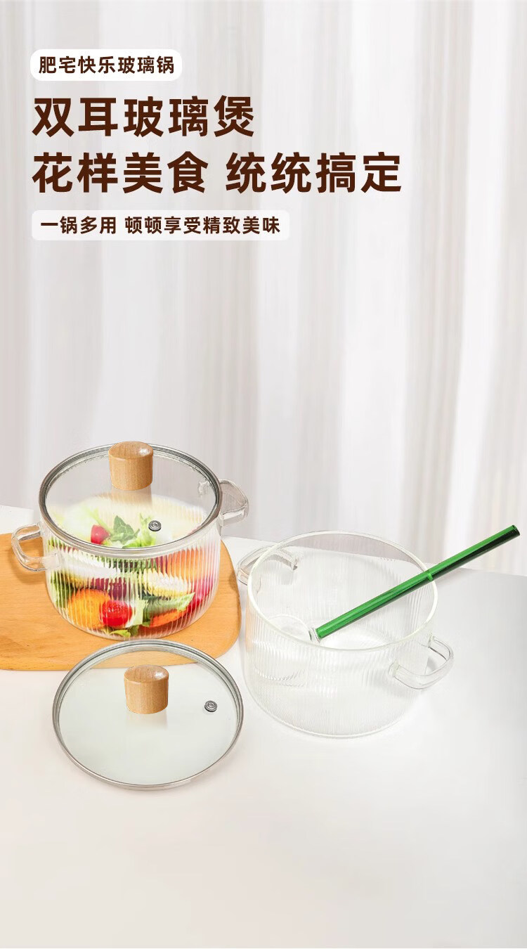 Tuojin imported high-quality borosilicate glass pot from Germany, open flame, heat-resistant small milk pot, transparent soup pot, electric ceramic stove, special cooking wood grain pot + yellow spoon -50 -170 1cm 1.7L