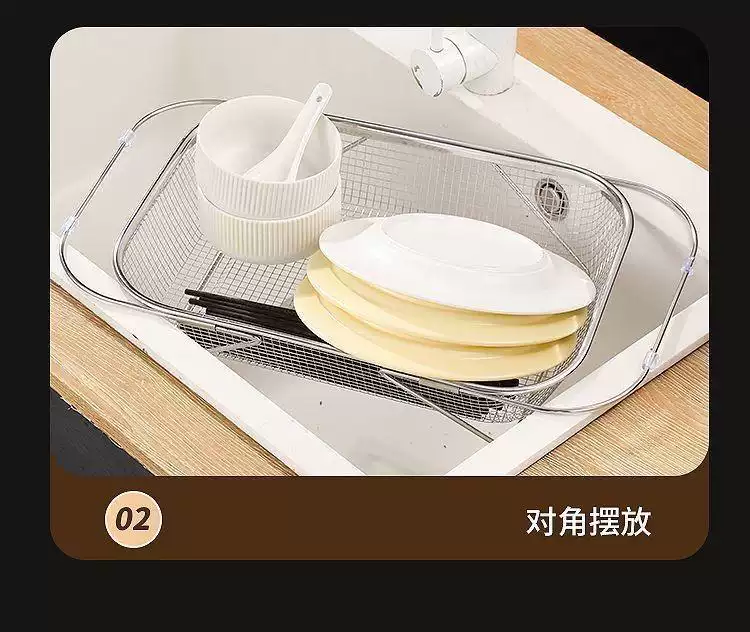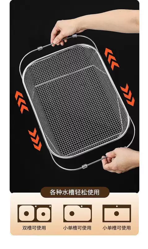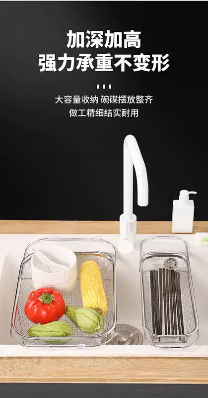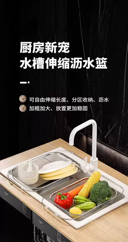 Yusenyi retractable sink drain basket stainless steel dishwashing sink vegetable basin retractable storage rack (large size) free retractable storage and draining
