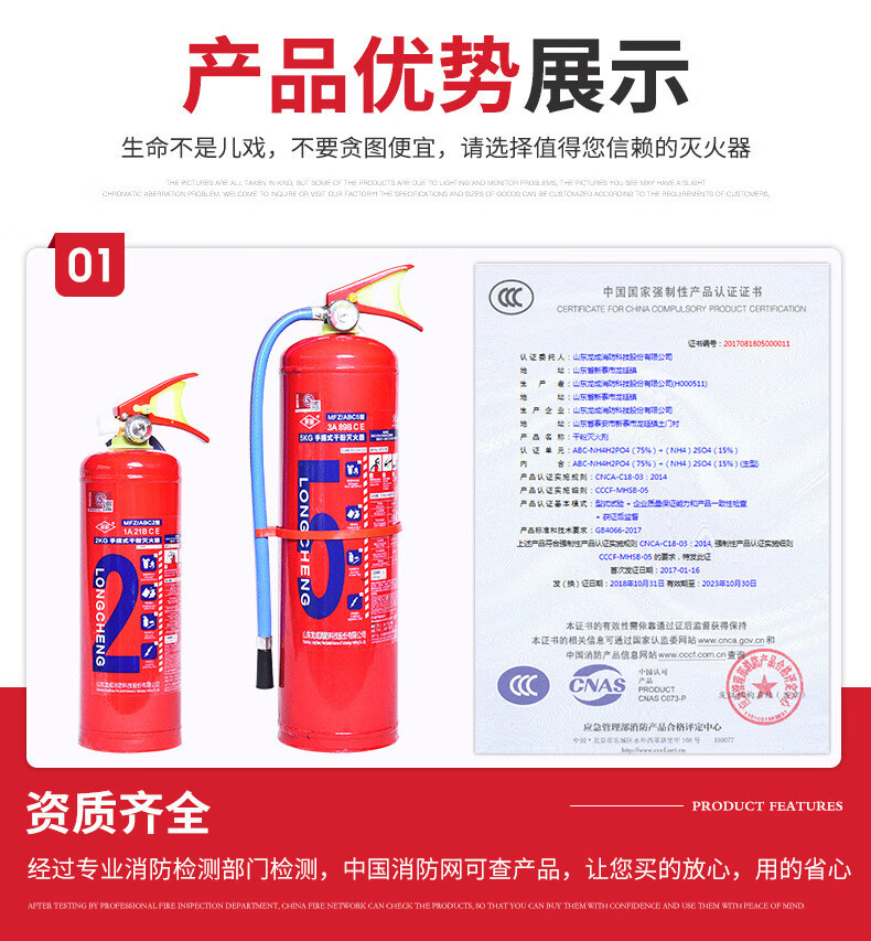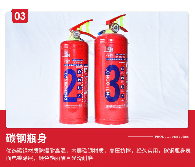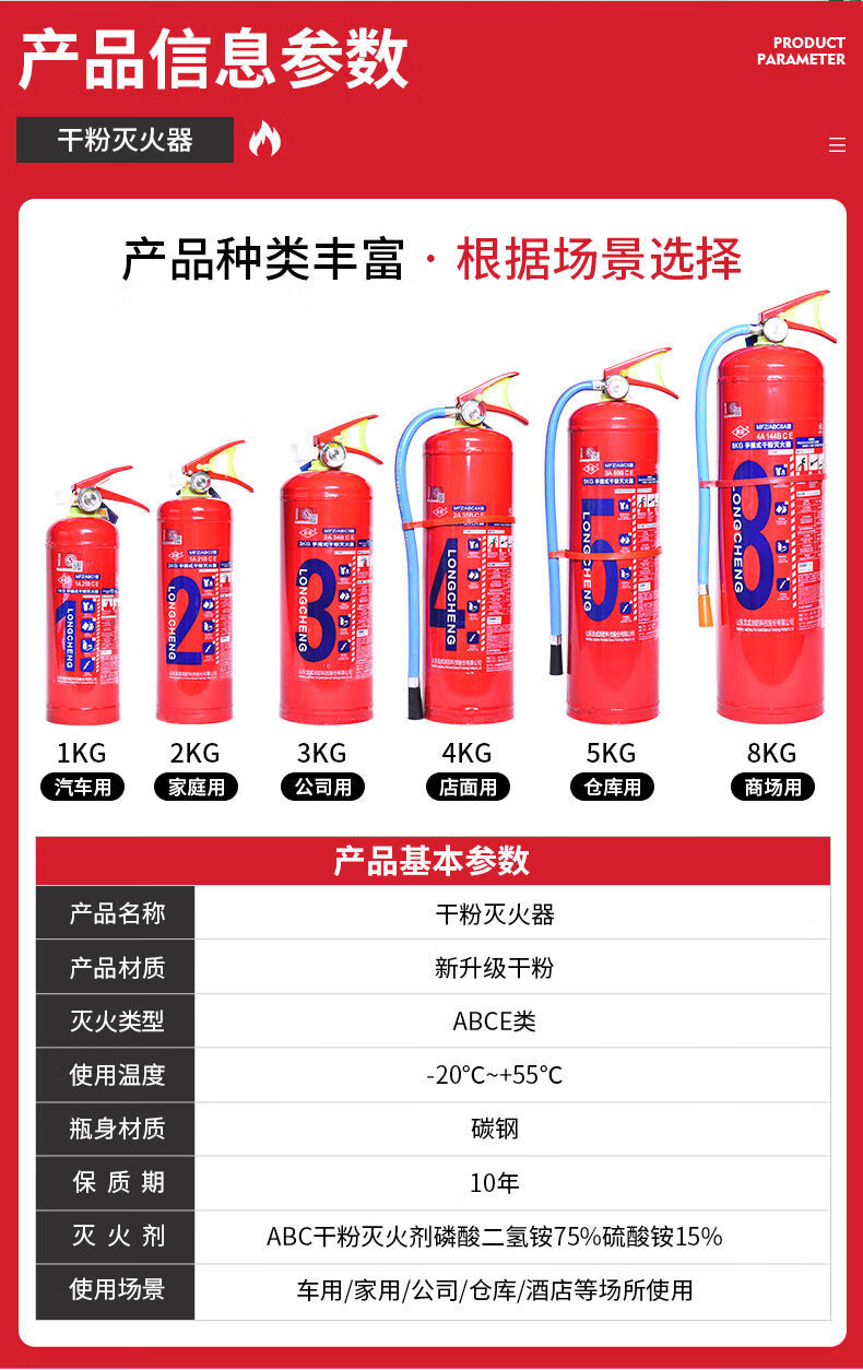 New National Standard Dry Powder Fire Extinguisher Powder Vehicle Home Store Factory Warehouse Fire Equipment Portable Fire Extinguisher Upgrade MF/ABCE3 Type Dry Powder 3kg (Shop)