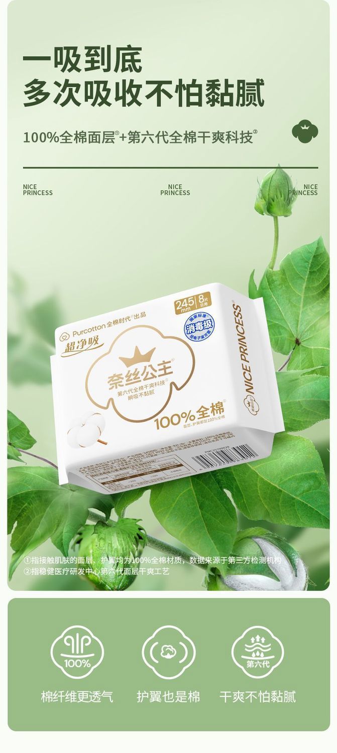 All Times Princess Ness Daily Sanitary Napkins Pure Cotton Daily Use 245mm Aunt Pads for Students with Sensitive Skin. 100% Cotton Pampers Sensitive Skin in Every Touch. Pure Cotton 245 Daily Use 24 Tablets