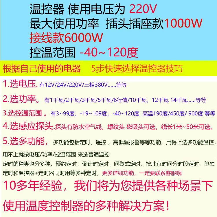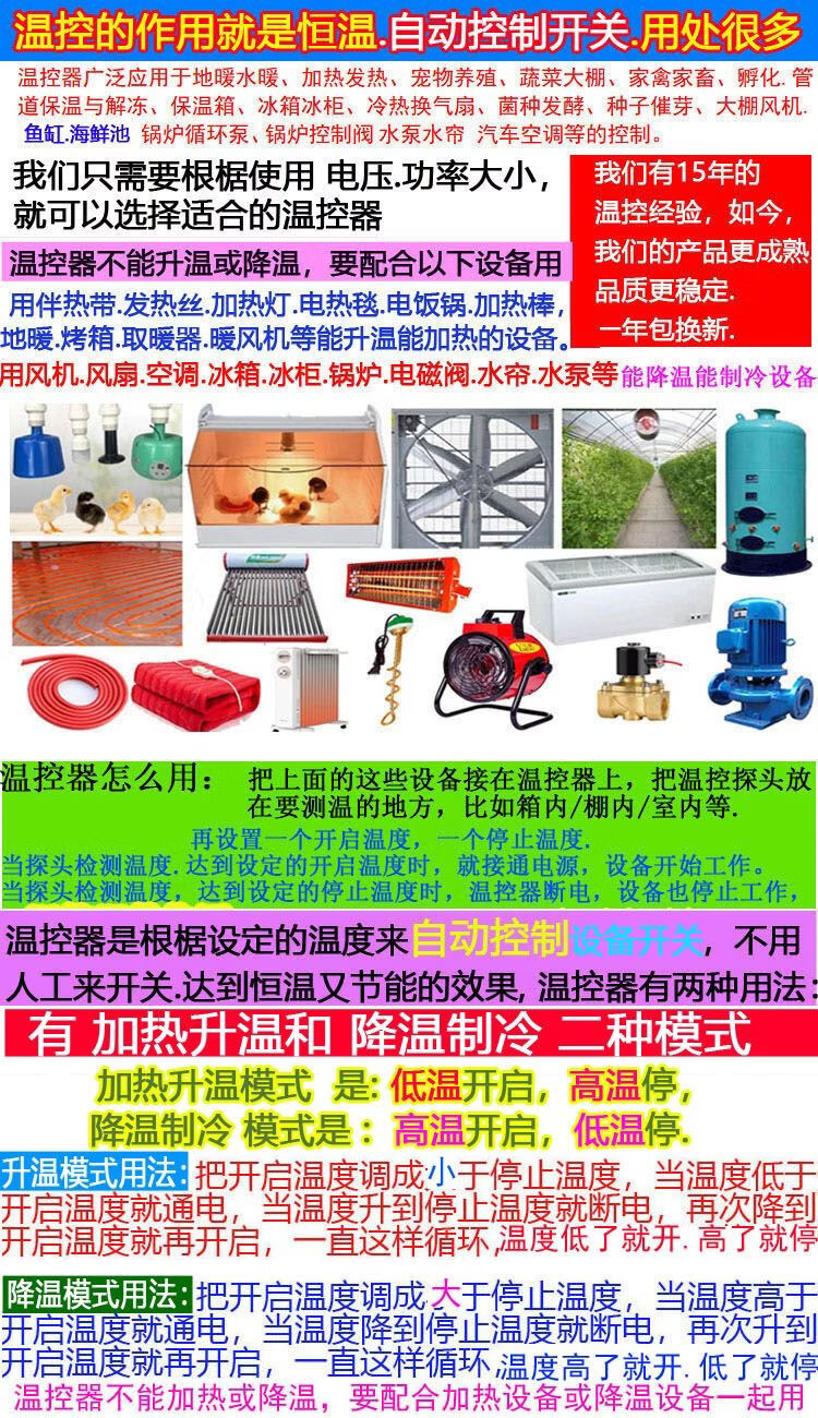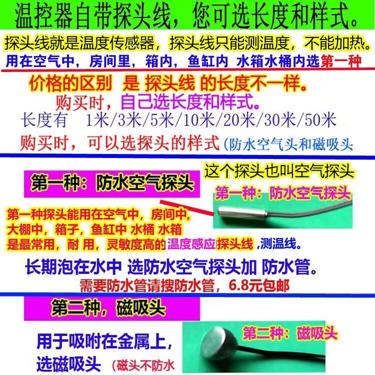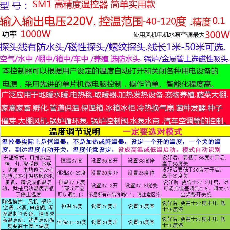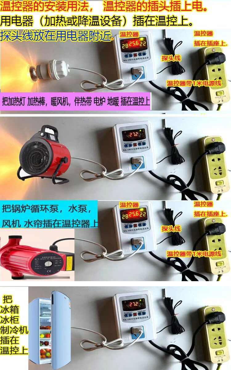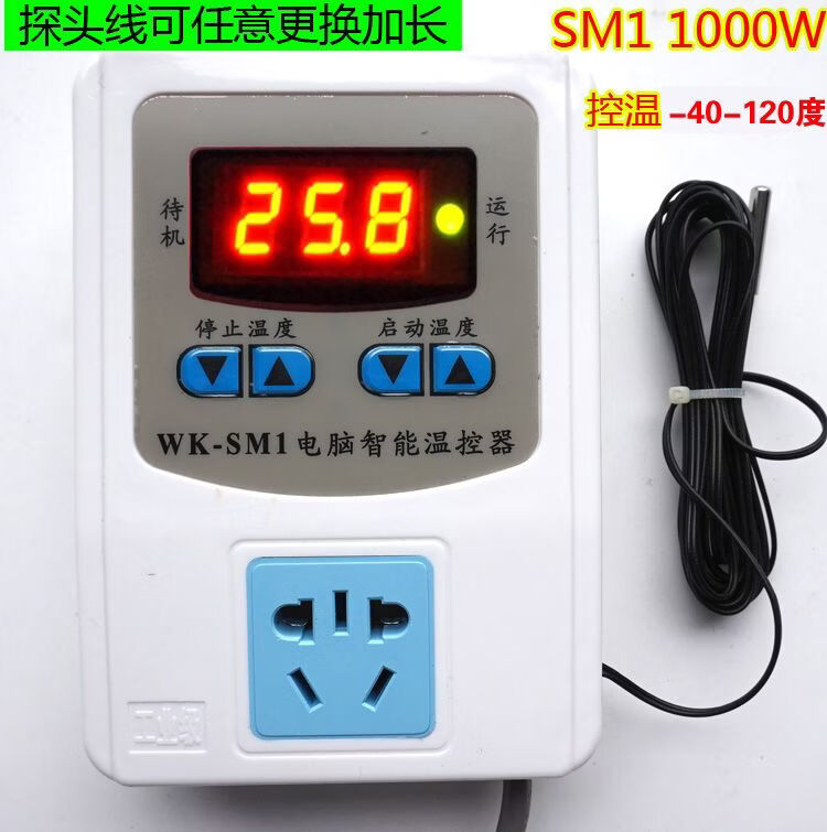 Mo Peng Refrigerator Thermostat Universal Artifact Fully Automatic Constant Temperature Energy Saving De-icing Switch Socket System Instrument Heating Tape Incubation SM1 High Precision 1kW with 2m Waterproof Cable + 10m Magnetic Suction Head