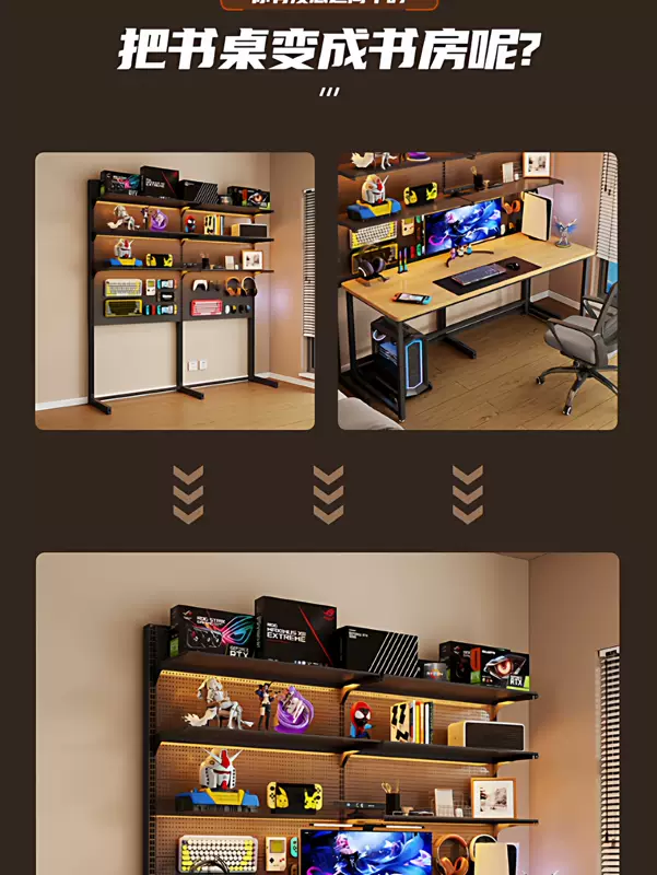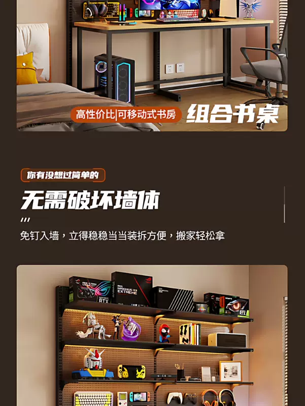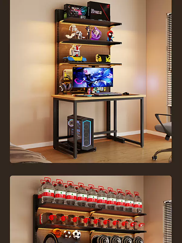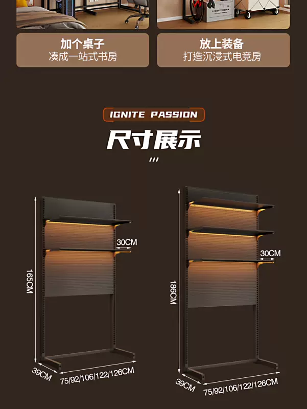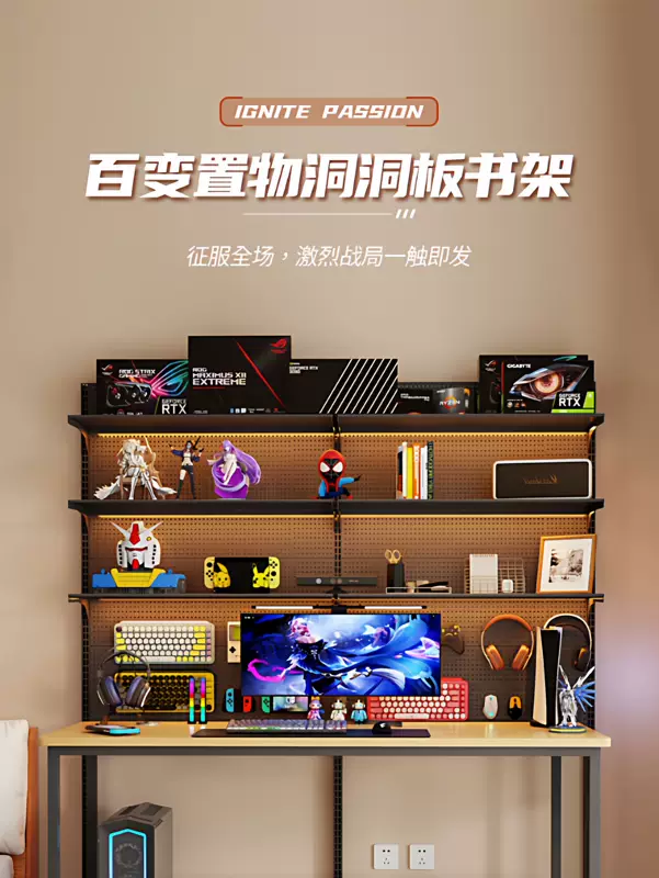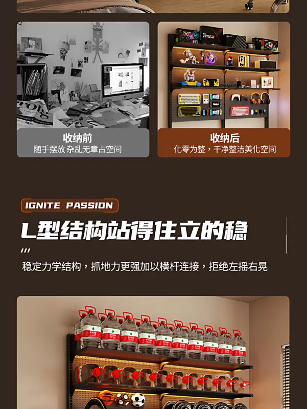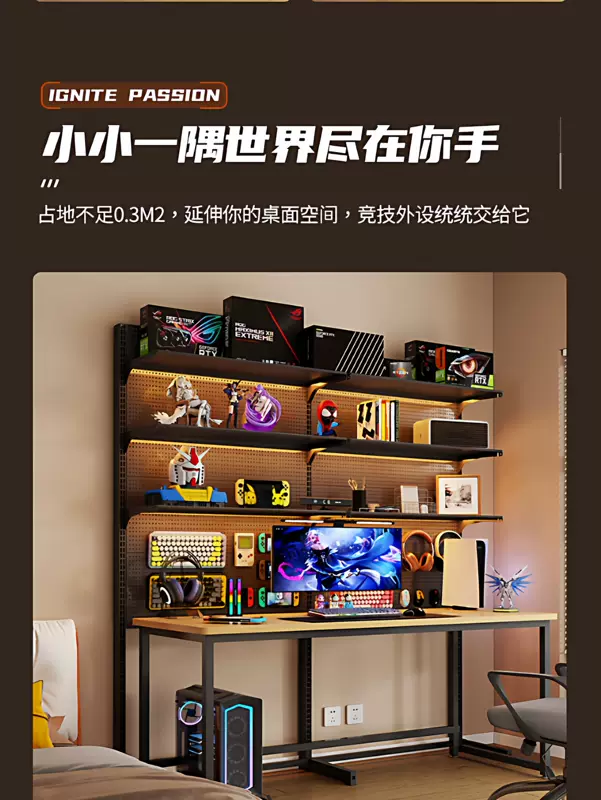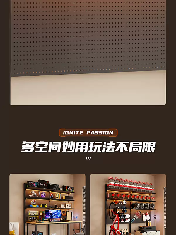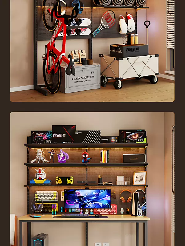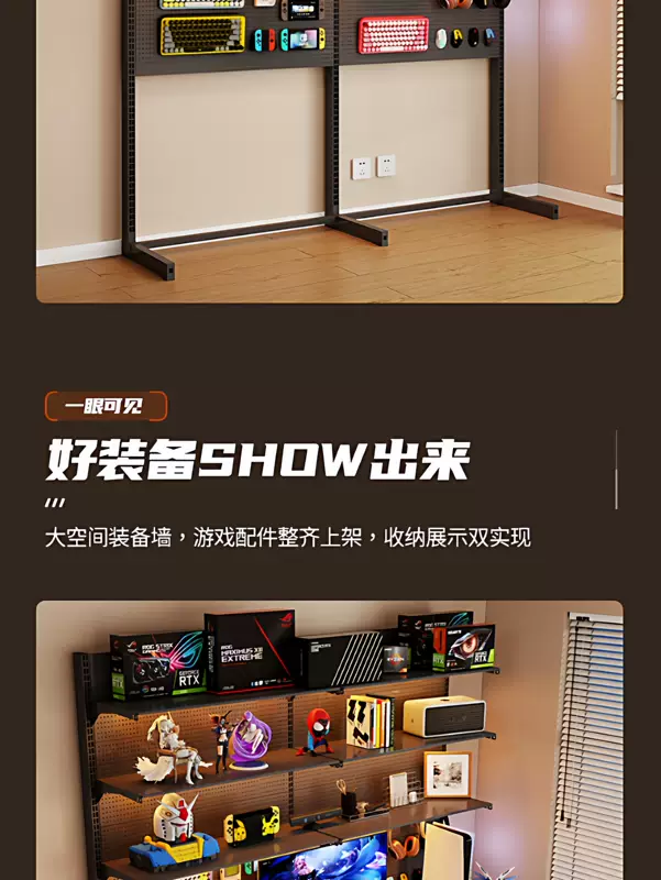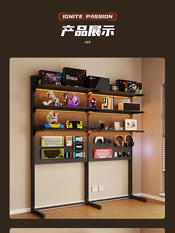 Yusenyi vertical perforated board storage rack floor-standing e-sports room decoration metal storage rack without punching computer desktop modification upgraded and thickened (matte black 147 long 165 high) comes with 4-layer board-6 hole perforated board 147 layers