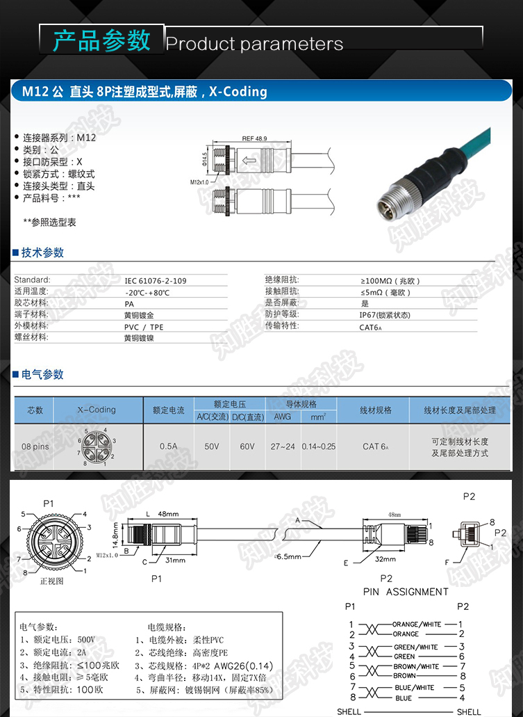 M12 to RJ45 connector aviation plug Cognex industrial camera data cable 8-core X-type super flexible network cable X-type-female elbow--20 pieces minimum order 10 meters Category 7 Super