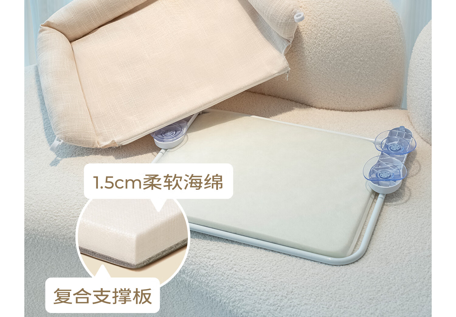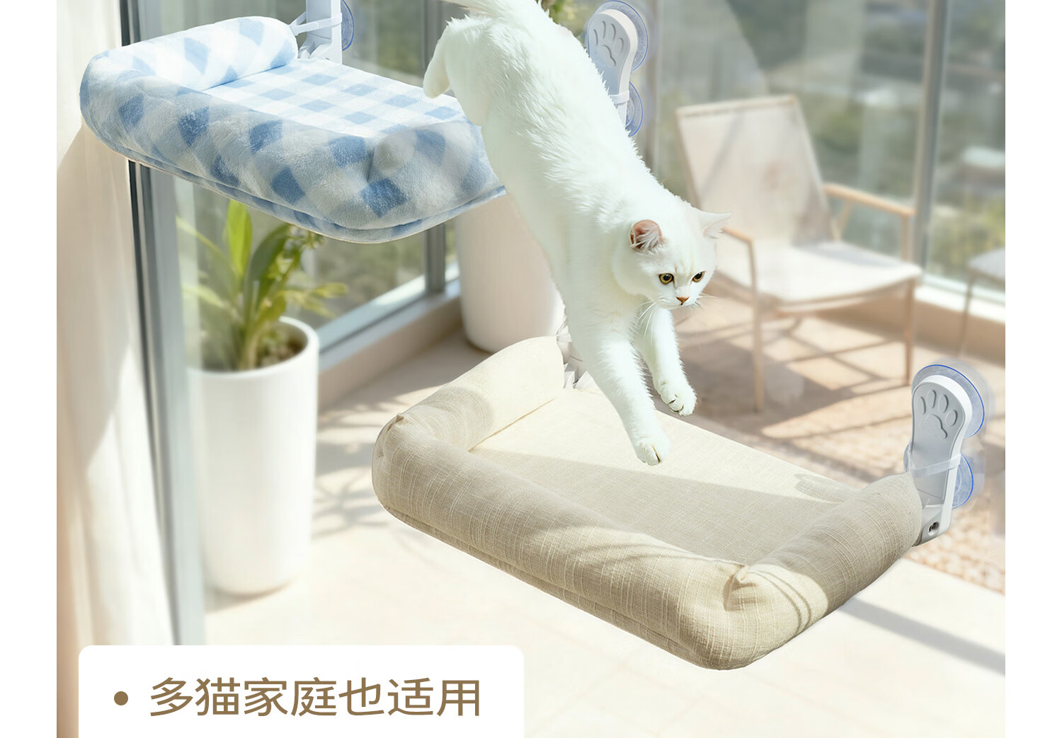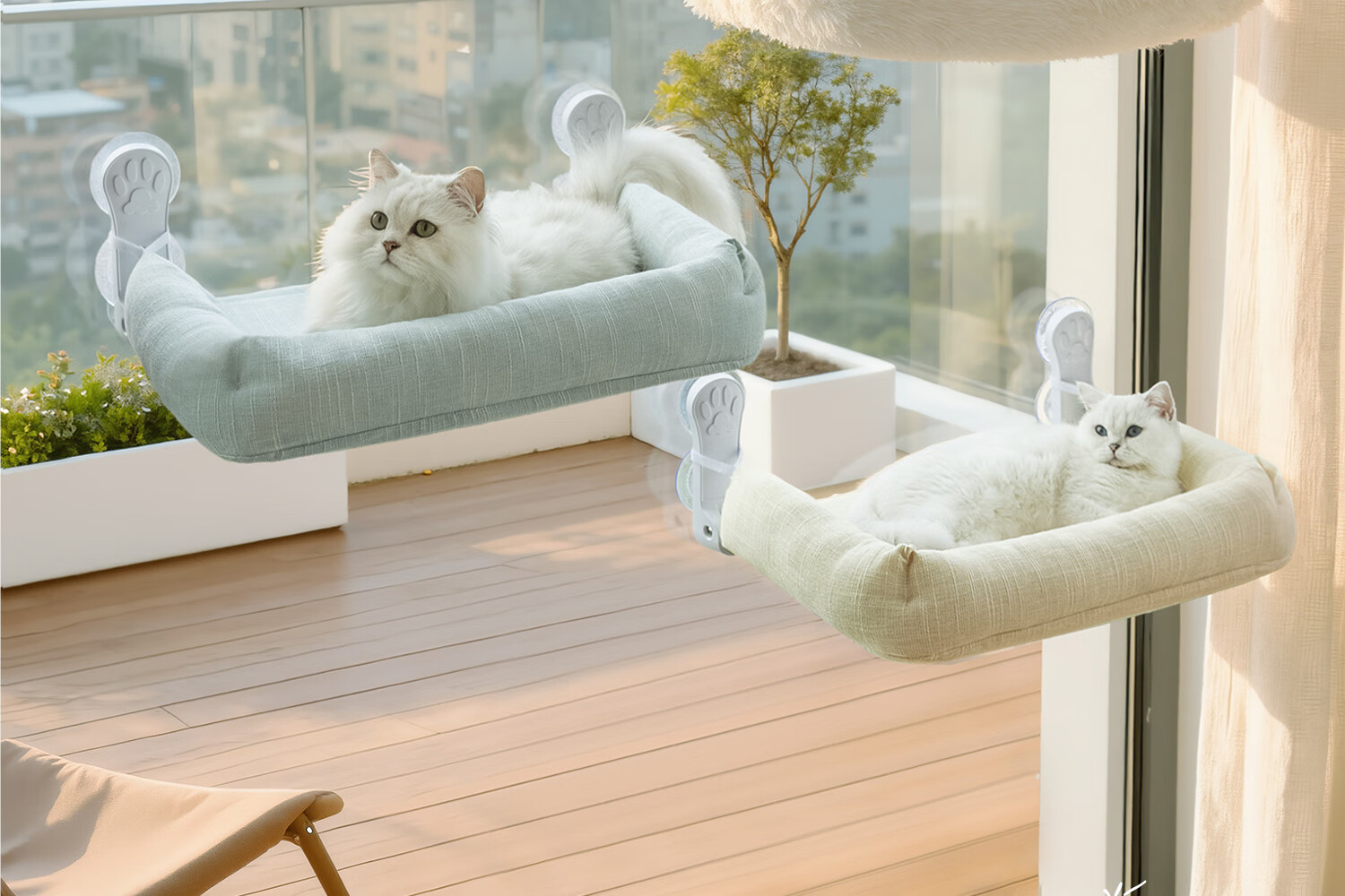 Forever hugging pet cat hammock cat nest winter warm suction cup cat climbing frame balcony cat nest hanging foldable removable and washable for sunbathing Folding model matt green blue sand release-Four Seasons stable model extra large 57*38*10cm