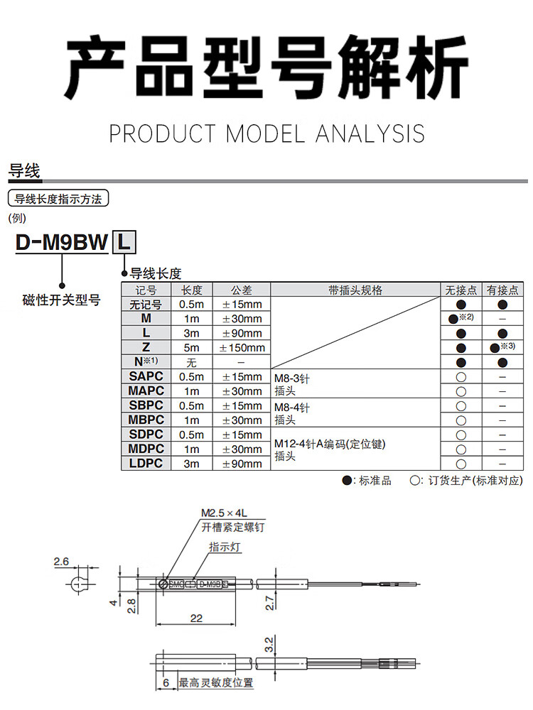 Magnetic switch D-M9B/M9N/M9P-SAPC/SBPC/SDPC with aviation plug D-P3DWASE/C D-M9NVSBPC