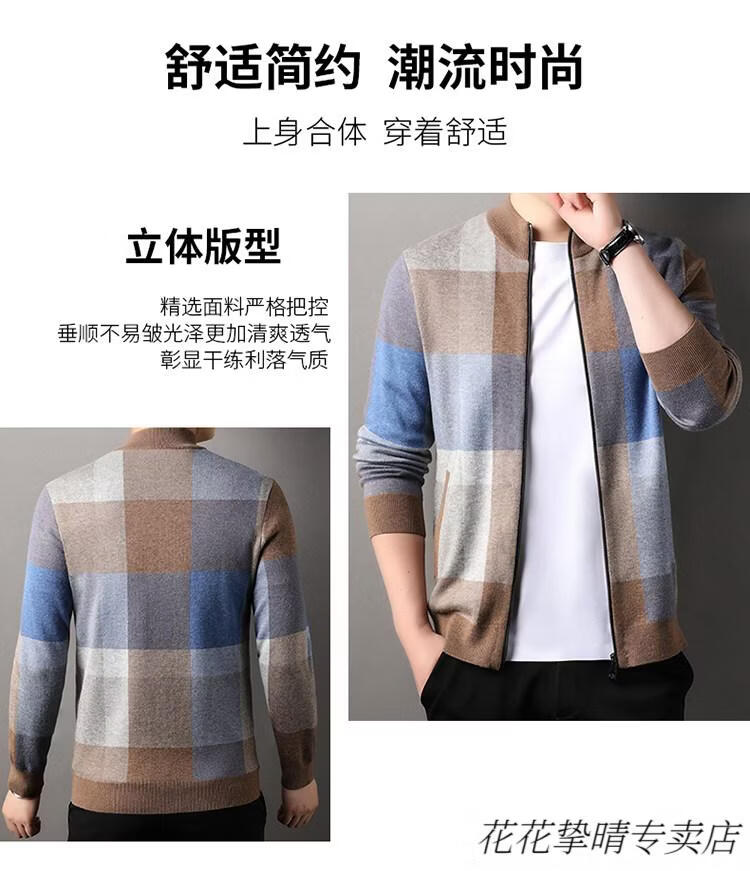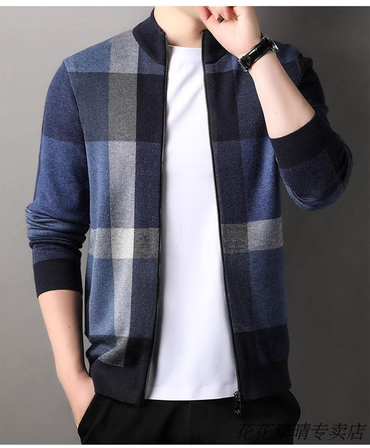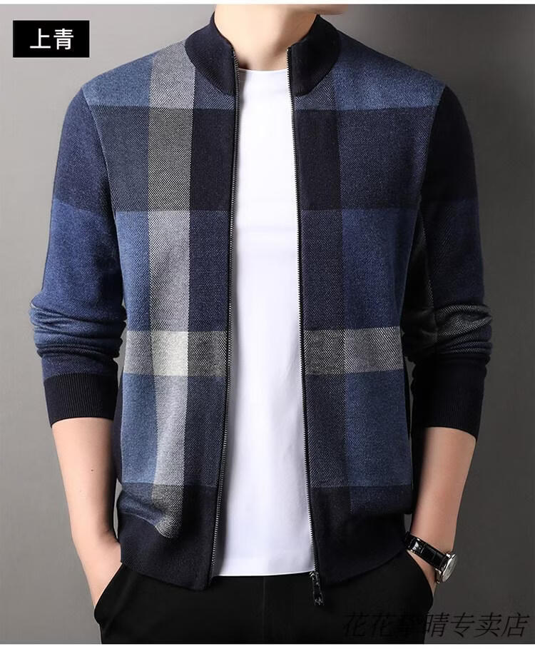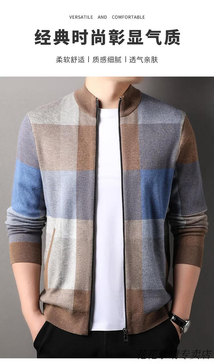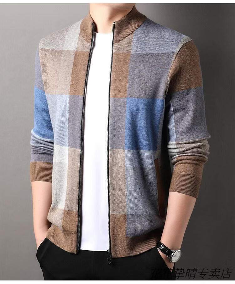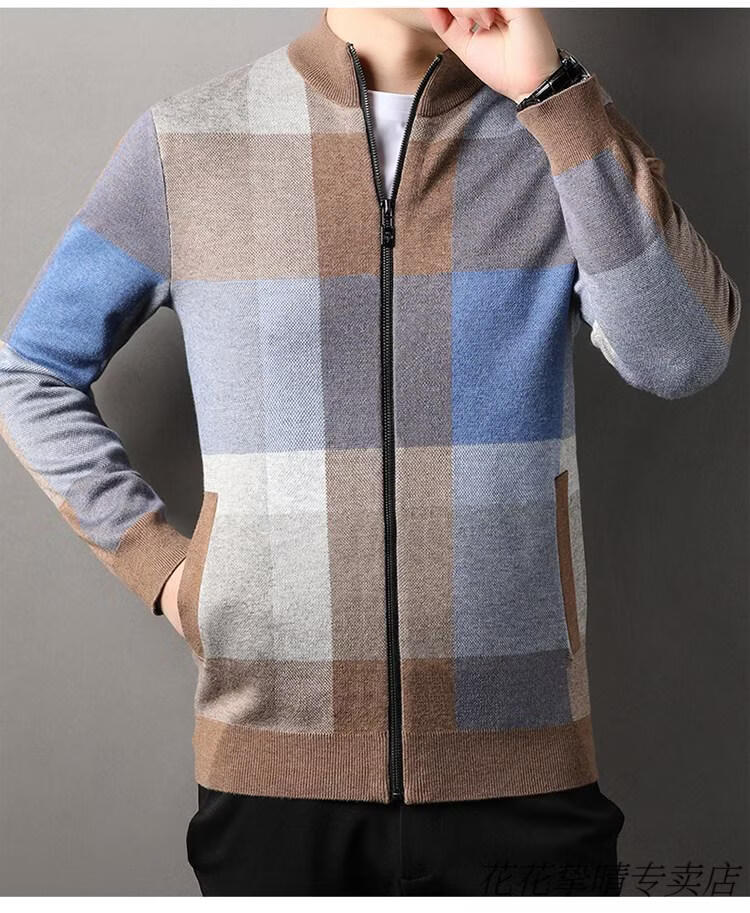 Playboy (PLAYBOY) men's knitted cardigan jacket spring and autumn new stand-up collar cardigan sweater for middle-aged and young people casual sweater jacket warm top light gray Y1717 XL 175