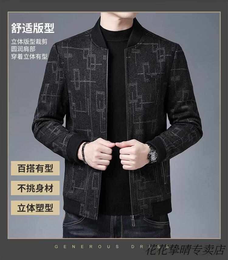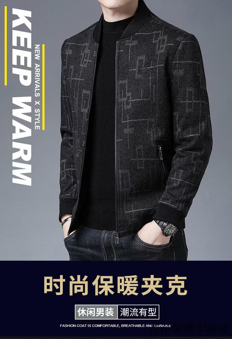 Playboy (PLAYBOY) men's velvet thickened woolen jacket autumn and winter new casual winter wear cotton warm jacket top dad wear BSN8861 coffee color (cotton) thickened 2XL 185