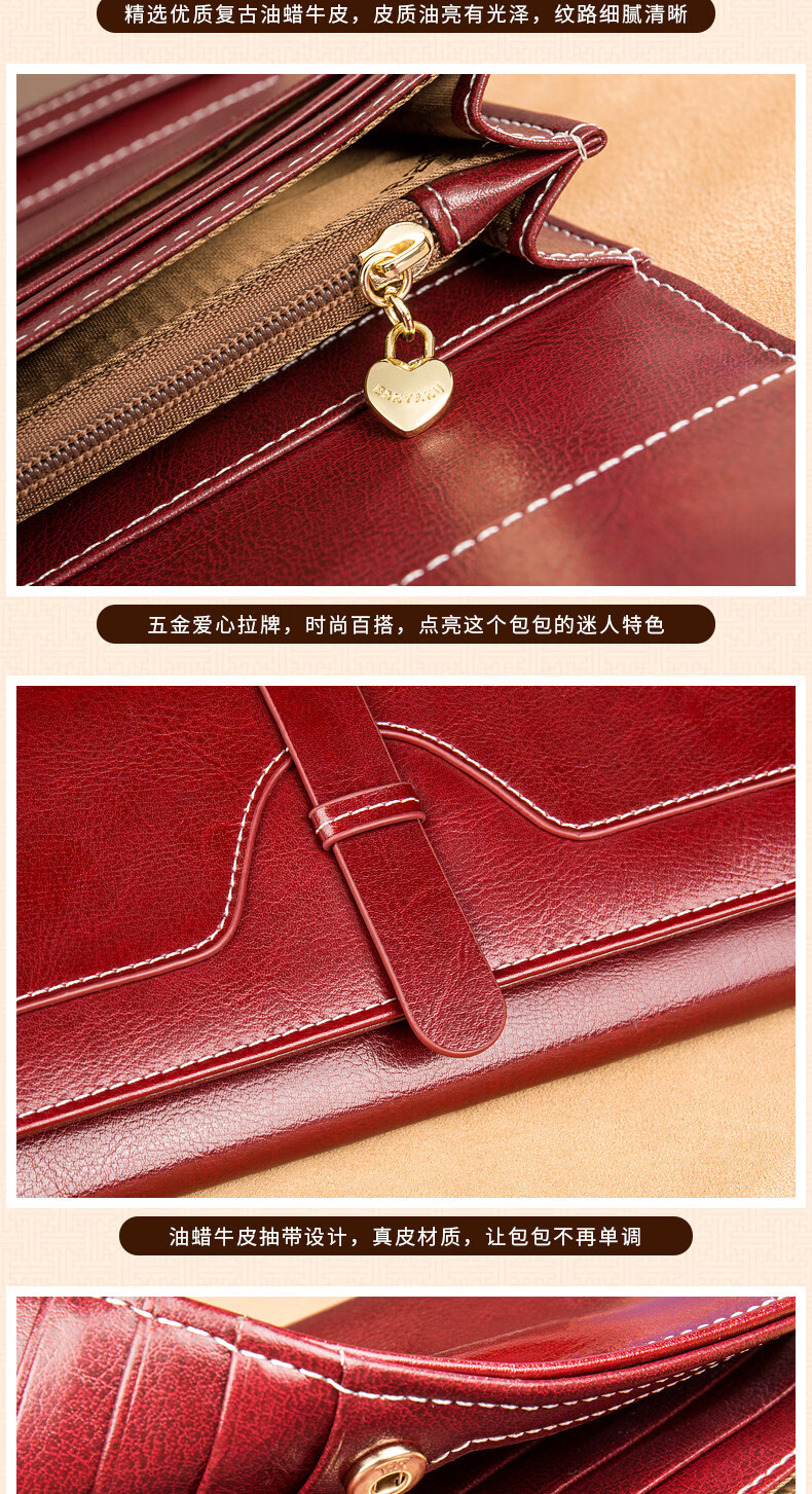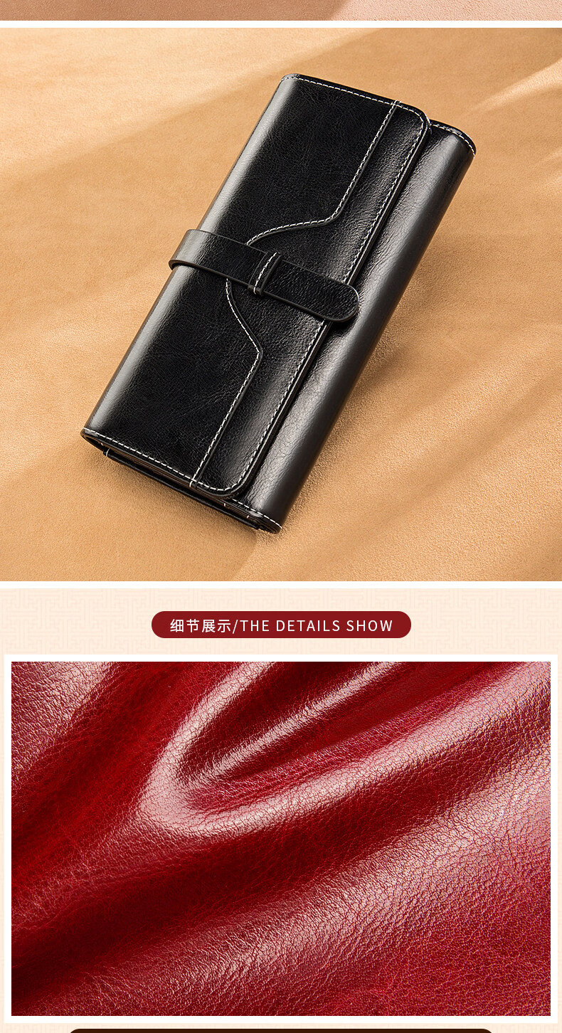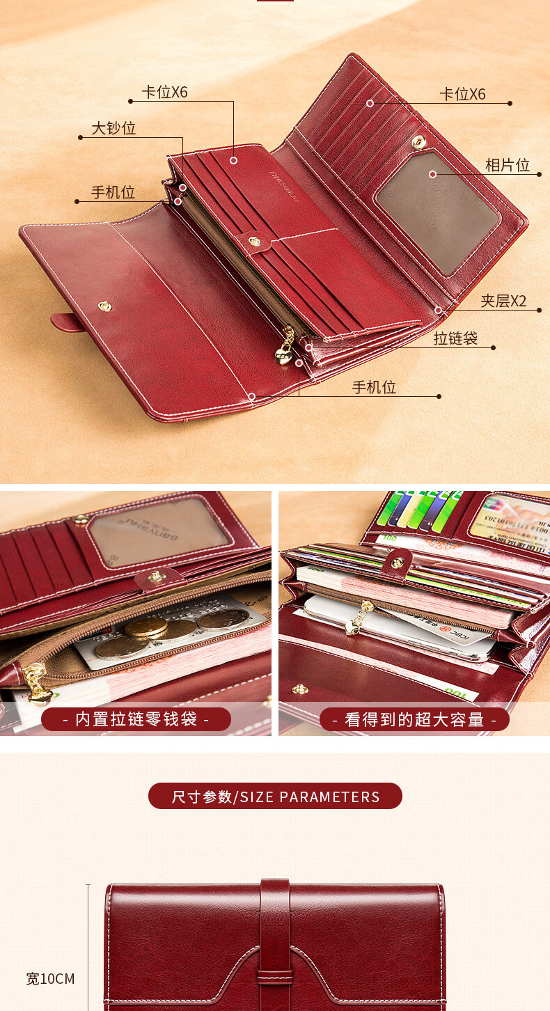 Banyanu women's wallet women's long 2025 new fashion retro large-capacity genuine leather clutch bag can hold mobile phone burgundy-anti-theft brush