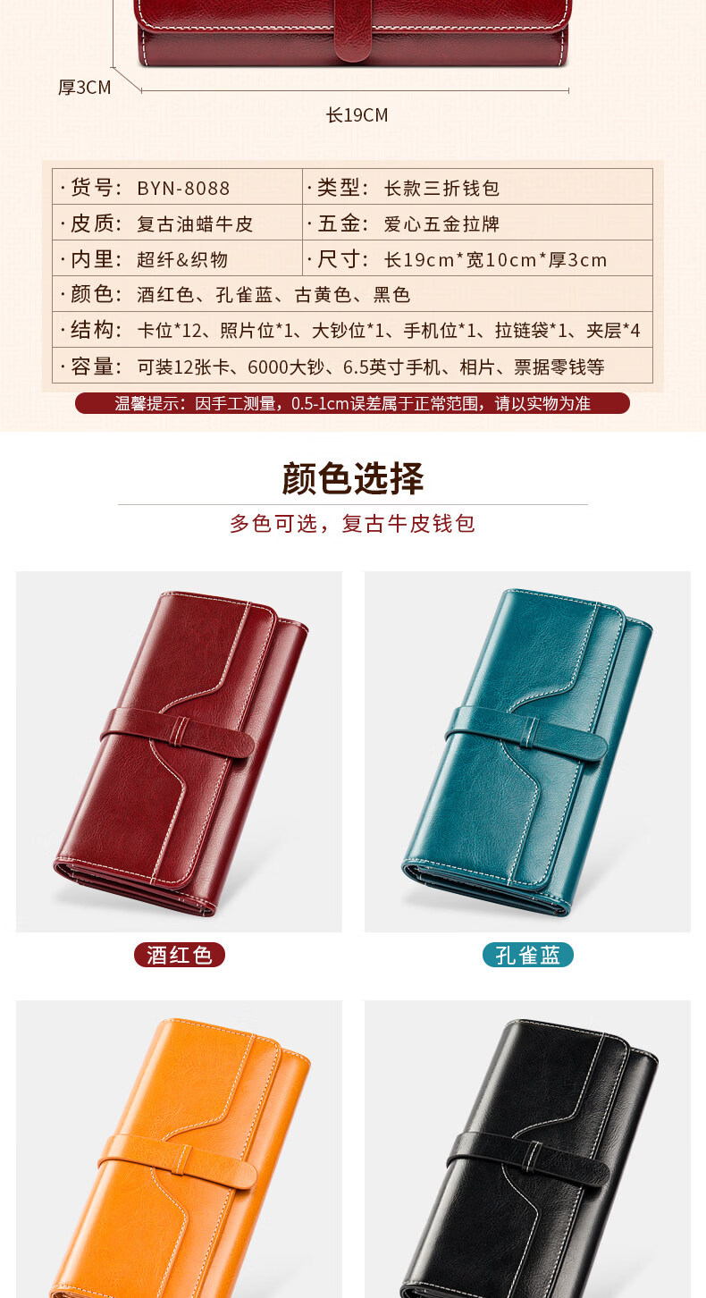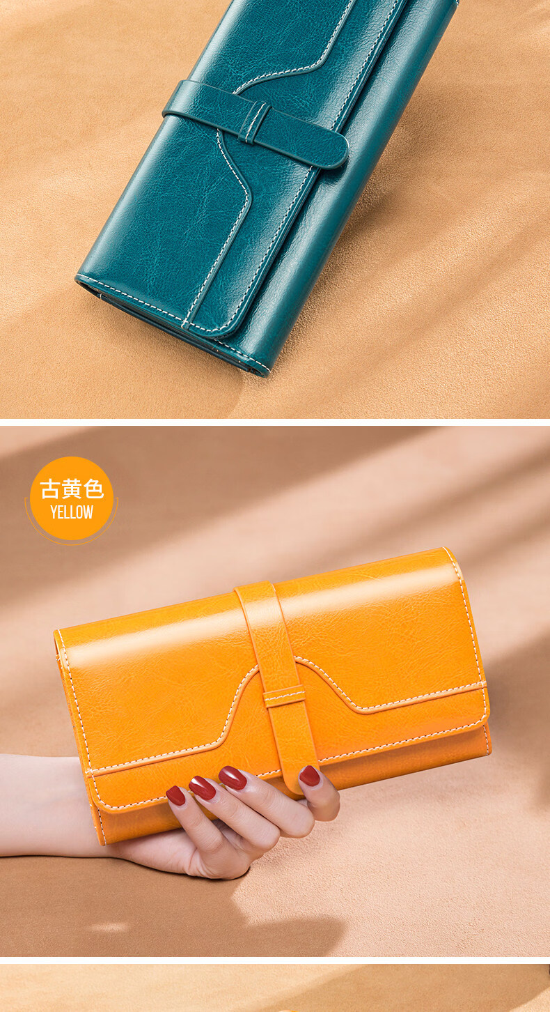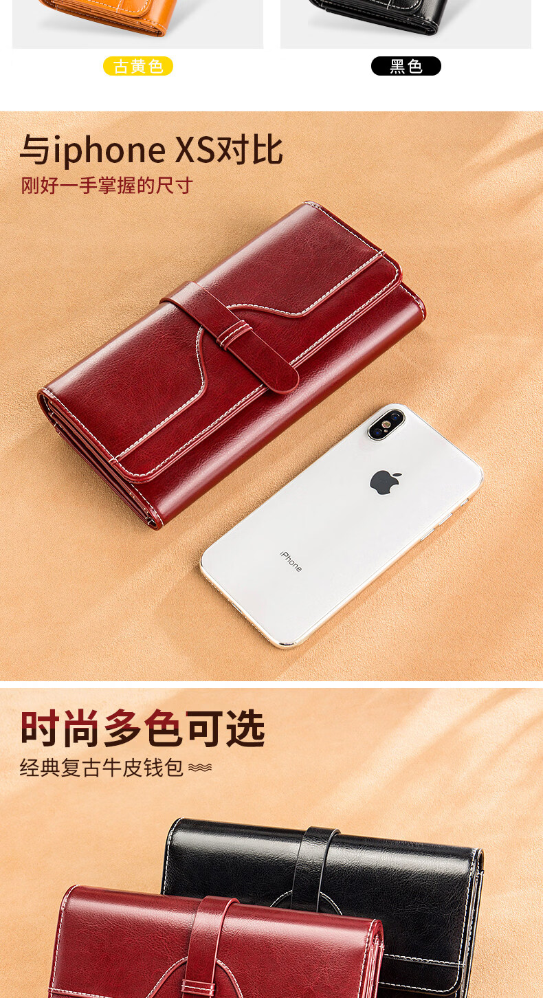 Banyanu women's wallet women's long 2025 new fashion retro large-capacity genuine leather clutch bag can hold mobile phone burgundy-anti-theft brush