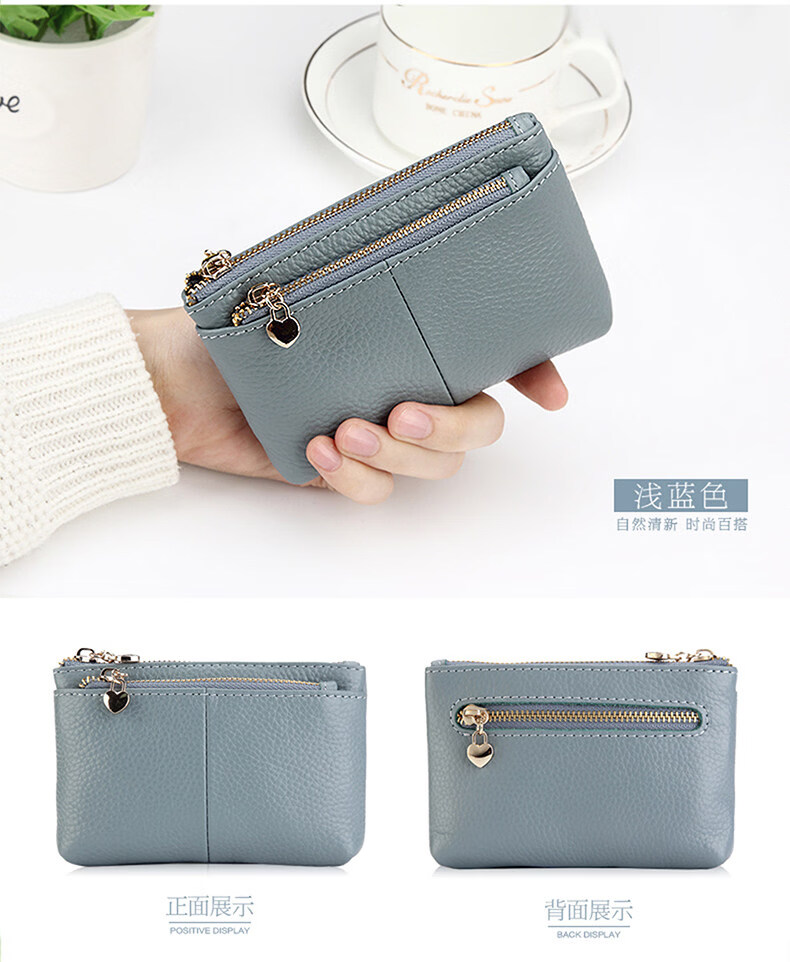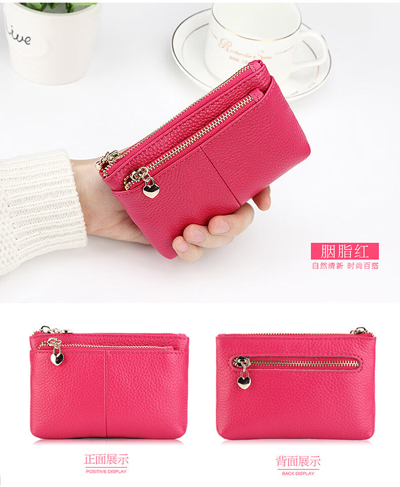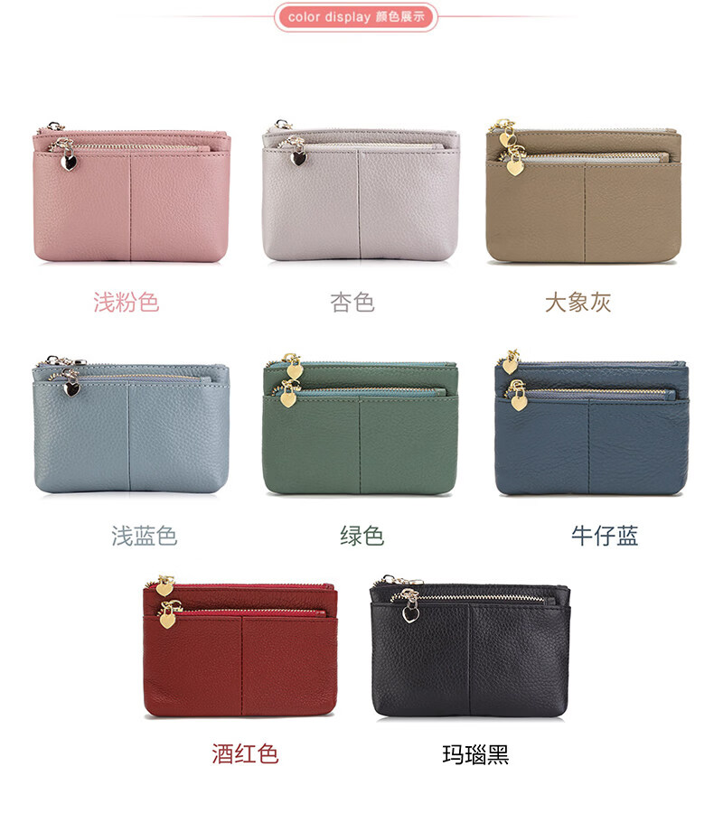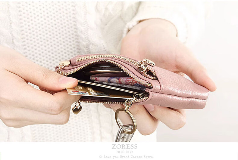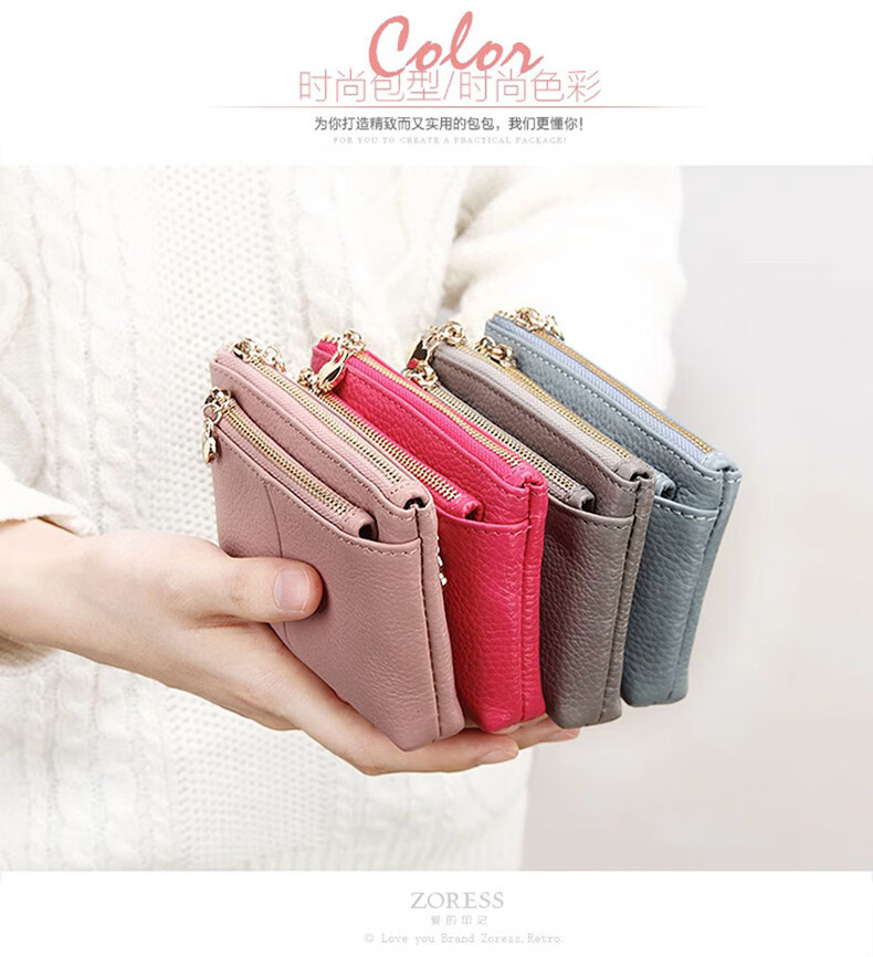 ZORESS Coin Purse Women's Mini Card Holder Key Bag Zipper Short Cowhide Small Wallet Lightweight Genuine Leather Clutch Green