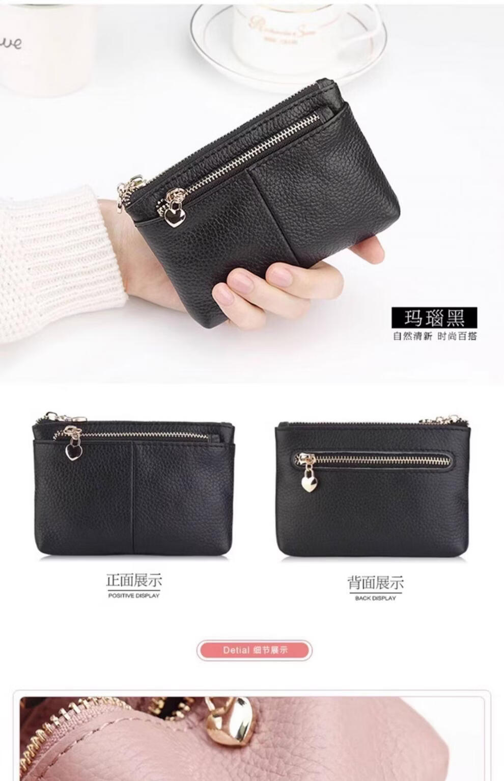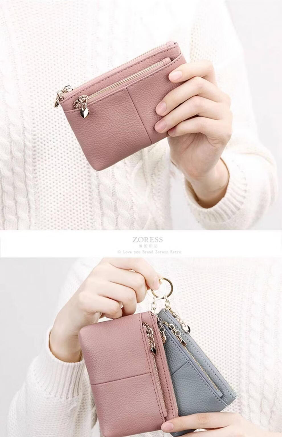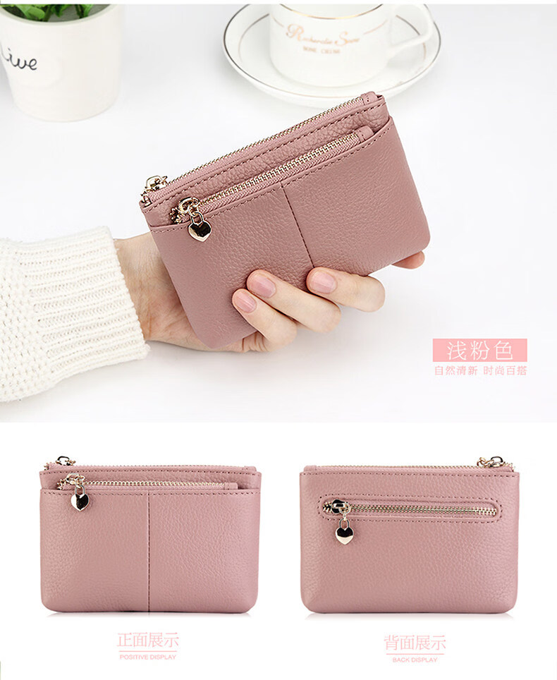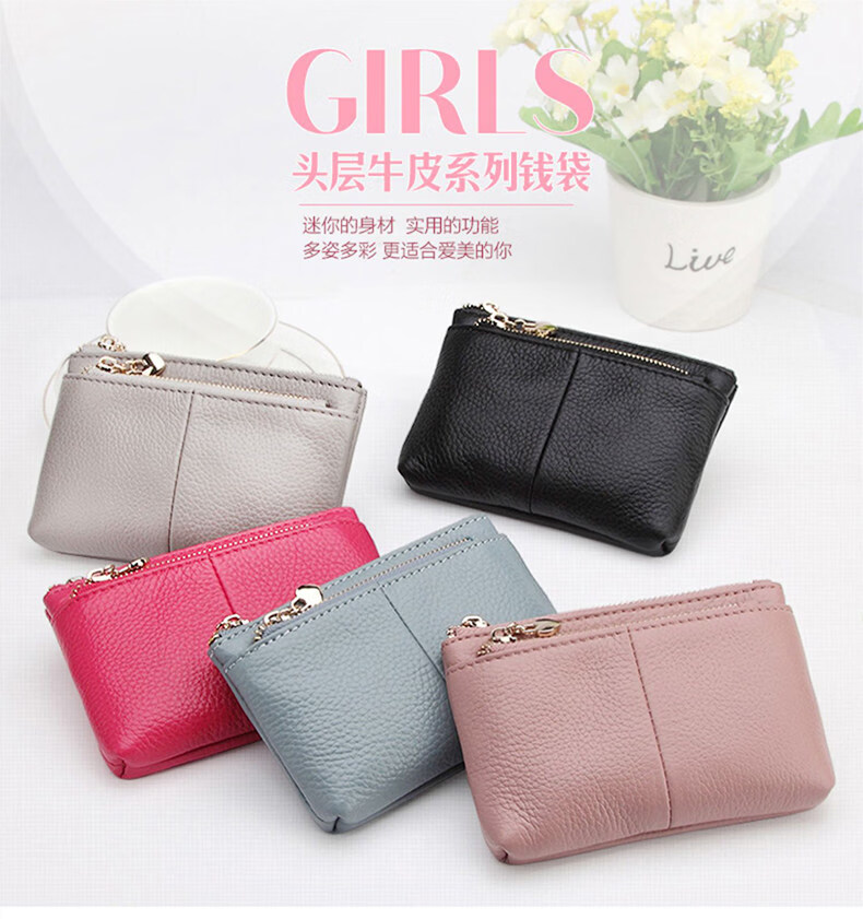 ZORESS Coin Purse Women's Mini Card Holder Key Bag Zipper Short Cowhide Small Wallet Lightweight Genuine Leather Clutch Green