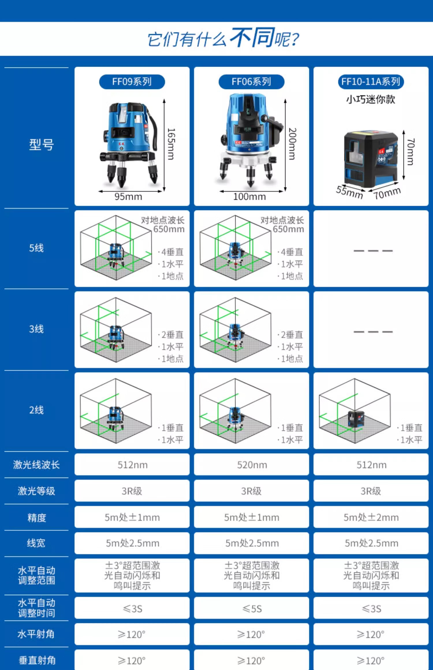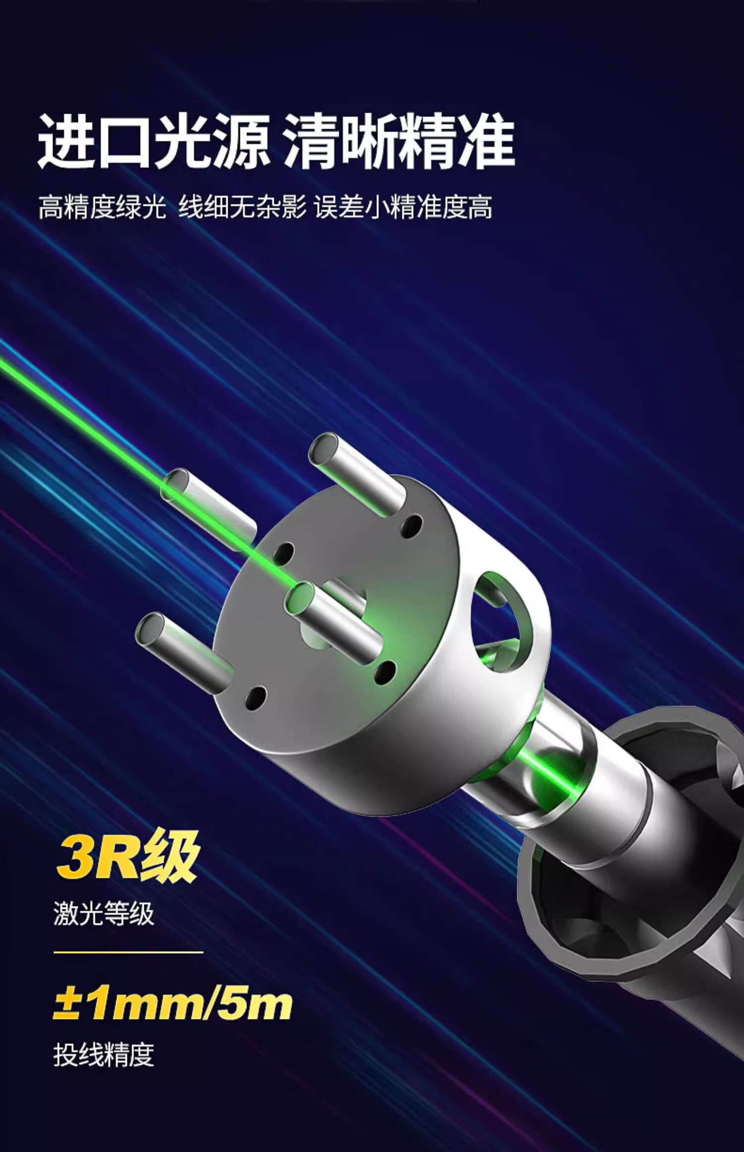 Green light level meter high-precision strong light fine line outdoor five-line laser automatic line leveling meter FF06-11E2 green light 2 lines dual electric