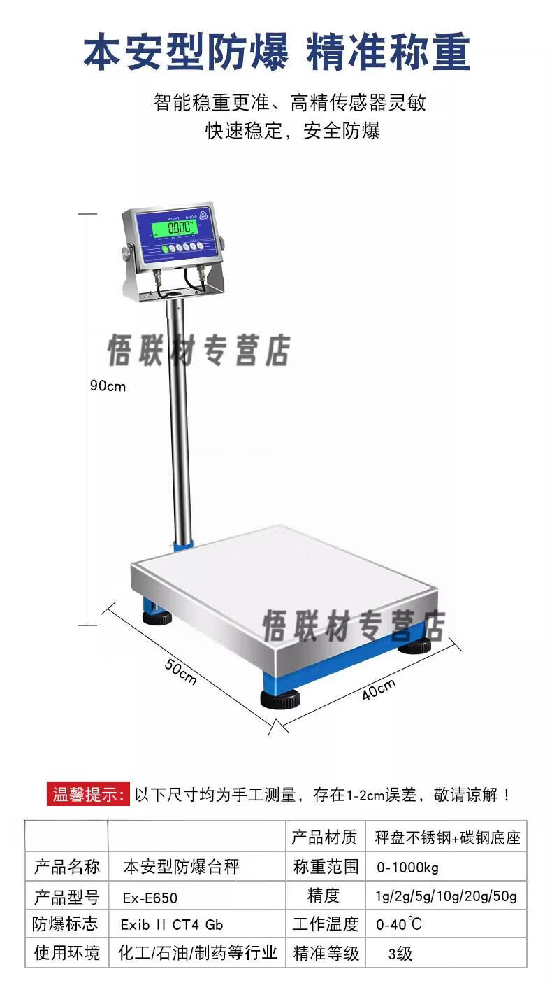 Oein German imported quality explosion-proof electronic scale intrinsically safe ETX chemical paint mixing dust special stainless steel high precision Type A 30k/g5/g table 30*40 (promotional model)