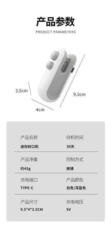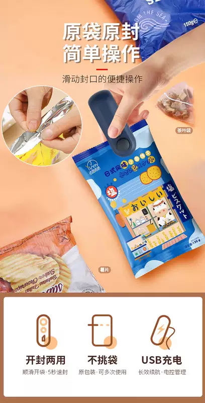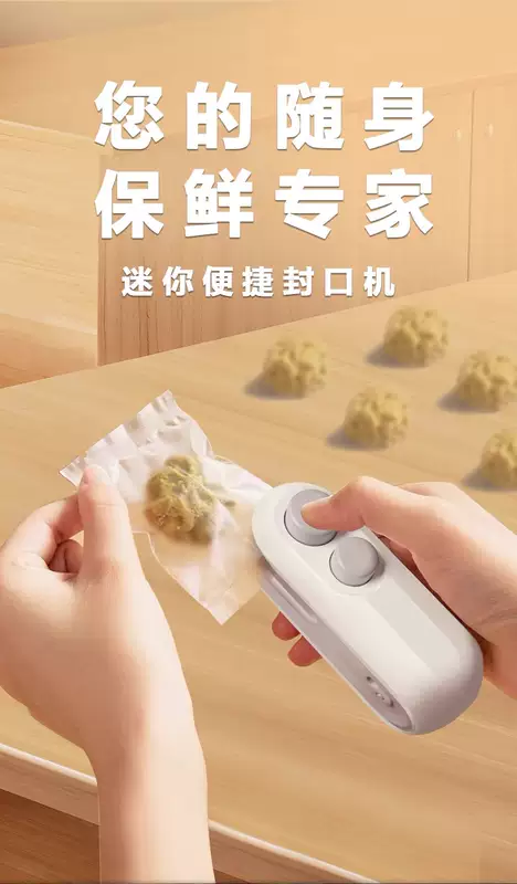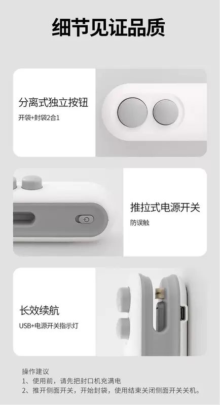 Yusen Yizhuang sealing machine, mini sealing machine, household artifact, snack bag, plastic bag, food preservation, small vacuum pericardium, opening and sealing one-magnetic suction line, line-material battery core upgrade (white)
