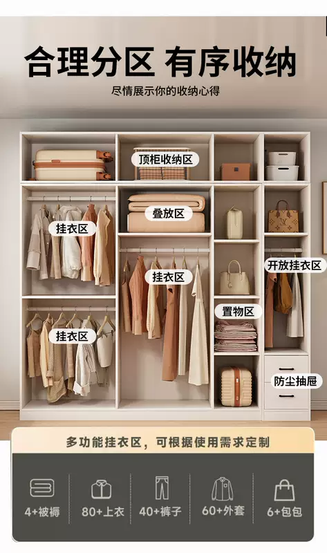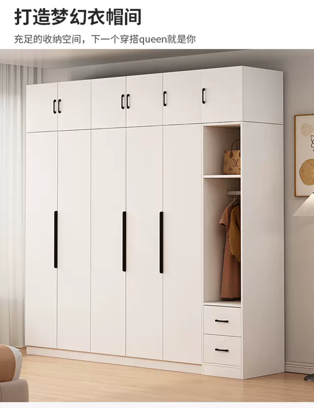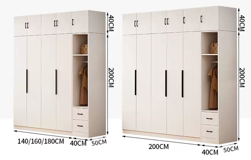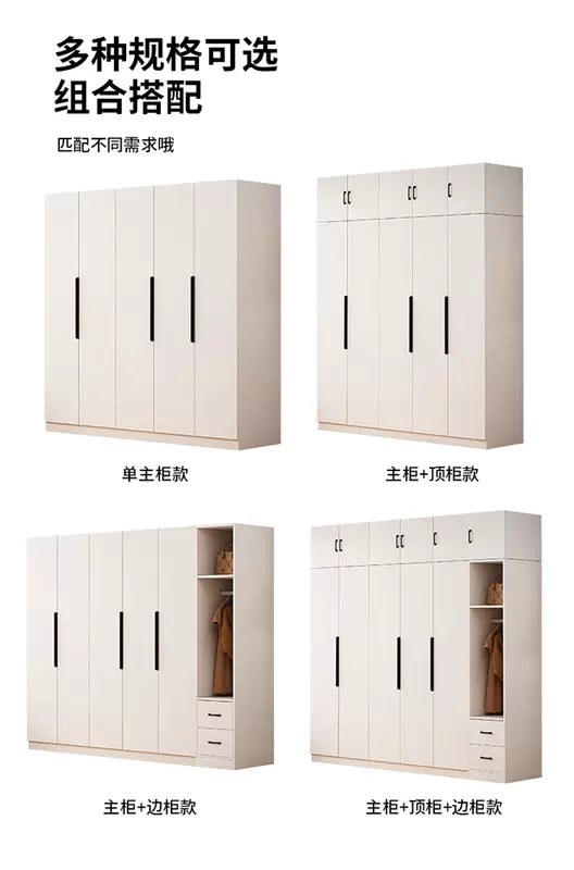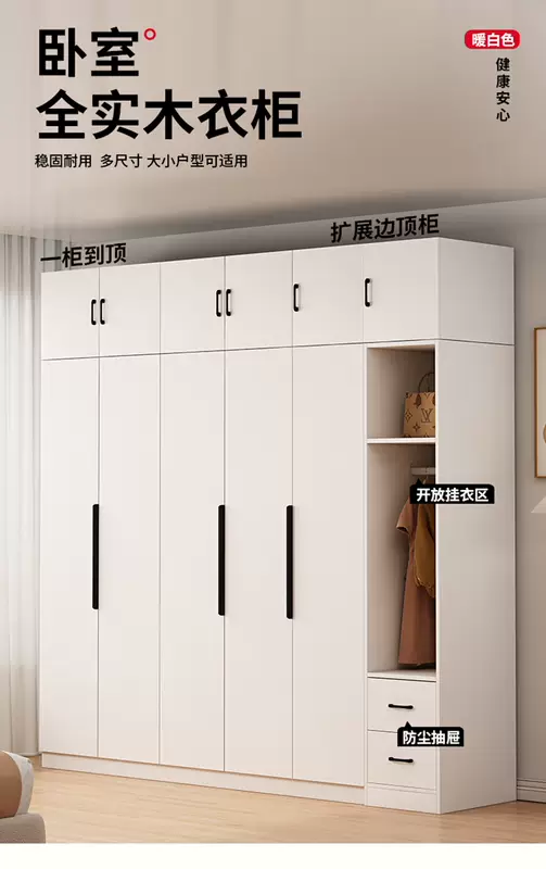 Yusenyi solid wood board household small apartment split rental cabinet thickened door wardrobe bedroom ecological 2025 new wardrobe solid wood color (4 doors) 160x50x200 main cabinet-top cabinet-side cabinet (E0 imported solid wood) installation + 2 doors or more
