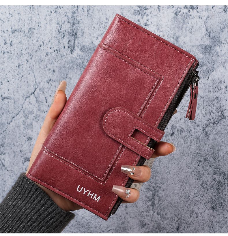 Ms. Ye Yu long wallet European and American fashion mobile phone multi-card slot clutch coin purse burgundy