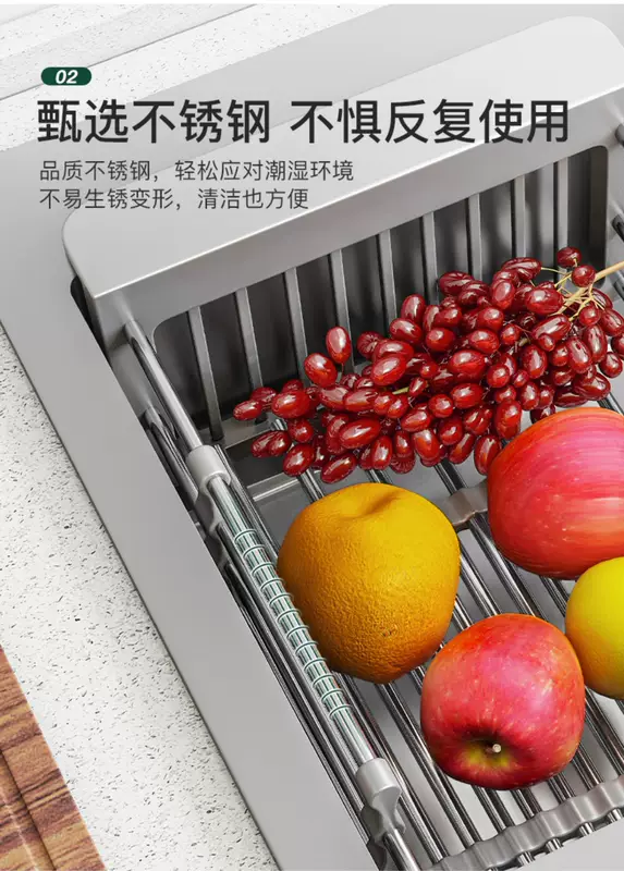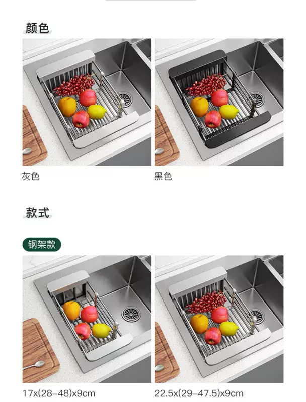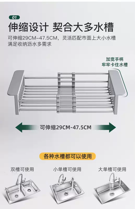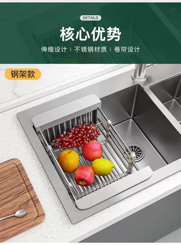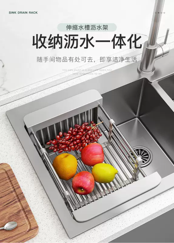 Yusenyike sink drain, wash vegetables, filter, storage rack, telescopic basket, basin rack, rack, sink drain, kitchen supplies (bold and thickened version, 1 pack) 304 drain basket large size