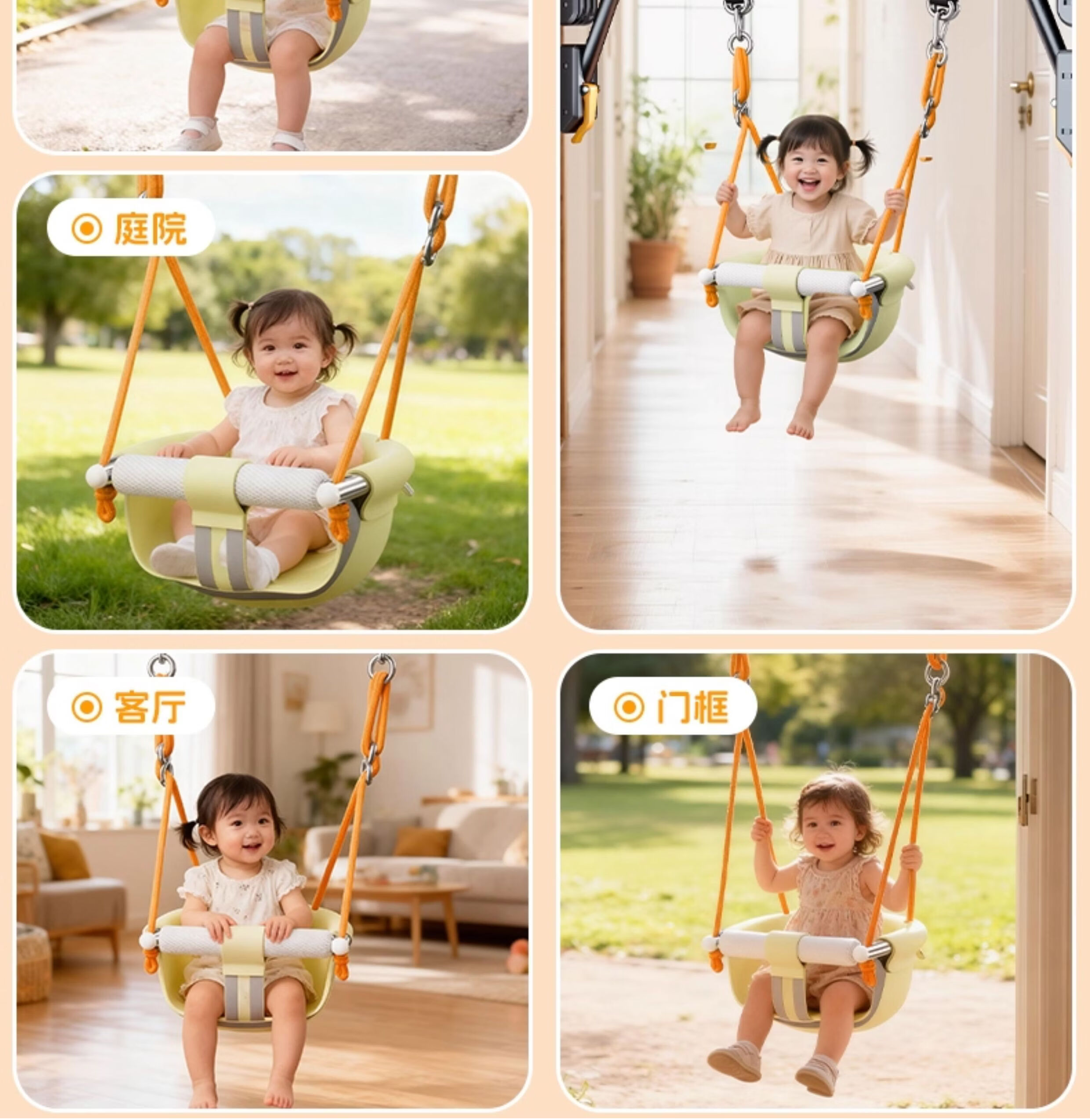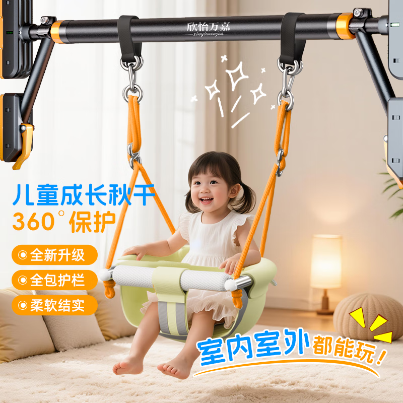 Horizontal bar pull-ups, sports equipment, indoor and outdoor swings, children's family hanging chairs, outdoor swings, green hanging chair set + punch-free horizontal bar (installation distance 120-140CM)