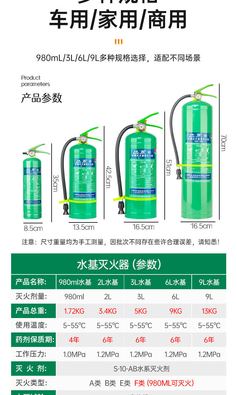Water-based fire extinguisher 3 liters for shops, household car lithium battery, 3L6L4 kg foam type 3c certified upgrade 25-year new national standard 3L water-based fire extinguisher test report + fire protection 31